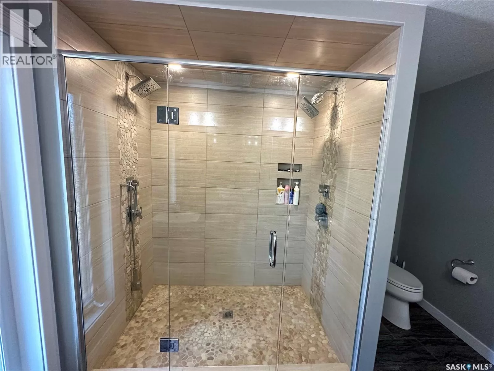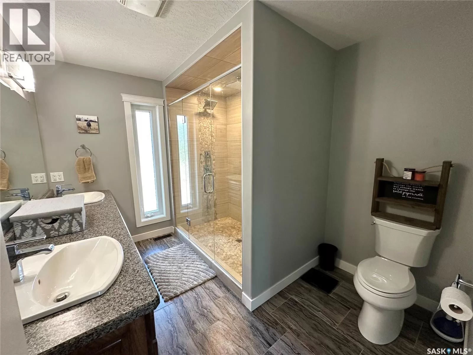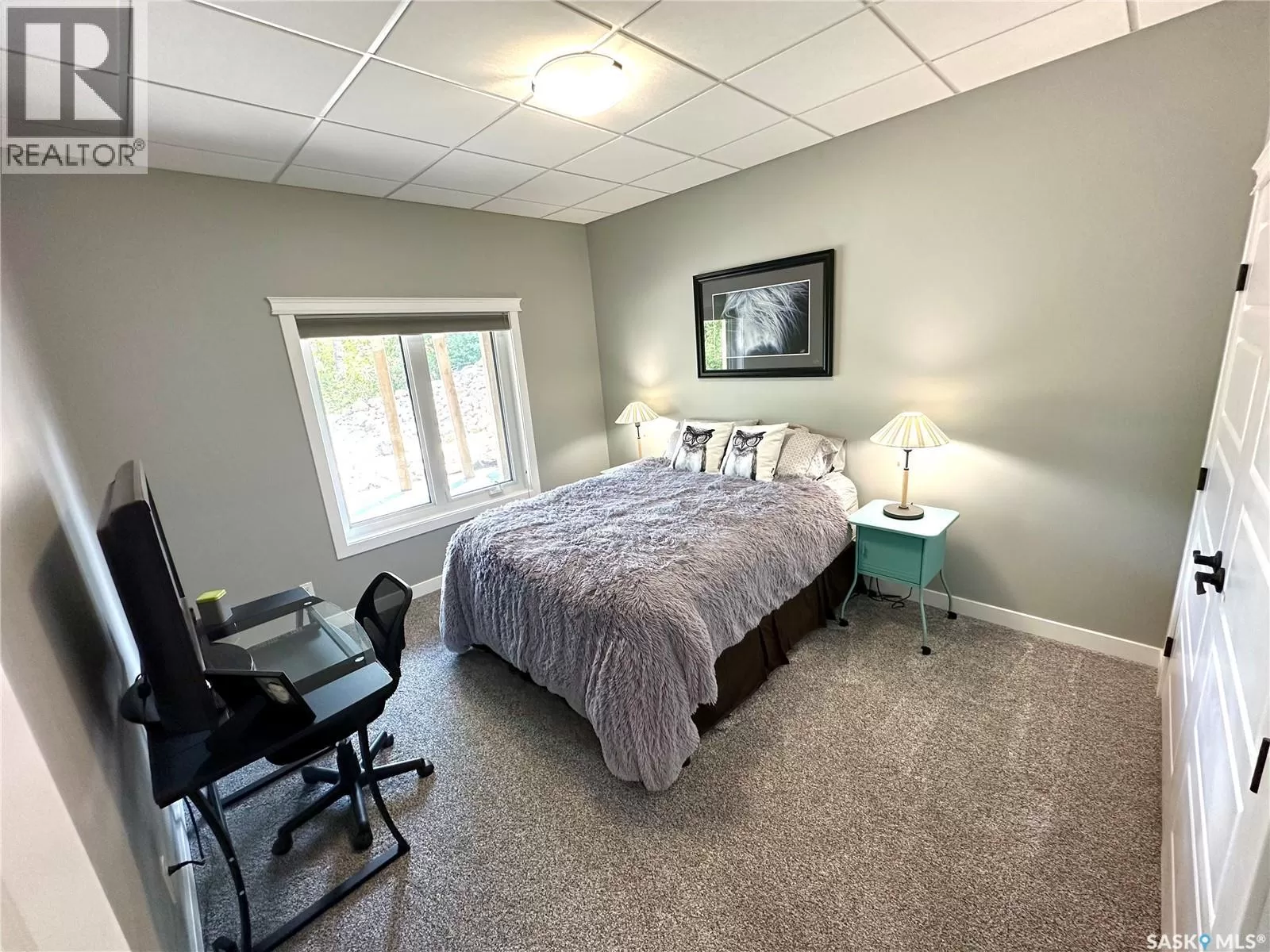 Executive home at Sunset Rim Estates overlooking the trees and the shores at the beautiful Big Shell Lake. This home is sure to impress from the moment you drive up with its eye-catching architecture design and breathtaking views. The open floor plan allowing you to enjoy the east facing windows overlooking the incredible landscape and path down to the water. The garden doors off the living room lead you to a massive covered deck with outdoor speakers, extending your useable space to enjoy the outdoors for grilling, entertaining, relaxing, and just appreciating nature. Home features 4BD, 3BA, main floor laundry, custom built hickory cabinets, vaulted ceilings, large master bedroom with walk-in closet and spacious en-suite, nat gas fireplace, 2 nat gas BBQ hook ups, walk-out basement with theatre room, large family room, and garden doors leading you to a beautiful firepit area. The yard is extremely low maintenance giving you more time to enjoy the house, lake and the outdoors. The attached 36X50 (1800sq ft) heated garage is every mans dream, two main doors and a smaller door for sleds, ATV, and your fishing boat, the garage mezzanine allows for ample storage for all your extra hunting/fishing/ gear to be stored easily. This incredible home is move in ready, and truly is a must see to appreciate all it has to offer. Comes with all appliances, boat dock/lift and future memories. Private well, and a bonus second shared well with an easement agreement in place, walkway to the water easement as well both transferable to the buyer. (id:27476)