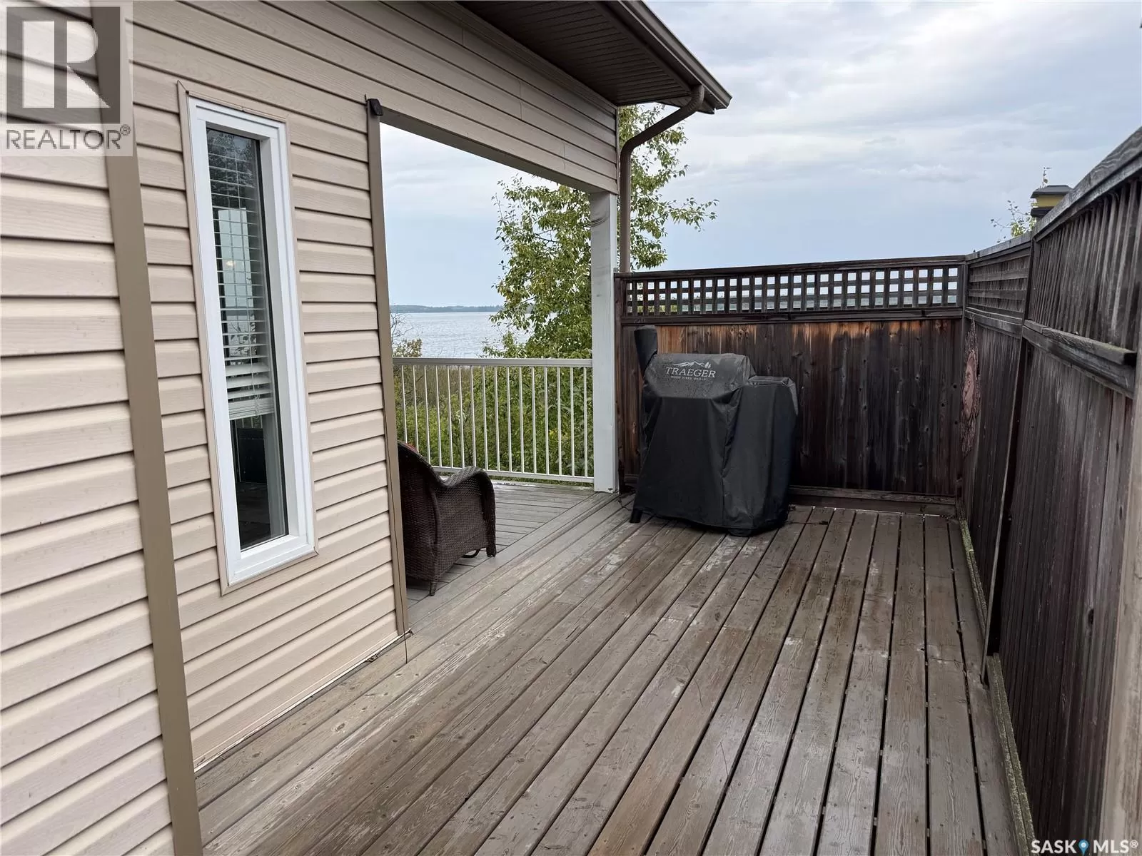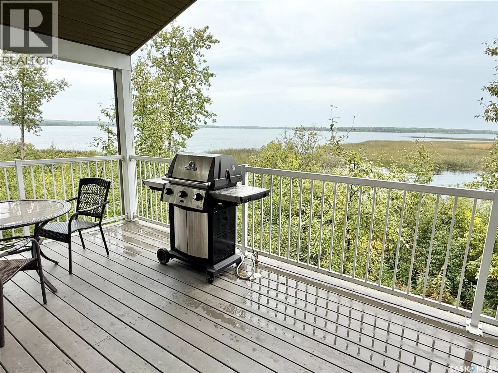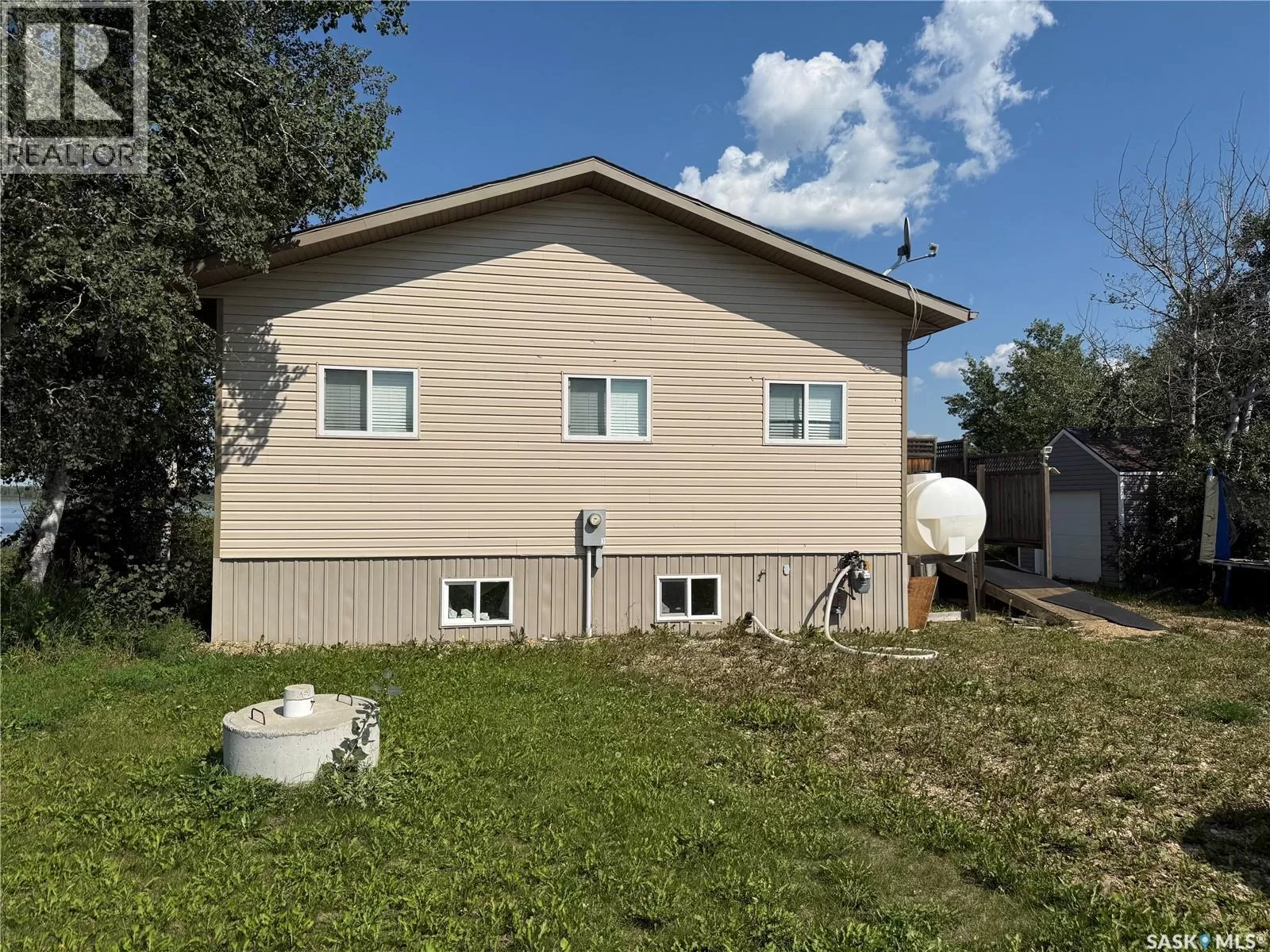 Built in 2014, this lovely 4-season lakefront cottage offers over 2,000 sq ft of living space with 6 bedrooms and 2 bathrooms, perfect for family gatherings or hosting guests. The main floor features vaulted pine ceilings, low-maintenance lino flooring, a natural gas fireplace, and an open kitchen with deck access and a natural gas BBQ. The spacious covered wrap-around deck and lower-level custom brick patio with fire pit area provide multiple spots to soak in the beautiful lake views while maintaining your privacy. The walkout basement includes 3 of the bedrooms (one unfinished), a 3pc bath/laundry, and a cozy electric fireplace. Enjoy year-round comfort with natural gas forced air heat plus electric baseboard backup. Extra items of note include a 1250-gallon fresh water tank, concrete septic holding tank, lake water intake for yard use, large shed with overhead door, and wheelchair accessibility. With a hard, sandy shoreline just steps away you can enjoy the lake to the fullest! Aspen Ridge Development is on the southwest side of Big Shell Lakeâonly 1 hour 20 minutes from Saskatoonâthis move-in ready, furnished property is an ideal getaway for fishing, water sports, or simply relaxing at the lake. Set on a large lot - there is opportunity for you to build a garage as well. Enjoy Saskatoon Berry bushes and Chokecherries right in your front yard! Reach out for more information! (id:27476)