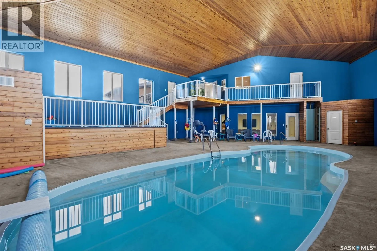 One of a kind premier property in the quiet community of Birch Hills! Located only 20 minutes Southeast of Prince Albert, this beautiful home features 6 bedrooms and 4 bathrooms. The massive maple kitchen with a large island and bar seating is perfect for all your culinary needs. Adjacent to the kitchen lies a spacious dining area, adorned with South facing picture windows and could easily double as a cozy living room. The main level is complete with 3 generous bedrooms including a primary with a cheater ensuite and a walk in closet. Step through the patio doors off of the kitchen onto a mezzanine that overlooks the 2000 sqft fully enclosed year round pool room. Here, you'll find a 40 x 15 ft heated indoor pool complete with a diving board, accompanied by a luxurious hot tub, vaulted cedar finished ceiling, and convenient amenities including a 2 piece bathroom and rinse off area. This meticulously designed space provides the ultimate setting for entertainment and relaxation, ensuring year round enjoyment, even amidst the chilliest winter months. The fully finished basement includes a large family room with pool views and direct access to the pool area as well as a 3 piece bathroom and 3 sizable bedrooms. Other highlights include heated concrete floors throughout the basement, an ICF constructed foundation, a double attached fully insulated garage equipped with overhead door openers, a fully fenced yard with landscaped grounds and a deck with a natural gas hookup. Schedule a viewing today and experience this unique property firsthand! (id:27476)