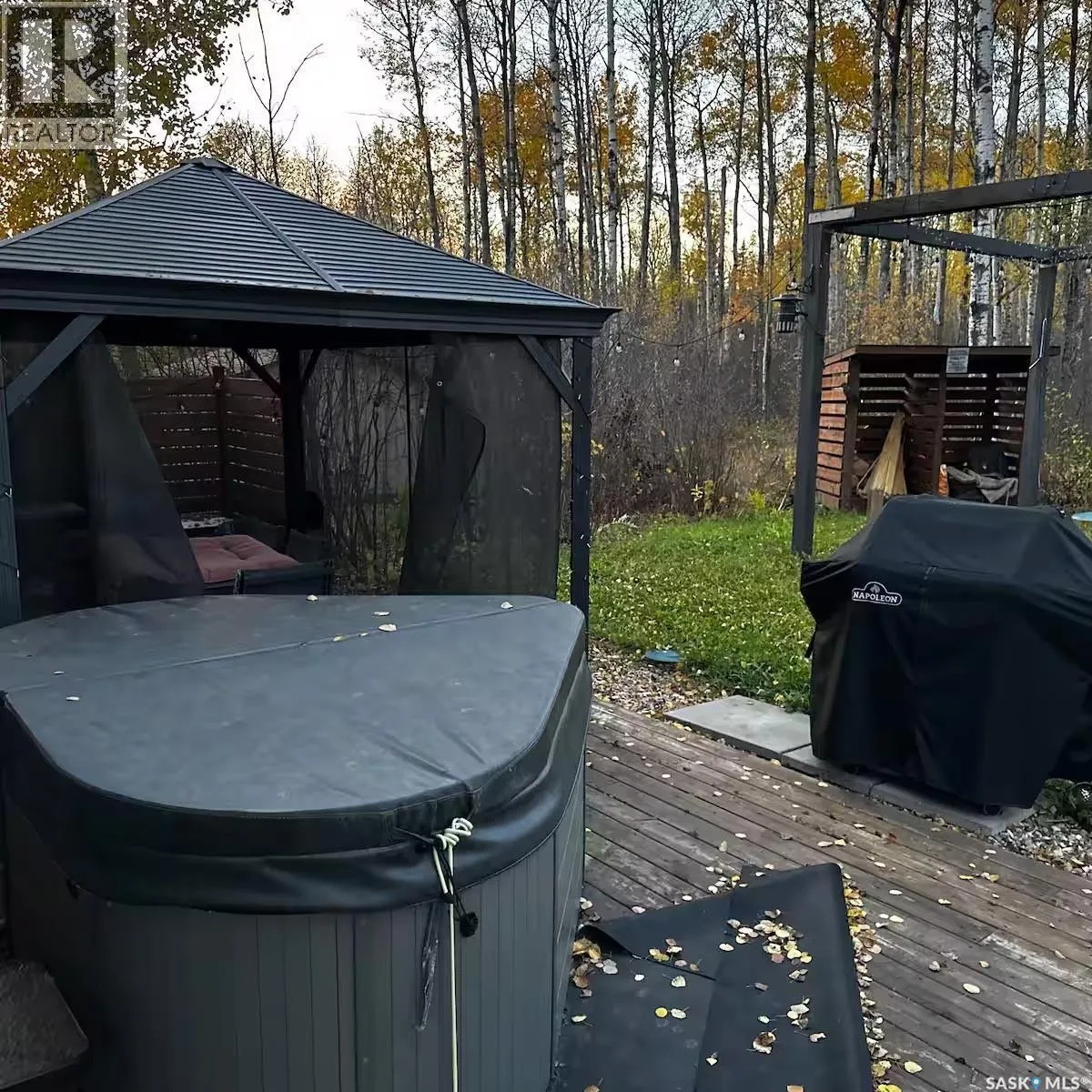 Charming Clean 4 Season Rustic Styled Cabin at Marean Lake, SK ON A TITLED LOT â 508 Bear Road - Escape to the beauty of Marean Lake with this warm and inviting cabin tucked into a scenic hillside. Built in 2011 and offering 848 sq. ft. of comfortable living space, this getaway blends natural charm with modern convenience. Enjoy high-quality lake water, excellent fishing, boating, and sandy beaches just minutes from your door -- Interior Features -- Three spacious bedrooms, each with generous closet space -4-piece bathroom with a clean, functional layout -Sliding barn door, elegant stonework, and an electric fireplace that elevate the cabinâs cozy atmosphere -Thoughtful design throughout, creating a welcoming retreat for family and guests -- Outdoor Living -- Step onto the large covered deck, perfect for morning coffee, evening relaxation, or hosting friends. The backyard is a private oasis featuring: Pergola, Hot tub, Fire pit area - Surrounded by mature trees for privacy and shade -- Marean Lake Lifestyle & Outdoors -- Known for its exceptional recreation opportunities, making this cabin ideal for families, outdoor enthusiasts, and anyone seeking an active lakeside lifestyle. Enjoy -Boating, kayaking, canoeing, and paddleboarding on calm, clear waters -Excellent fishing for walleye, pike, and perch -Beautiful sandy beaches perfect for swimming and sunbathing -Scenic hiking and nature trails throughout the surrounding forest -Snowmobiling, cross-country skiing, and ice fishing in the winter months --A welcoming lake community with seasonal events, gatherings, and family-friendly activities --- This is your chance to own a peaceful, well-kept retreat at one of the regionâs most desirable lakes. Whether youâre looking for a family getaway, a rental opportunity, or a quiet place to unwind, this cabin delivers. For more details or to book a viewing, contact your agent today. (id:27476)