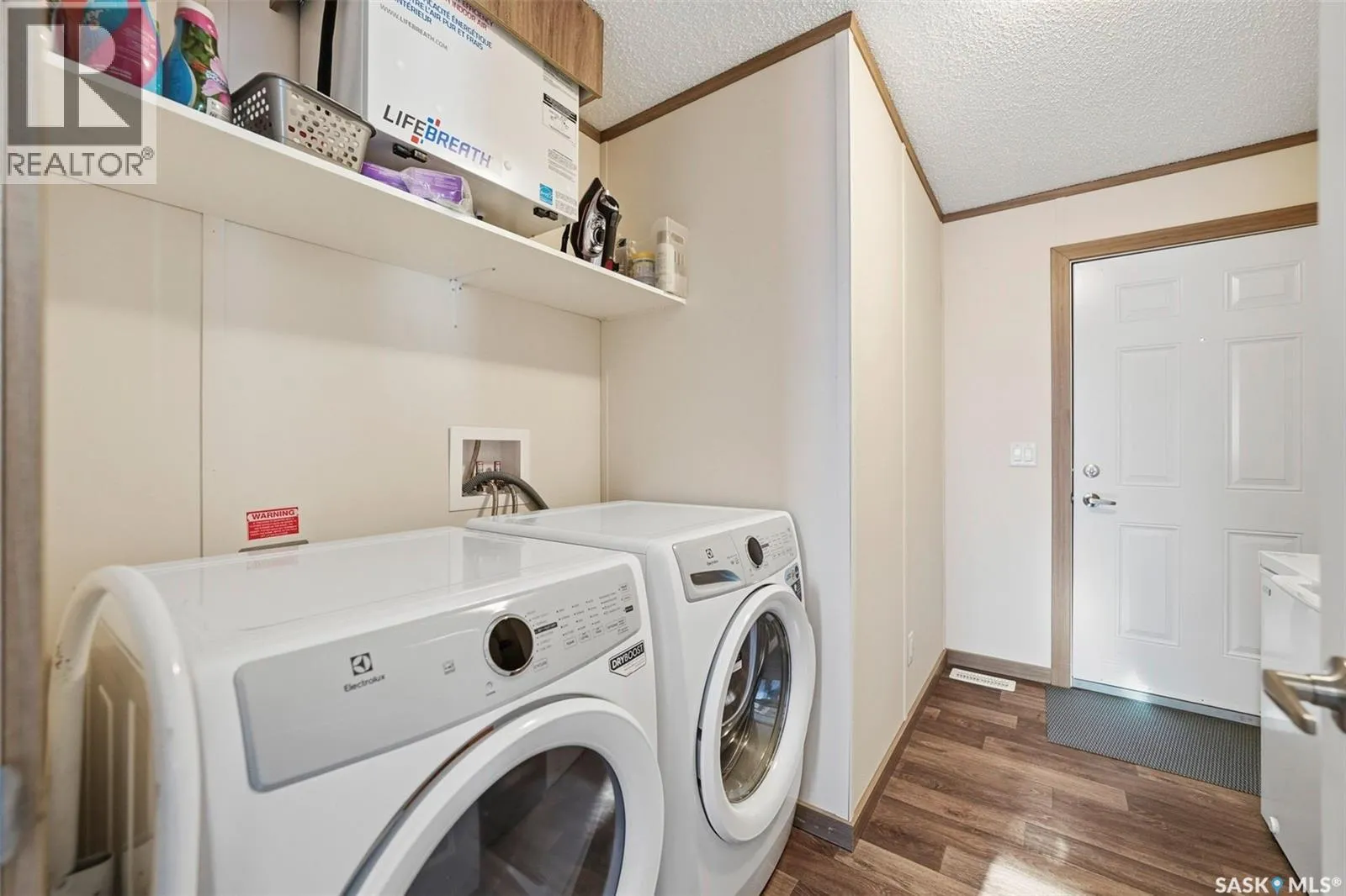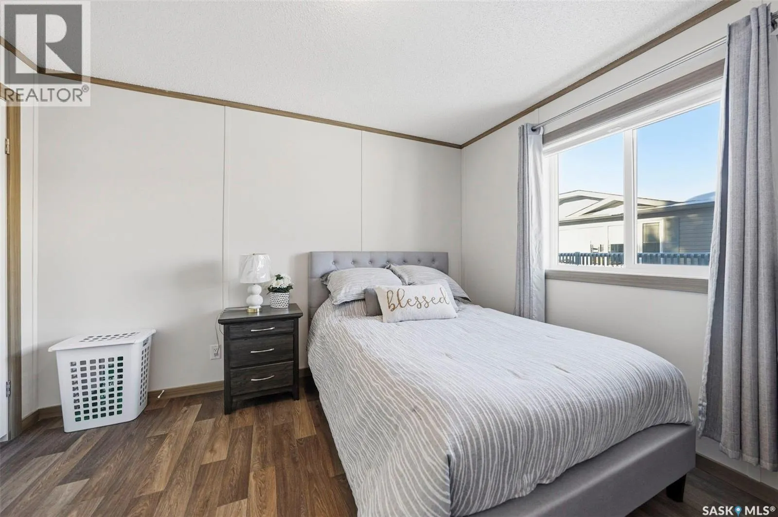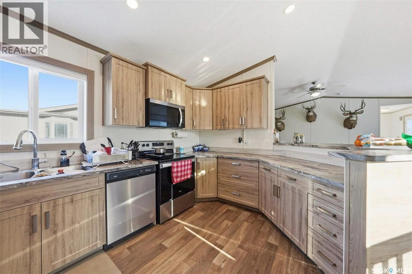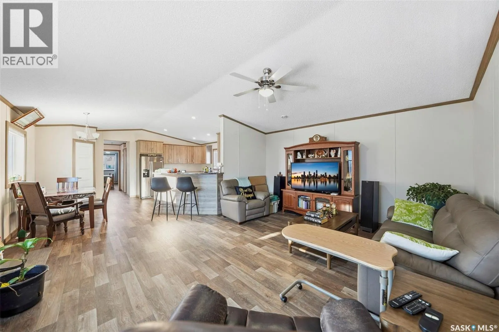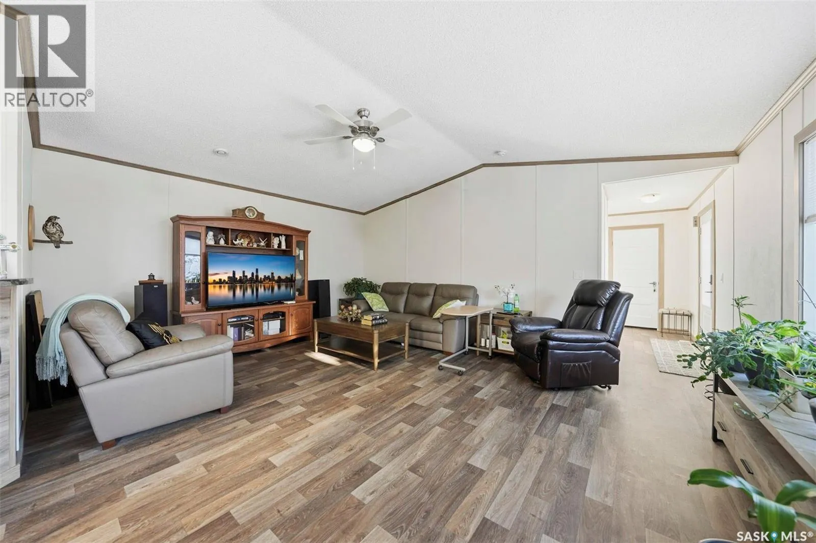 Welcome! Modular home built in 2023 and purchased NEW in June of 2025. This spacious 3 bedroom home features an open floor plan and vaulted ceilings. The master suite offers a 3 piece ensuite with large walk in shower and walk in closet. The large rear deck overlooks a private fenced yard boasting many trees and shrubs. Sunset Estates is a quiet, peaceful community just 10 minutes away from the hustle and bustle of city life. Plenty of social events in this community that hosts a childrenâs park, community hall, firehall, convenience store and gas bar. The $747.00/mo lot fee is a fraction of those in the city and pays for road maintenance, water & sewer, garbage, recycling, and property taxes. Childrenâs school bus service available to Corman Park School. Call your favorite Realtor to view. You wonât be disappointed. Sellers have made a short summer video of the property and will gladly provide it on request. Sellers would consisder a trade for a home n the city. (id:27476)