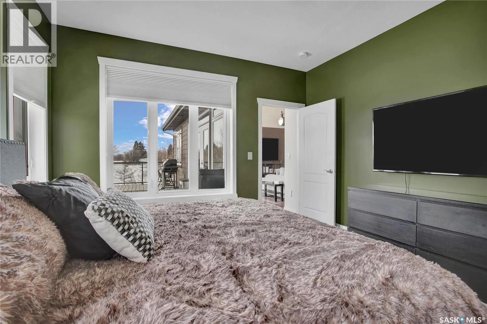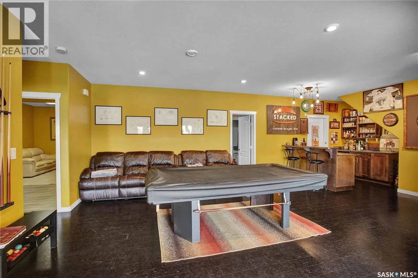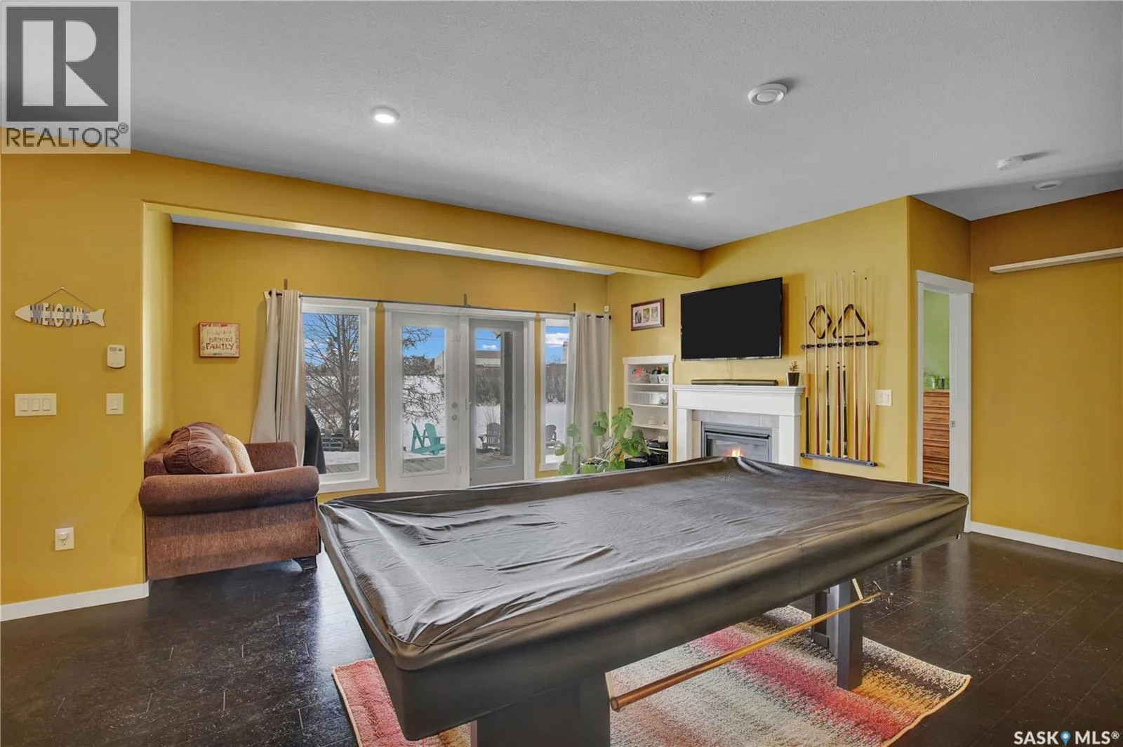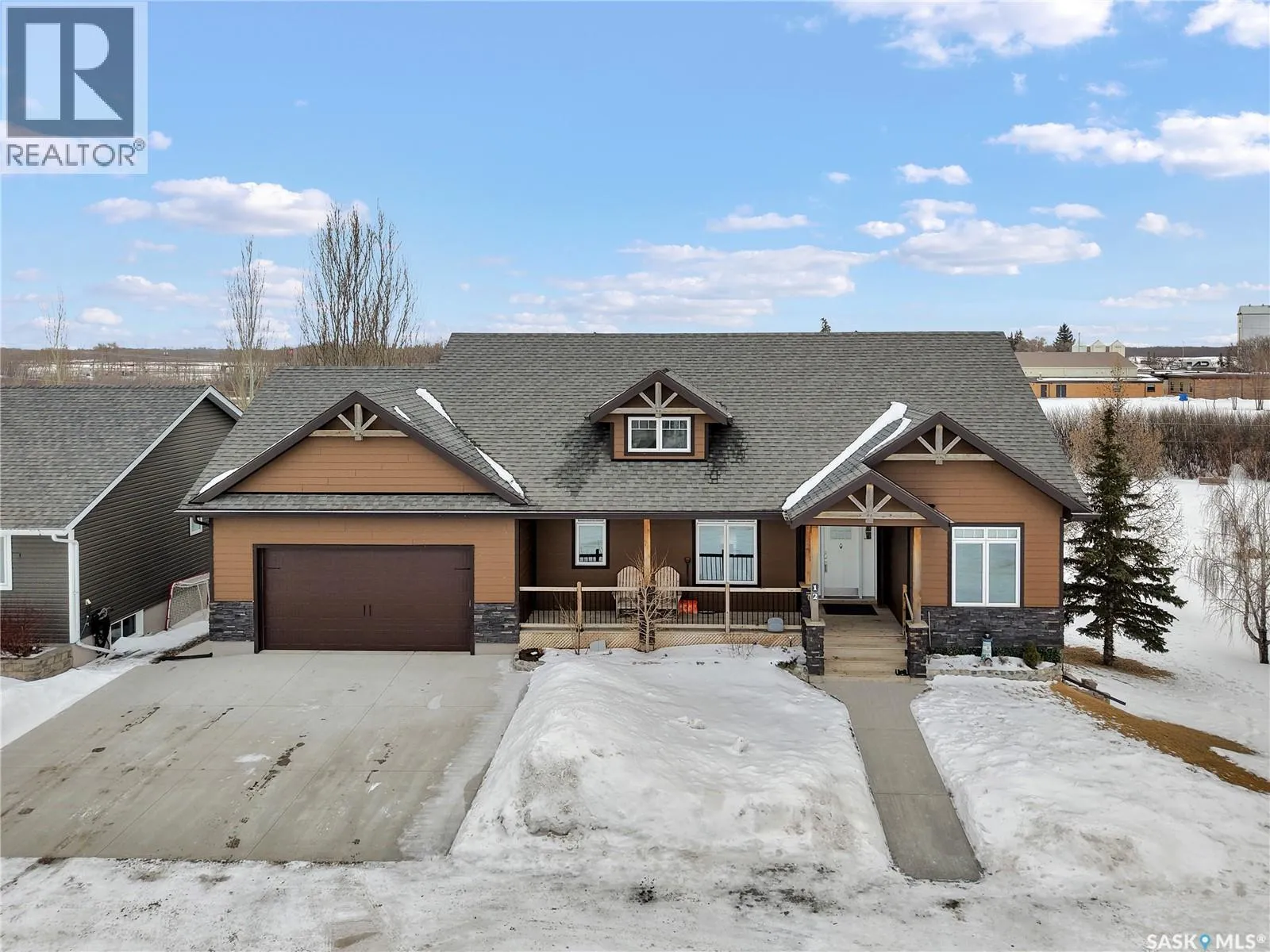 Welcome to 12 Derbowka Drive in Borden. This well-maintained walkout bungalow offers a spacious and thoughtfully designed floor plan, perfect for families of all sizes. With 5 well-sized bedrooms, 2 large living rooms, a workout area, wet bar, and a versatile flex space ideal for a theatre room, games room, or hobby area. There is no shortage of room to live, relax, and entertain. The larger-than-average 22' x 26' heated double attached garage provides plenty of space for vehicles, storage, and projects, while the attached rear shed adds even more practicality. Pride of ownership is evident throughout the home, with recent updates including fresh paint, a triple concrete driveway, and a front walkway designed to make snow removal simple and convenient. At the rear of the home, enjoy beautiful south-facing views from both the upper and lower decks overlooking Shepherdâs Creek and Borden School, which offers Kindergarten through Grade 12 and is conveniently accessible by a pedestrian bridge over the creek. Come experience the charm of Borden and see why this vibrant community is such a wonderful place to call home. For more information about the community, visit bordensask.ca â or better yet, book your showing and see this beautiful home and community for yourself today. (id:27476)
