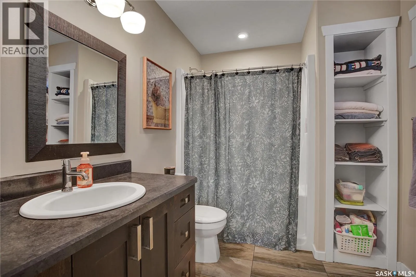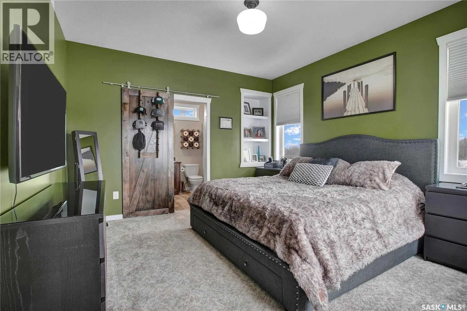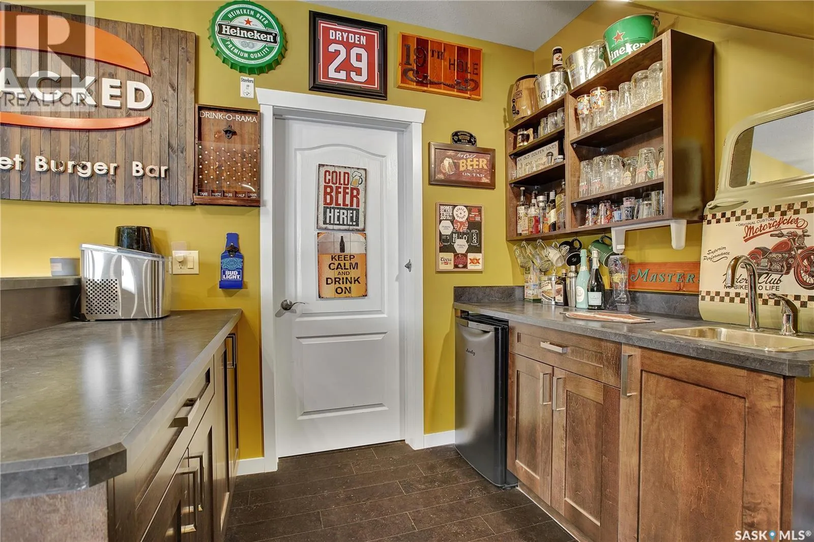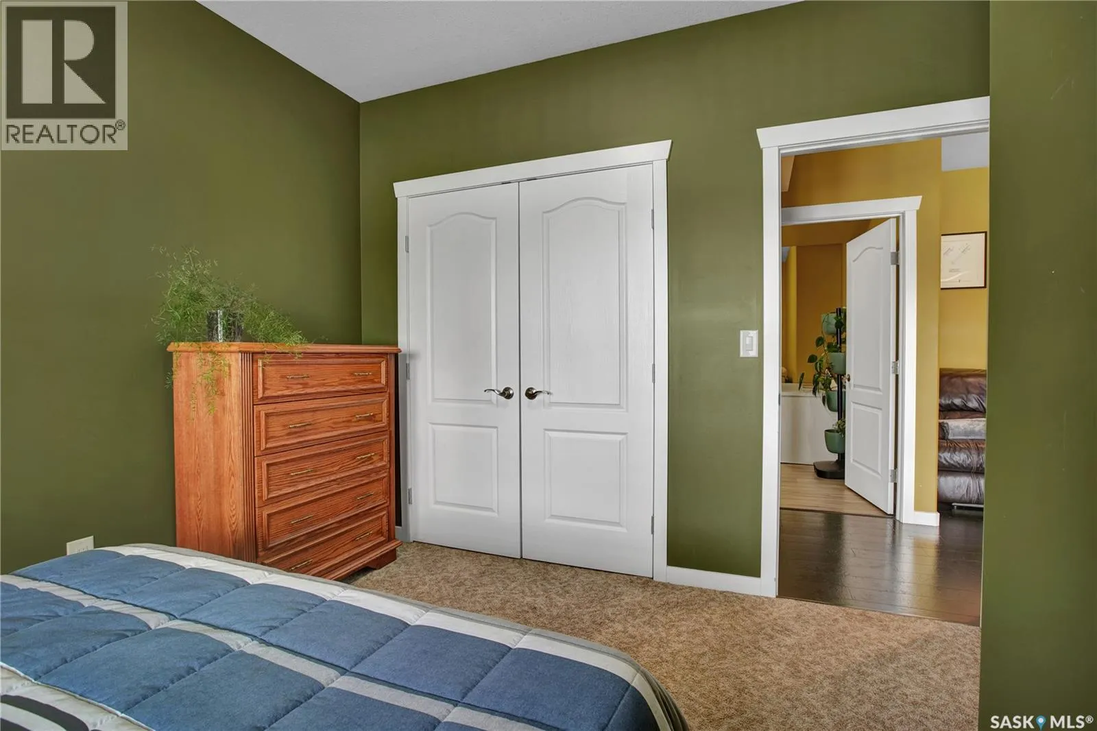 Welcome to 12 Derbowka Drive in Borden. This well-maintained walkout bungalow offers a spacious and thoughtfully designed floor plan, perfect for families of all sizes. With 5 well-sized bedrooms, 2 large living rooms, a workout area, wet bar, and a versatile flex space ideal for a theatre room, games room, or hobby area. There is no shortage of room to live, relax, and entertain. The larger-than-average 22' x 26' heated double attached garage provides plenty of space for vehicles, storage, and projects, while the attached rear shed adds even more practicality. Pride of ownership is evident throughout the home, with recent updates including fresh paint, a triple concrete driveway, and a front walkway designed to make snow removal simple and convenient. At the rear of the home, enjoy beautiful south-facing views from both the upper and lower decks overlooking Shepherdâs Creek and Borden School, which offers Kindergarten through Grade 12 and is conveniently accessible by a pedestrian bridge over the creek. Come experience the charm of Borden and see why this vibrant community is such a wonderful place to call home. For more information about the community, visit bordensask.ca â or better yet, book your showing and see this beautiful home and community for yourself today. (id:27476)