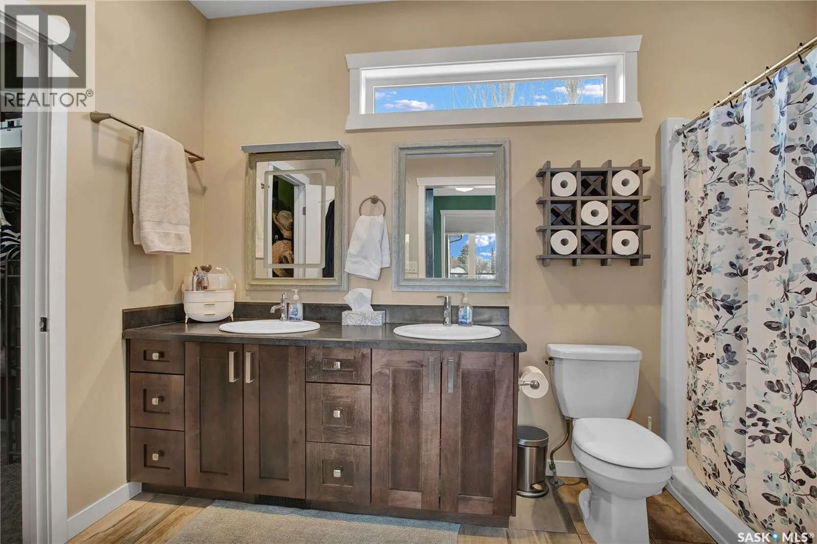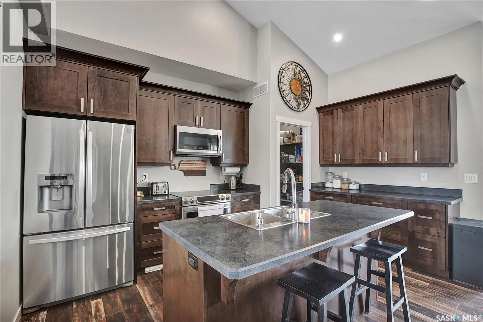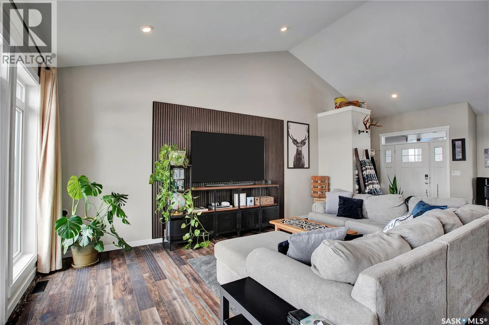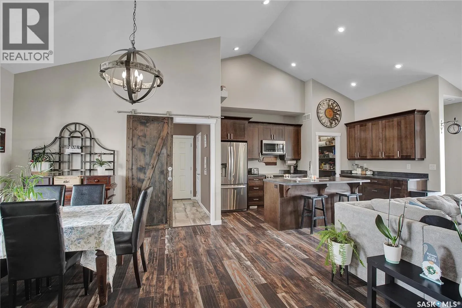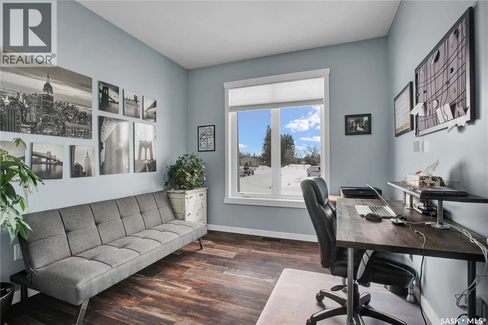 Welcome to 12 Derbowka Drive in Borden. This well-maintained walkout bungalow offers a spacious and thoughtfully designed floor plan, perfect for families of all sizes. With 5 well-sized bedrooms, 2 large living rooms, a workout area, wet bar, and a versatile flex space ideal for a theatre room, games room, or hobby area. There is no shortage of room to live, relax, and entertain. The larger-than-average 22' x 26' heated double attached garage provides plenty of space for vehicles, storage, and projects, while the attached rear shed adds even more practicality. Pride of ownership is evident throughout the home, with recent updates including fresh paint, a triple concrete driveway, and a front walkway designed to make snow removal simple and convenient. At the rear of the home, enjoy beautiful south-facing views from both the upper and lower decks overlooking Shepherdâs Creek and Borden School, which offers Kindergarten through Grade 12 and is conveniently accessible by a pedestrian bridge over the creek. Come experience the charm of Borden and see why this vibrant community is such a wonderful place to call home. For more information about the community, visit bordensask.ca â or better yet, book your showing and see this beautiful home and community for yourself today. (id:27476)