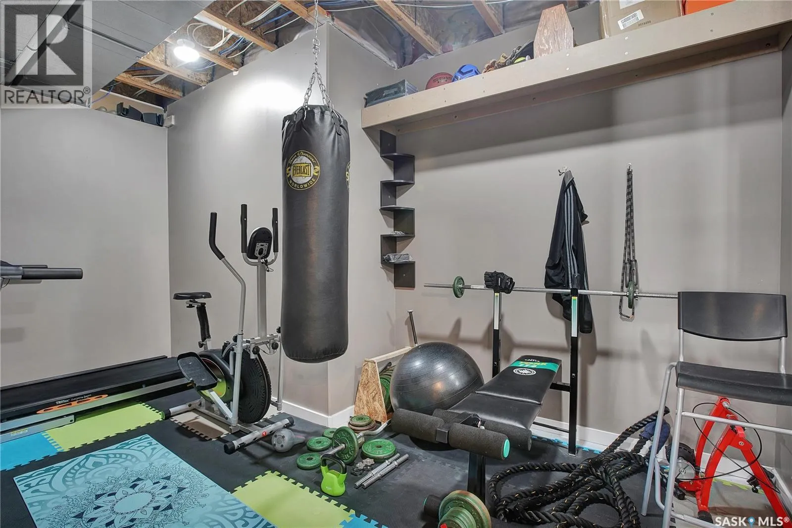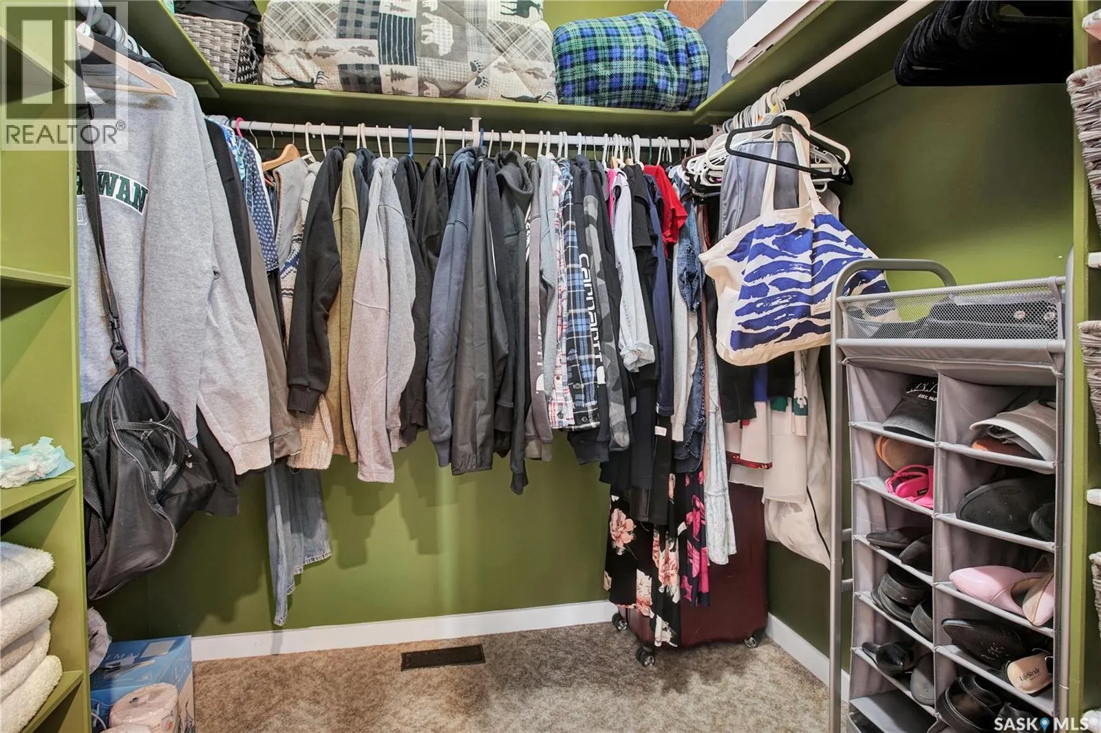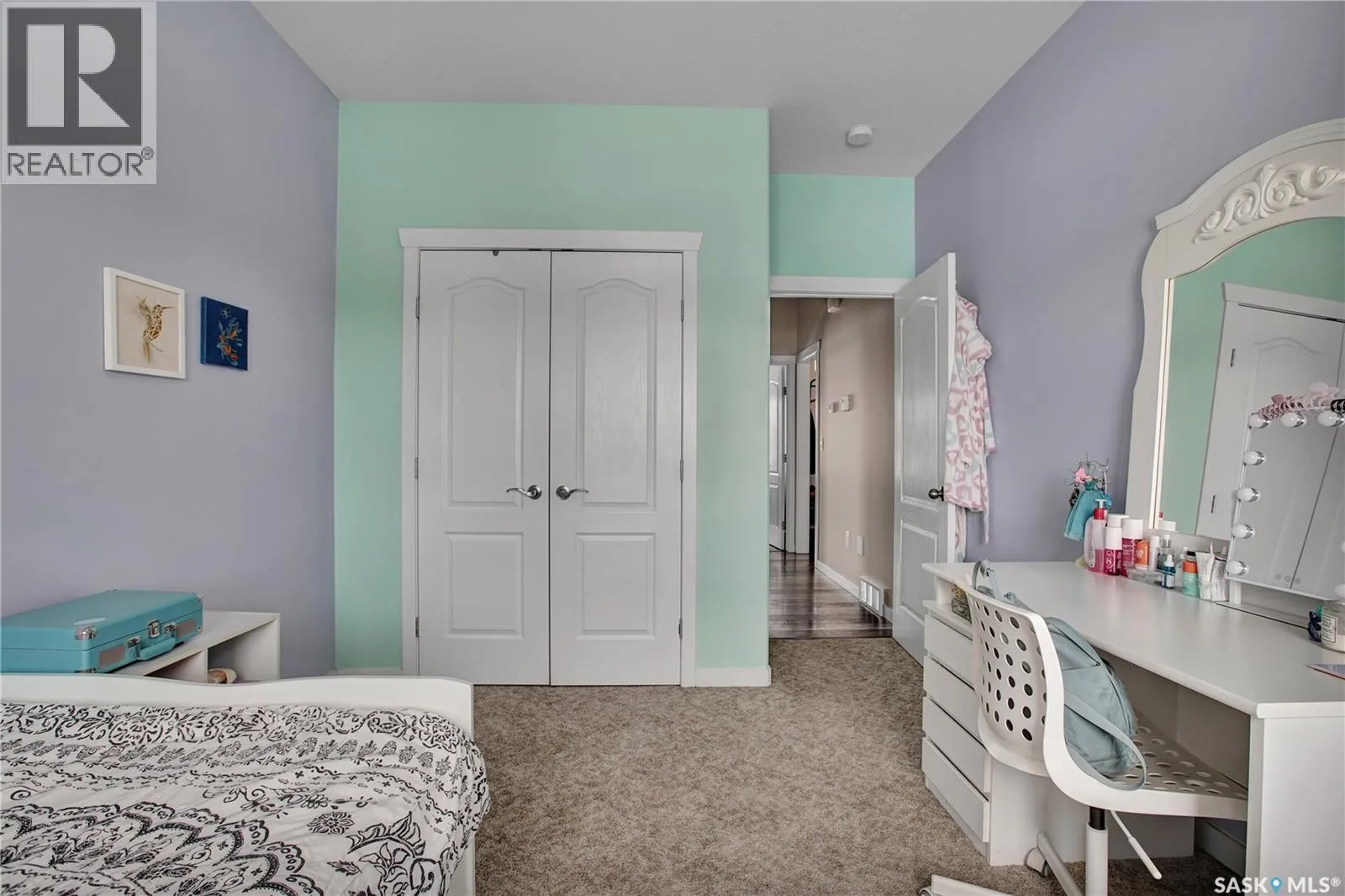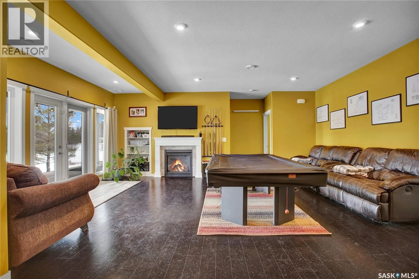 Welcome to 12 Derbowka Drive in Borden. This well-maintained walkout bungalow offers a spacious and thoughtfully designed floor plan, perfect for families of all sizes. With 5 well-sized bedrooms, 2 large living rooms, a workout area, wet bar, and a versatile flex space ideal for a theatre room, games room, or hobby area. There is no shortage of room to live, relax, and entertain. The larger-than-average 22' x 26' heated double attached garage provides plenty of space for vehicles, storage, and projects, while the attached rear shed adds even more practicality. Pride of ownership is evident throughout the home, with recent updates including fresh paint, a triple concrete driveway, and a front walkway designed to make snow removal simple and convenient. At the rear of the home, enjoy beautiful south-facing views from both the upper and lower decks overlooking Shepherdâs Creek and Borden School, which offers Kindergarten through Grade 12 and is conveniently accessible by a pedestrian bridge over the creek. Come experience the charm of Borden and see why this vibrant community is such a wonderful place to call home. For more information about the community, visit bordensask.ca â or better yet, book your showing and see this beautiful home and community for yourself today. (id:27476)