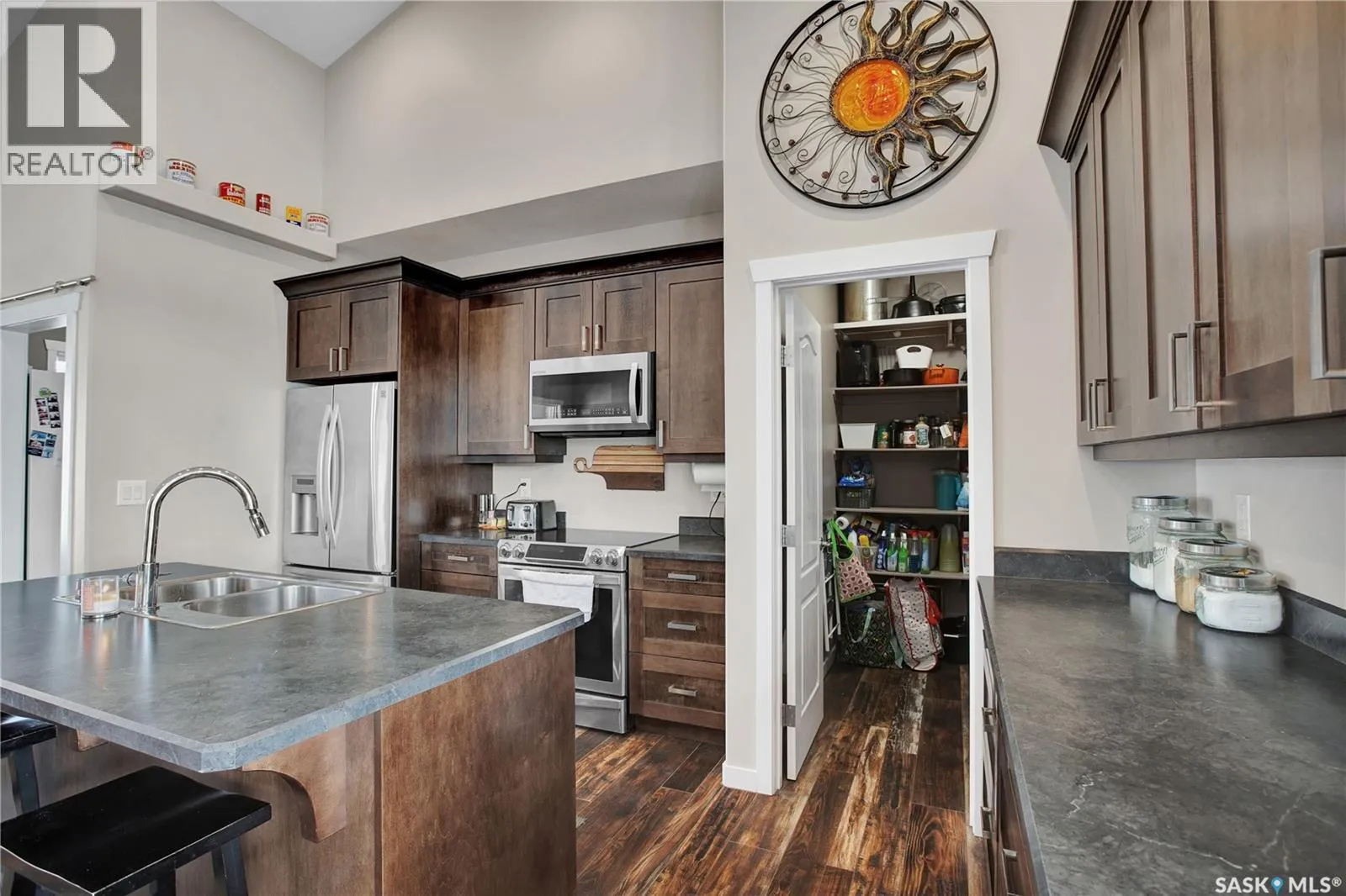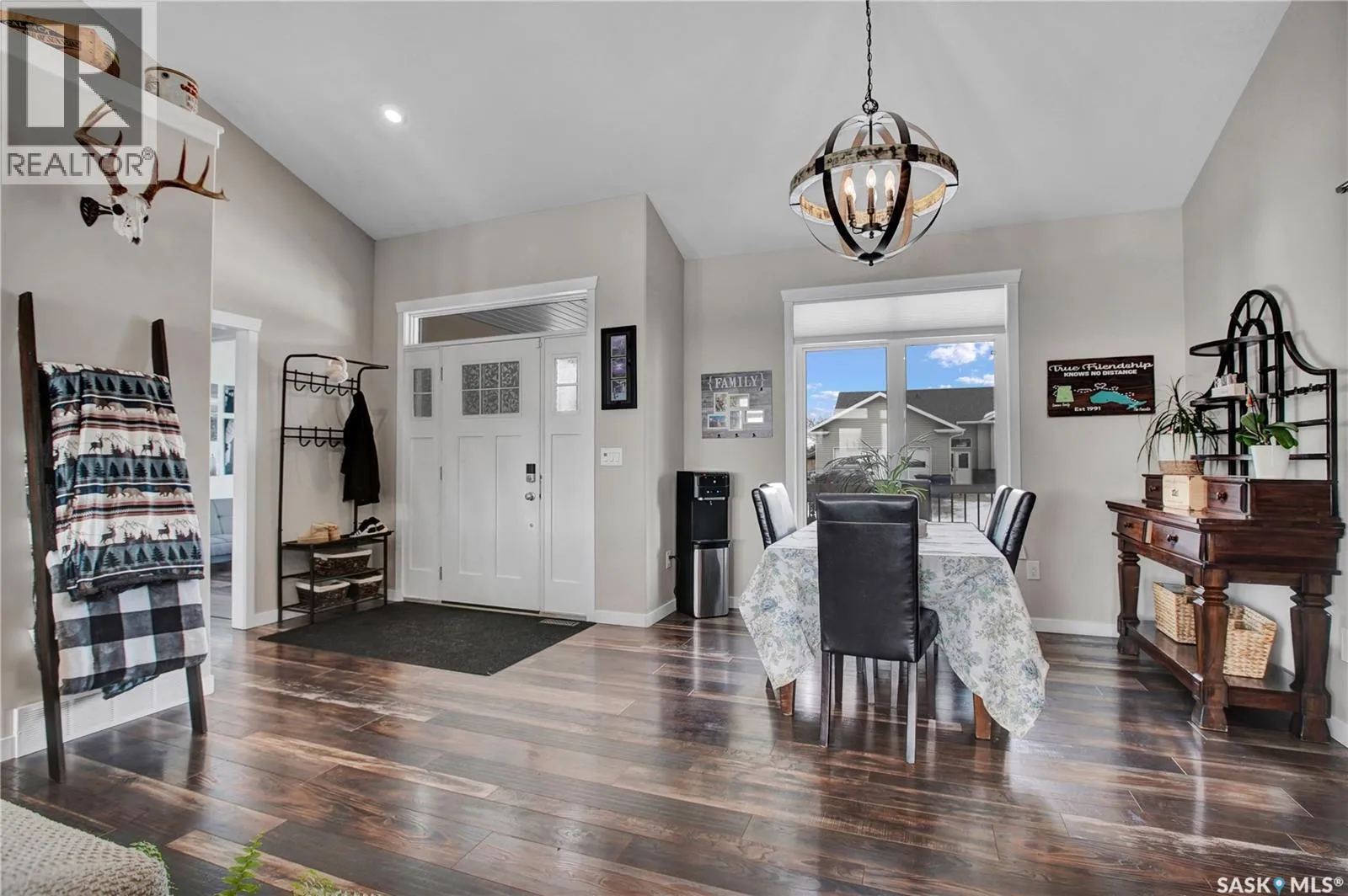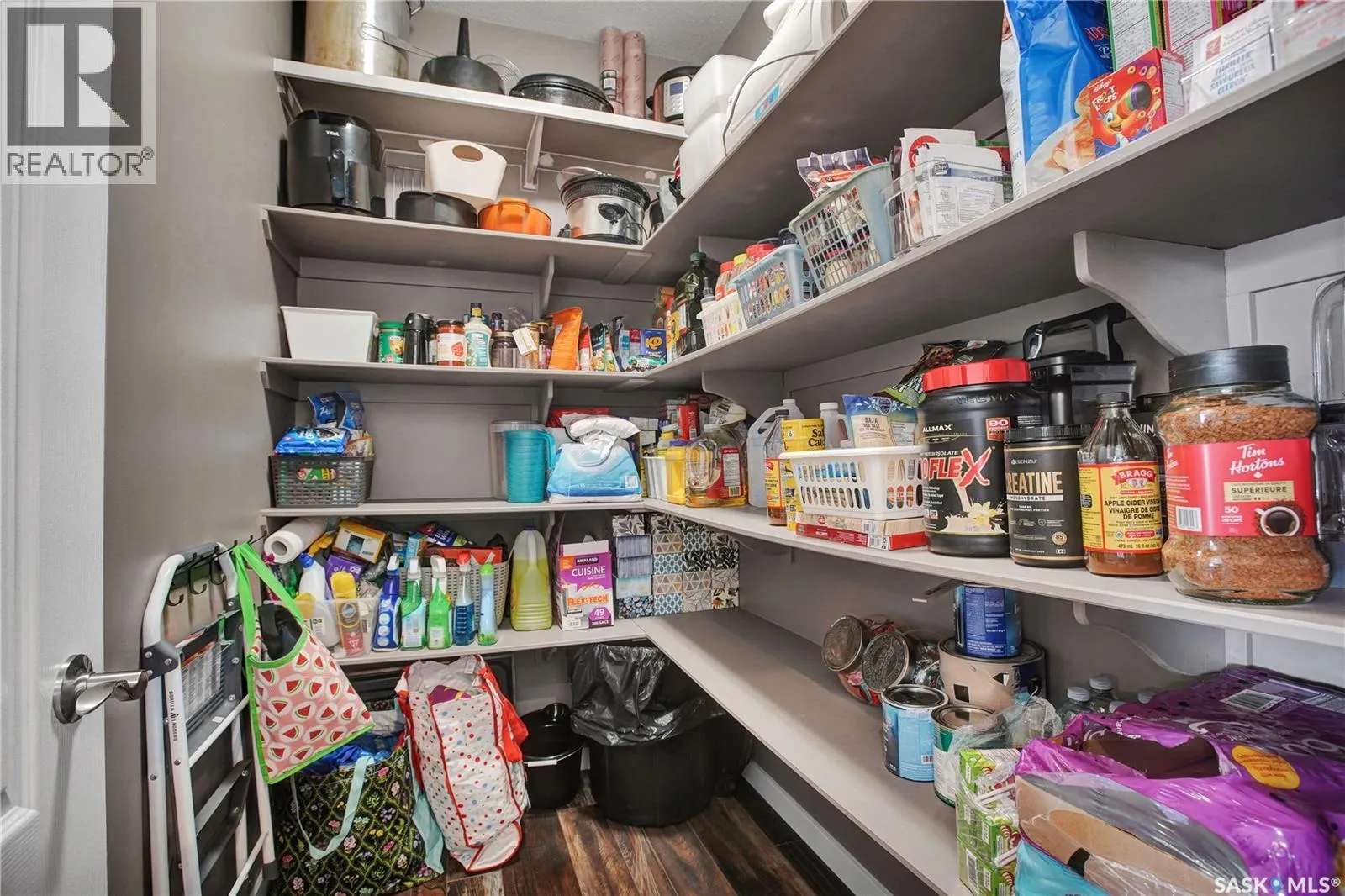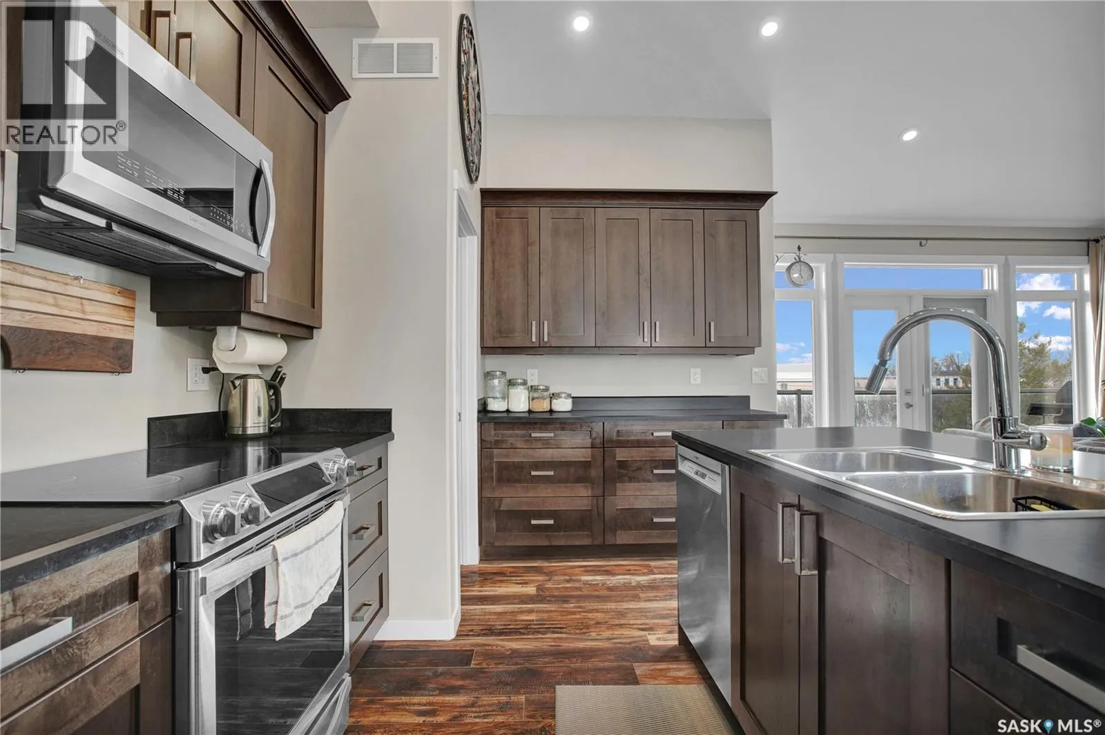 Welcome to 12 Derbowka Drive in Borden. This well-maintained walkout bungalow offers a spacious and thoughtfully designed floor plan, perfect for families of all sizes. With 5 well-sized bedrooms, 2 large living rooms, a workout area, wet bar, and a versatile flex space ideal for a theatre room, games room, or hobby area. There is no shortage of room to live, relax, and entertain. The larger-than-average 22' x 26' heated double attached garage provides plenty of space for vehicles, storage, and projects, while the attached rear shed adds even more practicality. Pride of ownership is evident throughout the home, with recent updates including fresh paint, a triple concrete driveway, and a front walkway designed to make snow removal simple and convenient. At the rear of the home, enjoy beautiful south-facing views from both the upper and lower decks overlooking Shepherdâs Creek and Borden School, which offers Kindergarten through Grade 12 and is conveniently accessible by a pedestrian bridge over the creek. Come experience the charm of Borden and see why this vibrant community is such a wonderful place to call home. For more information about the community, visit bordensask.ca â or better yet, book your showing and see this beautiful home and community for yourself today. (id:27476)