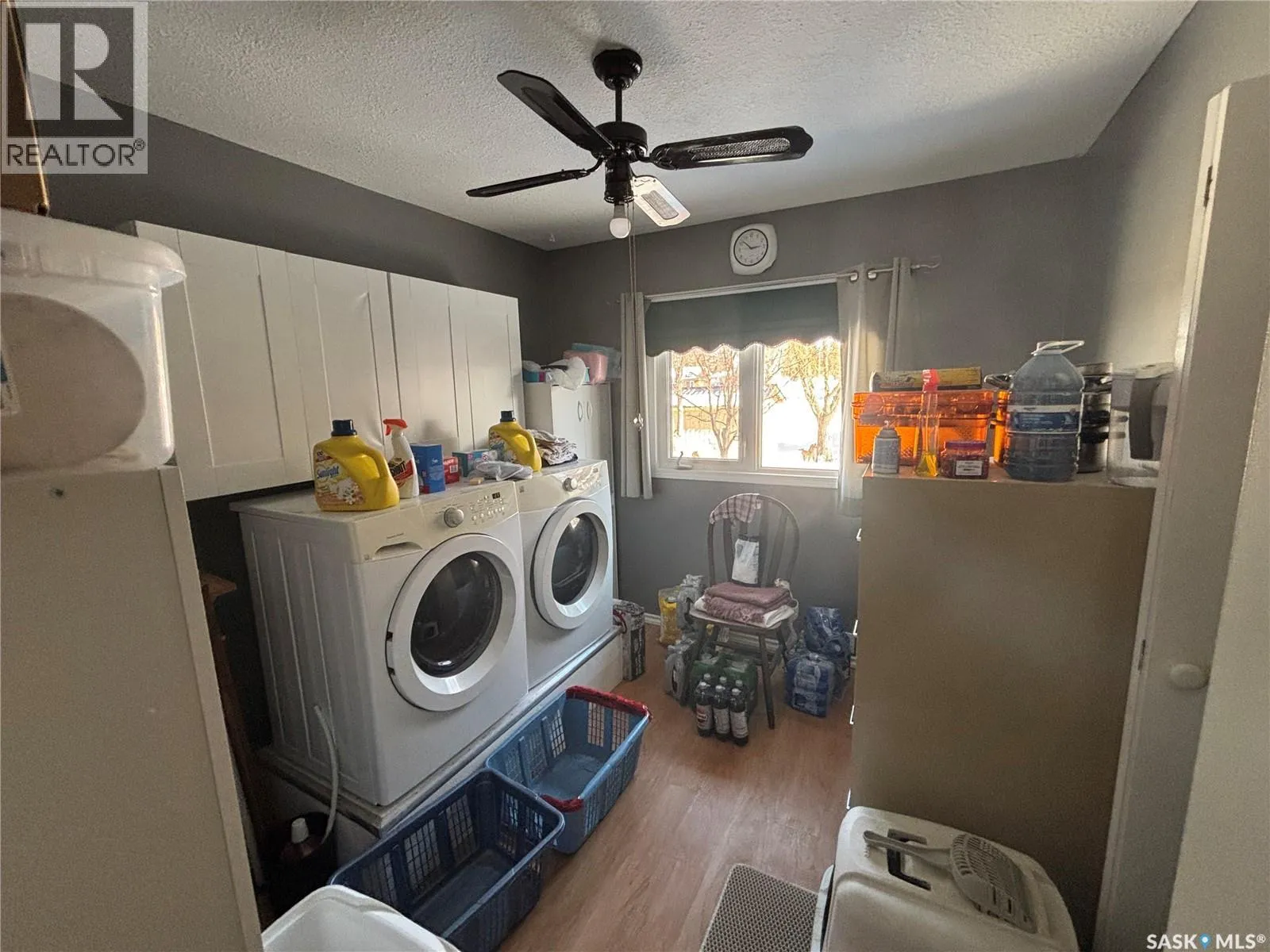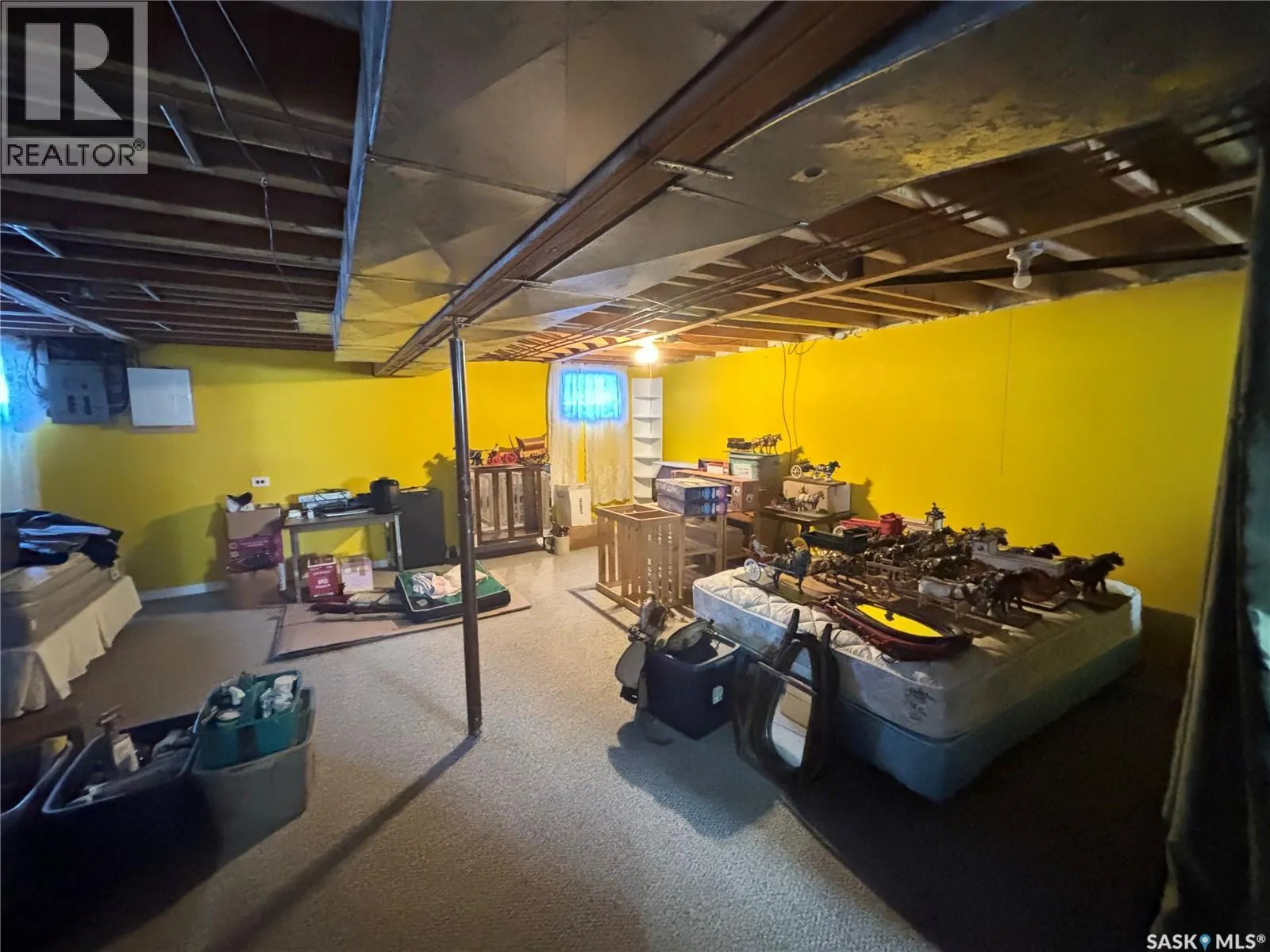 Very well taken care of bungalow on a highly desired lot in the town of Broadview. Located on a fully mature and private lot, this 2 bedroom two bath bungalow is sure to please. Features include 2 good sized bedrooms, living room, eat-in kitchen dining, main floor laundry with plenty of storage. The basement is large and open to do with what you desire. There is a 2 pc bath and is mostly carpeted, with a Large utility area and the back half is currently used as rec room and extra sleeping area. Upgrades to the home include vinyl windows, some updated flooring and paint, furnace and water heater are both (2014). The large private lot features good drainage to the creek that runs along the back of the property, a large double detached garage, 2 garden sheds (1 new), as well as both front and rear decks. Don't miss out on a chance to own this great property. (id:27476)