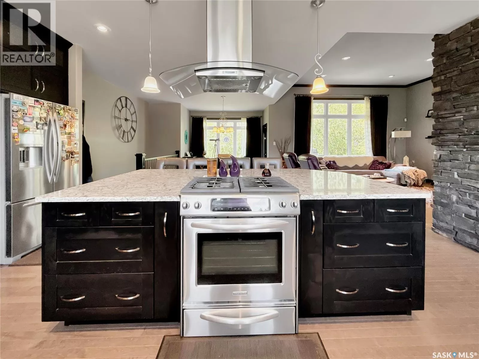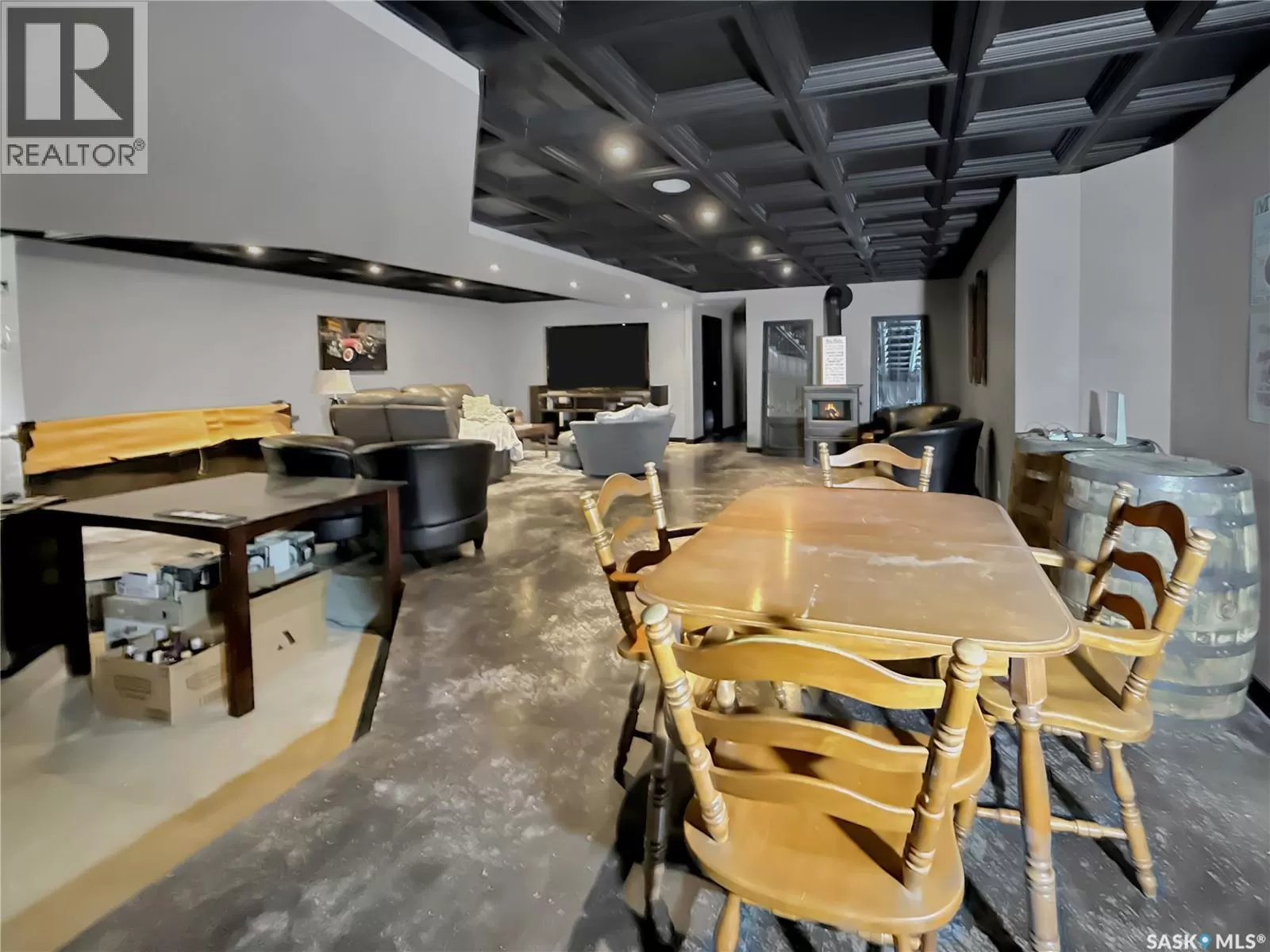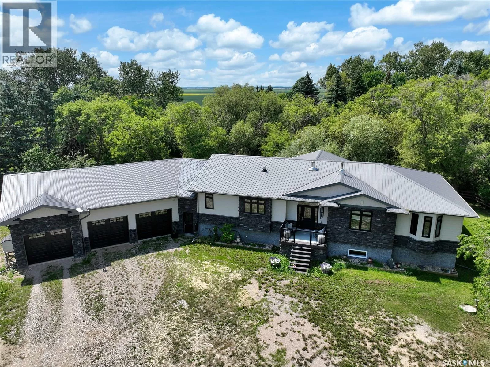 If your vision is modern elegance,step into The Lazy dollar Ranch!The main house & 3 car attached garage steals the show from entrance in to the insulated & heated breezeway with 2 pc bath.Hunting/ fishing/ fixing stories have a space and a place here, not to mention a cold fridge and a private breeze way bath so as not to disturb the main house functions.The main house access hits hard to an XL custom mudroom with built in lockers, mainfloor laundry & a well planned walk-through pantry.The party starts here with hardwood and ceramic tile through out the main floor, access to the basement,a formal dining room,10 ft island, dual wood fireplace & a view of the moose mountains from the kitchen sink story books dream of, not to mention enough cupboard space for all your tupperware lids.A sunken ceramic tile entry make wood stocking easy for the main floor fire place.The main floor also boasts tons of natural light with north and south facing windows, 3 main floor bedrooms, a 4 pc main bath and a custom ensuite bathroom so elaborate & copious in size you'll wonder how you lived any other way. Access from the master bedroom to the maintenance free decks, with included hot tub with a whispy whimsical set of shelter belt trees as a back drop finish your main floor experience.The basement is a whole other vibe, with matching color trends, a sunken concrete wet bar ready to be completed & enough space for anyones rec basement goals or interests. An additional alternative fireplace accents the basement,2 oversized bedrooms, gym & 3 pc bath.Additional advantage, concrete safe room with cored concrete air exchange in the event shelter was ever needed.The 3 car attached garage isn't enough for this 10.8 acre paradise, fenced twin pastures line the lane & it is further accented by a 60x48 shop with infloor heat & additional over head propane heater.Contact your agent to view the Lazy Dollar Ranch in SE Sk, where potash, wheat & oil meet and start your acreage owning goals now! (id:27476)