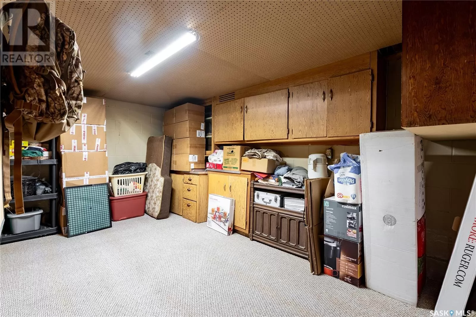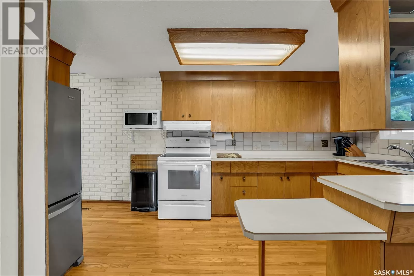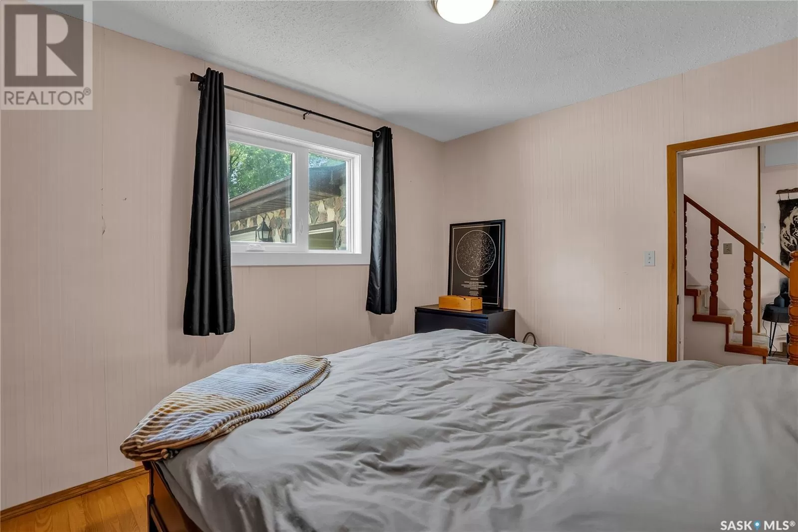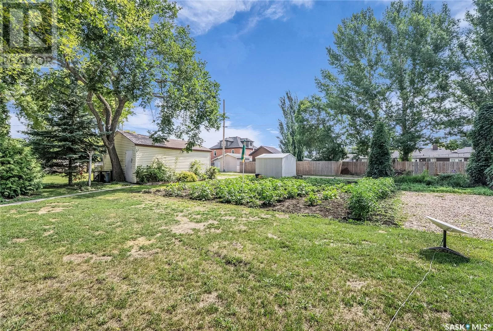 This spacious 4-bed, 2-bath character home with many updates and not one, but 2 garages is the perfect place to call home in the Town of Bruno! Youâll appreciate the functional layout of the home, including the large living room, main floor laundry, the open feel yet distinctive kitchen and dining room spaces with gorgeous hardwood floors, and undeveloped basement open for your touch. There is no shortage of storage and outdoor living space with 2 garages, one attached and one detached allowing for extra parking/storage, a garden shed, expansive yard with 75â frontage, patio for entertaining, and large garden area. Some of the many updates include Furnace and Hot Water Heater in 2022, shingles and electrical panel in 2023, fresh paint and garage door in 2024, as well as both bathrooms. Enjoy the tranquility and quiet of small-town life while still being conveniently close to Humboldt and Saskatoon. Book your personal viewing today! (id:27476)