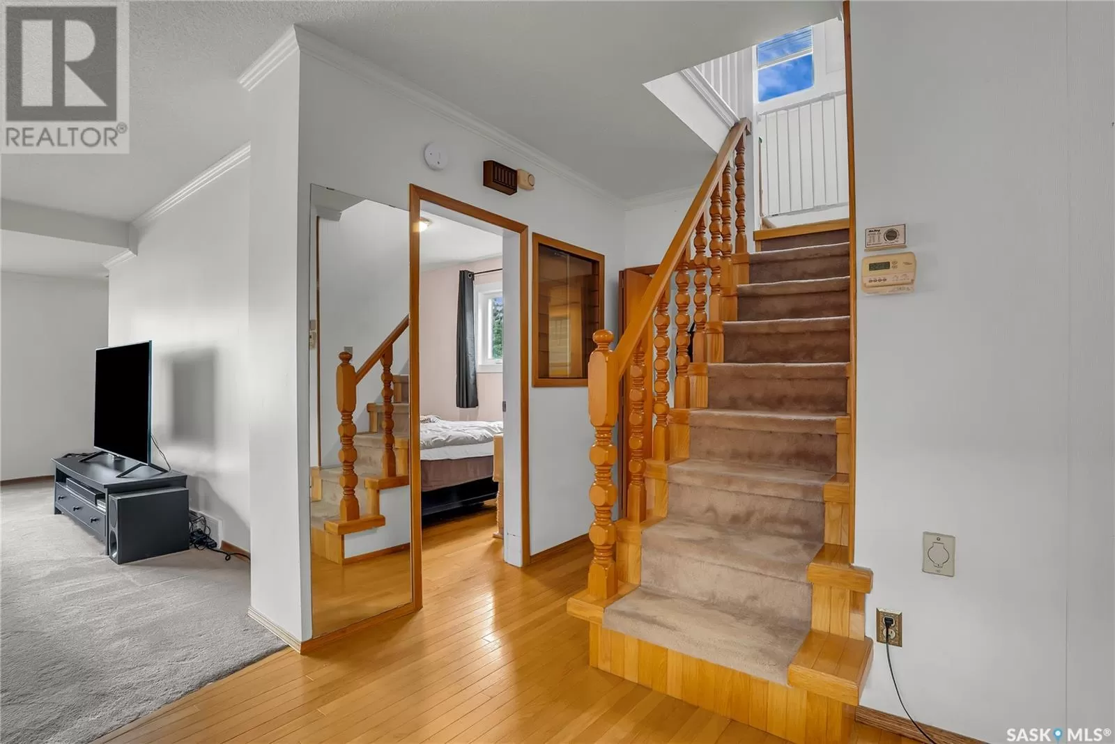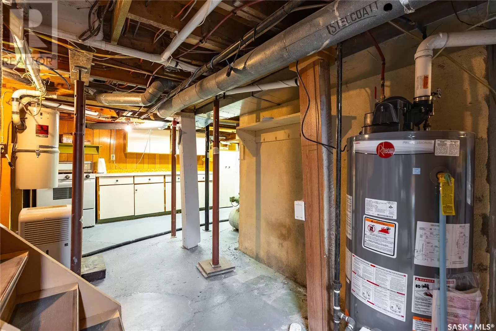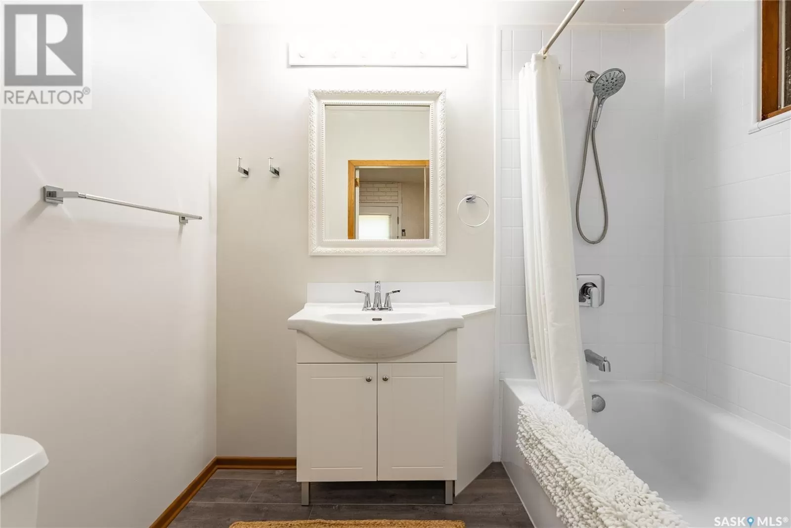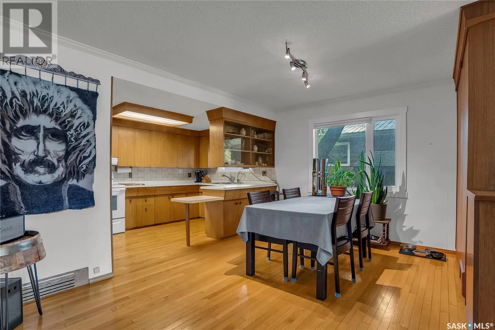 This spacious 4-bed, 2-bath character home with many updates and not one, but 2 garages is the perfect place to call home in the Town of Bruno! Youâll appreciate the functional layout of the home, including the large living room, main floor laundry, the open feel yet distinctive kitchen and dining room spaces with gorgeous hardwood floors, and undeveloped basement open for your touch. There is no shortage of storage and outdoor living space with 2 garages, one attached and one detached allowing for extra parking/storage, a garden shed, expansive yard with 75â frontage, patio for entertaining, and large garden area. Some of the many updates include Furnace and Hot Water Heater in 2022, shingles and electrical panel in 2023, fresh paint and garage door in 2024, as well as both bathrooms. Enjoy the tranquility and quiet of small-town life while still being conveniently close to Humboldt and Saskatoon. Book your personal viewing today! (id:27476)