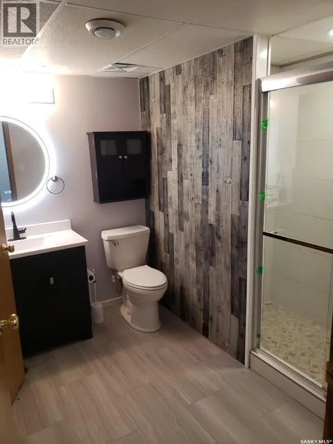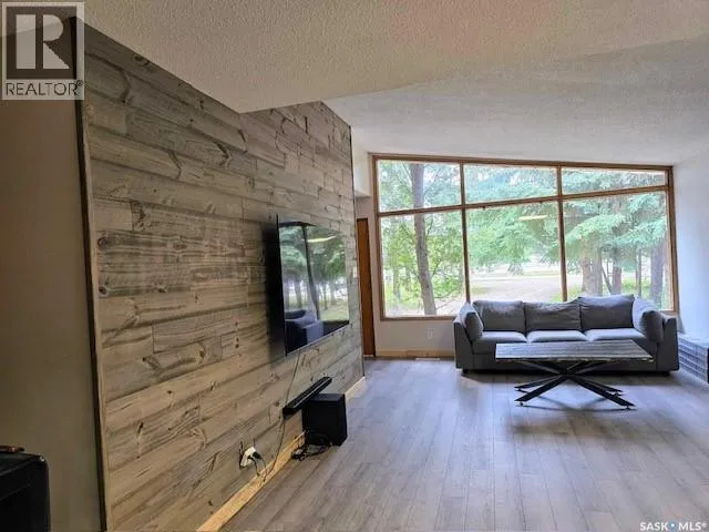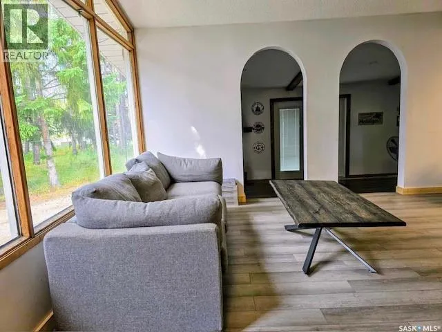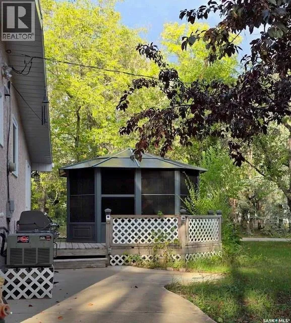 Quaint acreage home just minutes from the cityâa peaceful retreat that is move-in ready and available for quick possession! Enjoy delightful evenings on the back deck, sheltered within a screened gazebo. The double heated garage and secluded yard offer plenty of room for leisure, hobbies, and family fun. This 4-bedroom, 2-bathroom bungalow has undergone recent, stylish renovations including new floors and baseboards, enhanced by an eye-catching barn board feature wall and newly redone kitchen cabinets. A few steps down to the den/games room, complete with a natural gas fireplace, provides extra space for entertainment or a peaceful area for relaxation. The basement design includes a cozy living room, 2 rooms, both used as bedrooms as there is a unique, connected walk through closet. There is also a large, modernized bathroom with walk-in shower accessible from the bedroom and hallway and you will have peace of mind with the newly upgraded septic system. Most of the windows have been replaced (2021&2022), walk-in spa tub (2021) in main bathroom and new gazebo (2022). (id:27476)