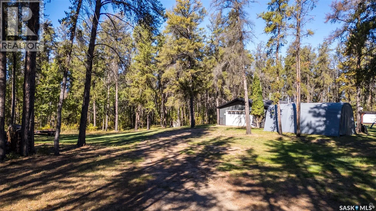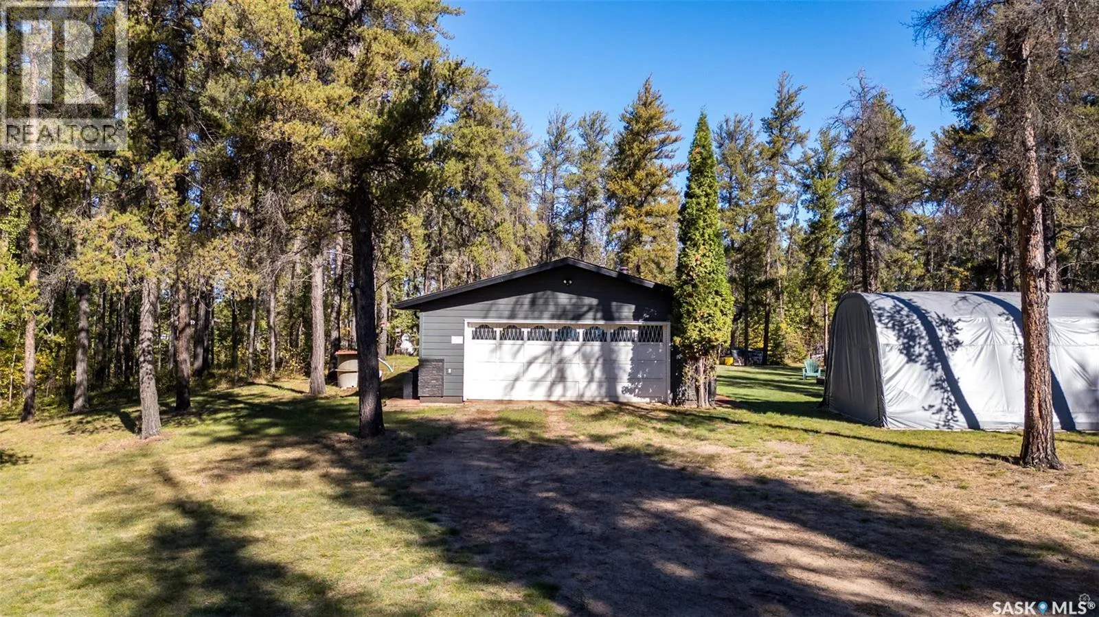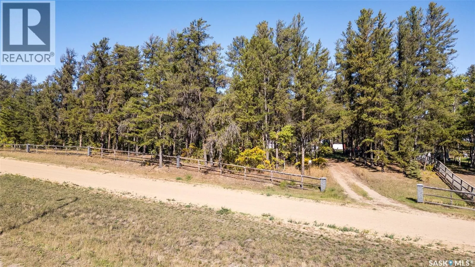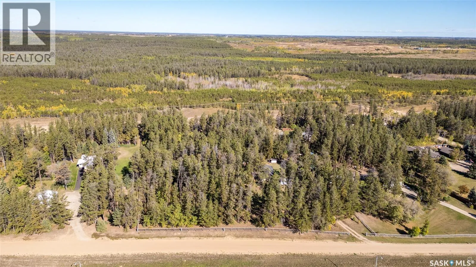 Located just 10 minutes from Prince Albert, this 1.88 acre lot presents a rare opportunity for those looking to build or expand their space. The property is fully fenced and features a heated 26 ft x 32 ft double detached garage, enhanced by an addition that includes a beautifully finished office space, a 2 piece bathroom and a covered patio, ideal for outdoor relaxation. There is also a firepit area that adds to the charm, making it perfect for enjoying evenings with family and friends. Surrounded by 200â300 mature trees, precisely planted throughout the landscape, this property provides both privacy and natural beauty. The water is supplied through a well that is shared with the adjacent property and the sewer system is a septic tank. Located near the North Saskatchewan River and Nisbet Provincial Forest, this lot combines tranquility with convenience. The adjacent property (MLS # SK021149) is also available for sale, offering the potential to purchase both as a package. Donât miss this opportunity to create your own peaceful retreat! (id:27476)