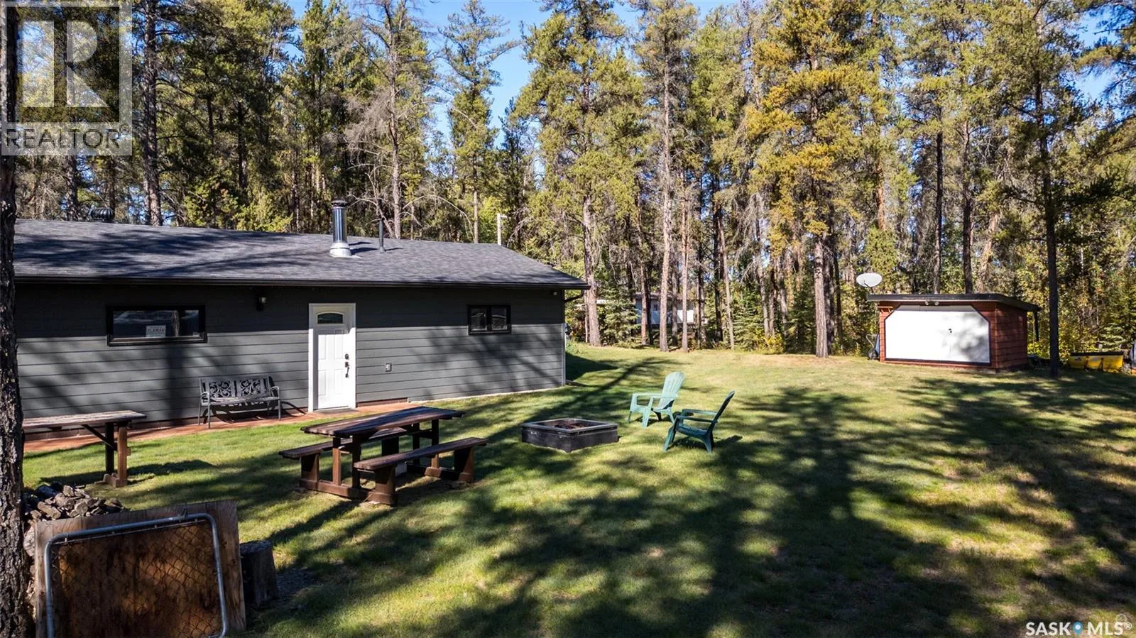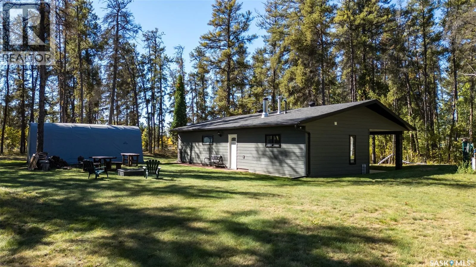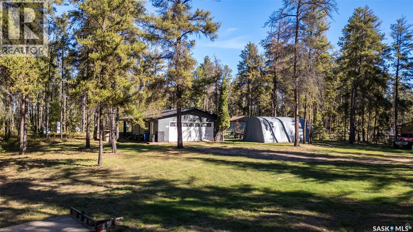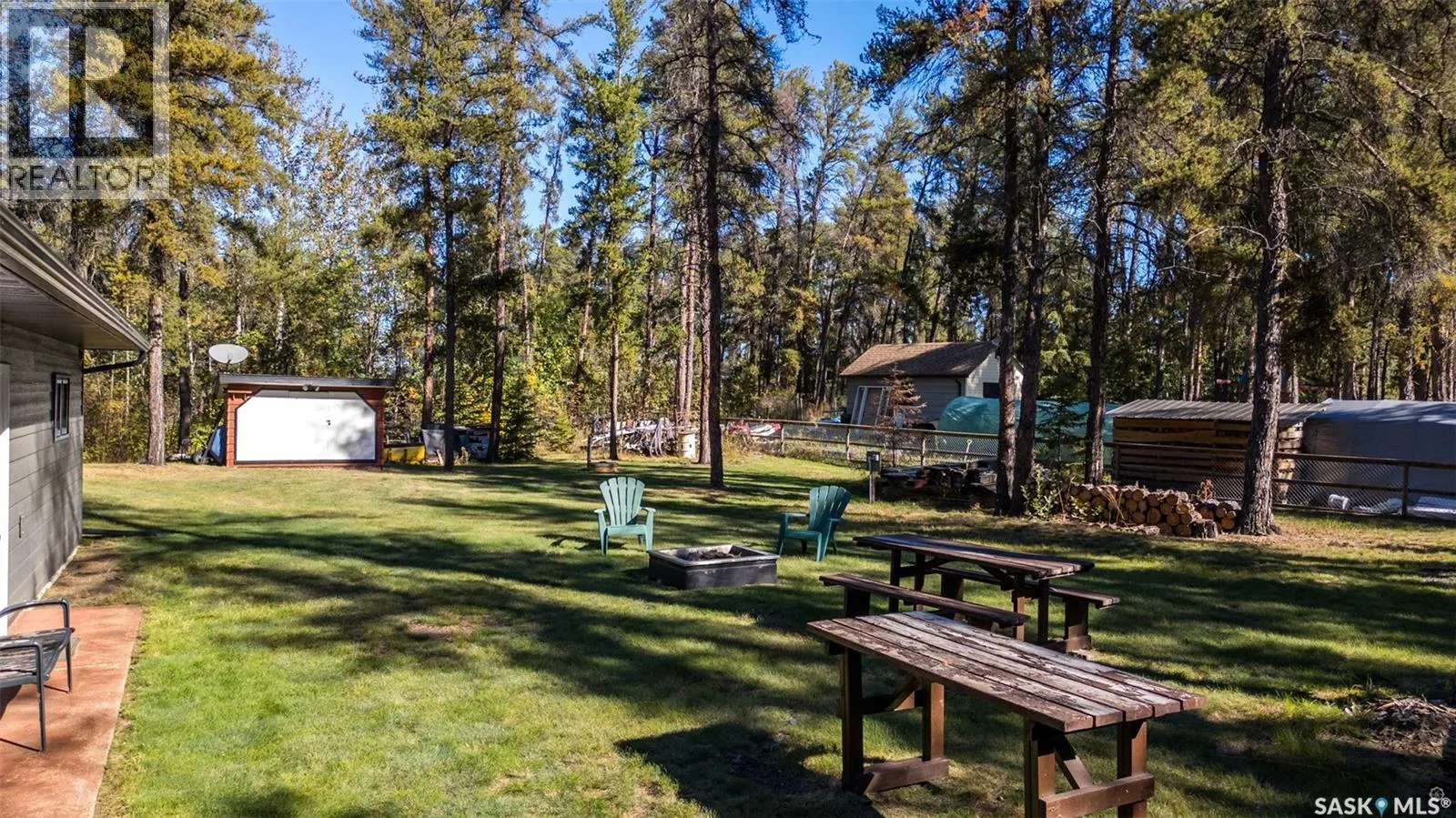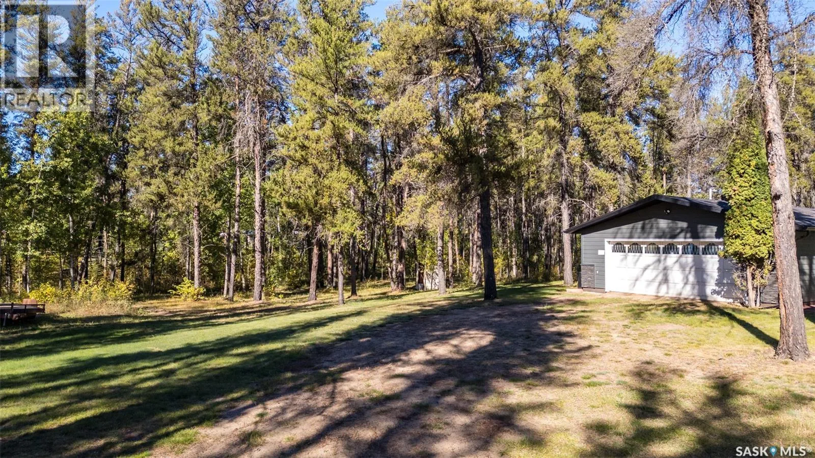 Located just 10 minutes from Prince Albert, this 1.88 acre lot presents a rare opportunity for those looking to build or expand their space. The property is fully fenced and features a heated 26 ft x 32 ft double detached garage, enhanced by an addition that includes a beautifully finished office space, a 2 piece bathroom and a covered patio, ideal for outdoor relaxation. There is also a firepit area that adds to the charm, making it perfect for enjoying evenings with family and friends. Surrounded by 200â300 mature trees, precisely planted throughout the landscape, this property provides both privacy and natural beauty. The water is supplied through a well that is shared with the adjacent property and the sewer system is a septic tank. Located near the North Saskatchewan River and Nisbet Provincial Forest, this lot combines tranquility with convenience. The adjacent property (MLS # SK021149) is also available for sale, offering the potential to purchase both as a package. Donât miss this opportunity to create your own peaceful retreat! (id:27476)