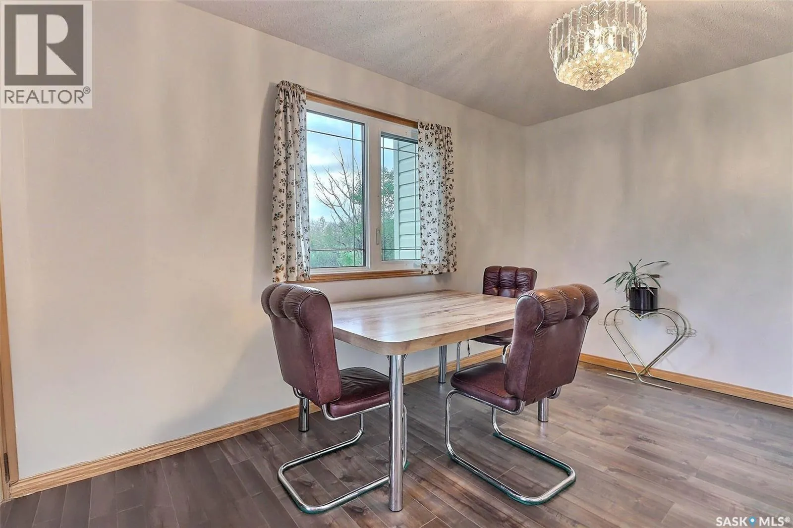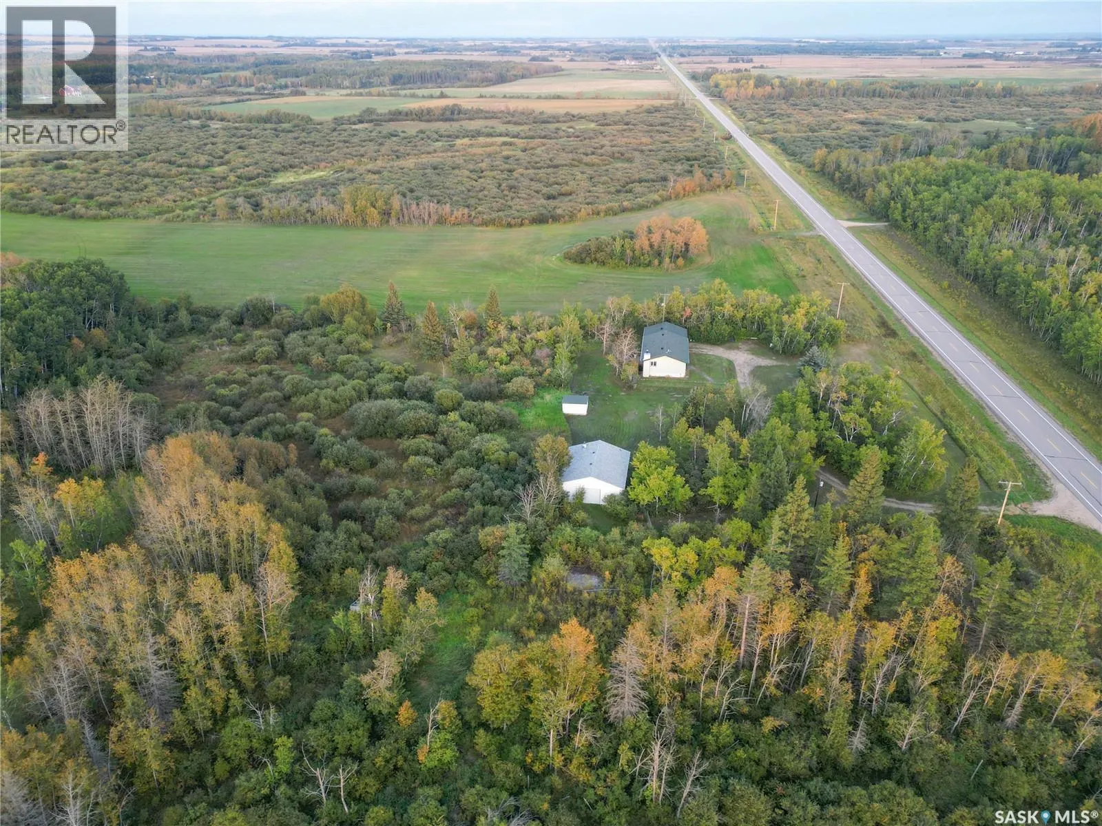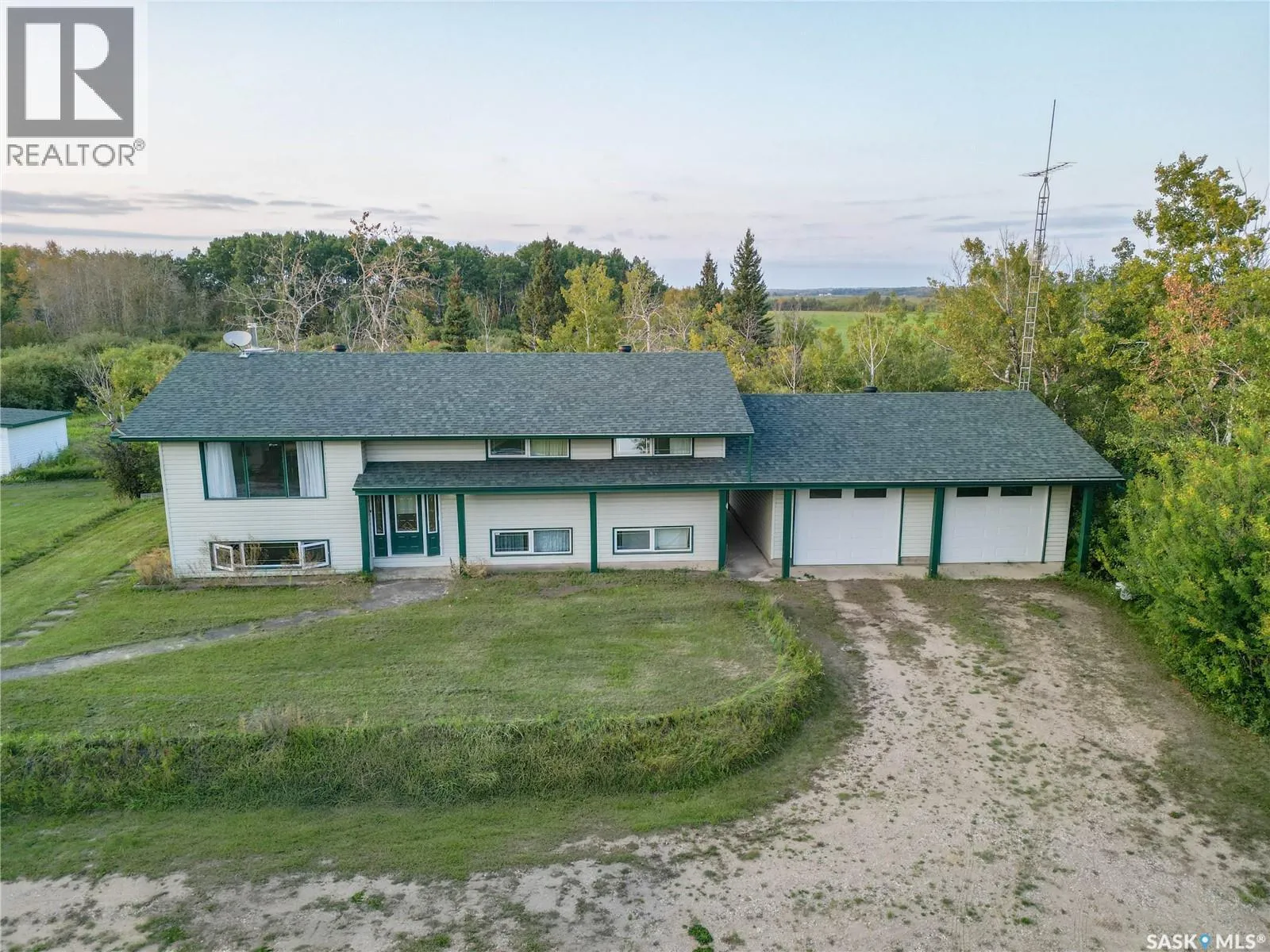 Spacious, functional, and convenient describes this acreage property approximately 15 minutes north of Prince Albert. Paved road to the 1.57-acre yard site, this partially treed property features a large 1376 sq. ft. Bi-Level finished up and down. Updated kitchen with oak cabinets, new light fixtures, hard surface countertop with undermount sink, tiled backsplash and upgraded âMieleâ built in dishwasher. Fridge, Stove also included. L shaped living and dining room with southwest exposure and lots of natural light. Upgraded light fixtures in front foyer and kitchen add to the livability and appeal of this area. 3 spacious bedrooms on the main (note Seller has been advised that currently the window size in these bedrooms does not meet the current legal egress requirements) 2-piece ensuite off the primary bedroom. Large 4-piece bath with Boeing tub completes the upper level. Lower level features a large family room with beautiful wood burning fireplace with oak mantle snuggly placed in the corner across from the bar area. An additional 3-piece bathroom allows for a potential of 2 additional bedrooms which currently are being used as a den and storage room. A large laundry room with newer washer and dryer and a large mudroom area with hard-to-find walkout backdoor from the lower level adds to the functionality of this home. A new furnace was installed in December 2024. A breezeway aids access to the 28â x 28â garage with mechanicâs pit and former heating system. In addition to the spacious garage the property features a 34â x 40â shop with concrete flooring, a newer 10â x 10â overhead door with opener. There is an additional wired uninsulated 10âx10â shed on concrete pad. Seller states shingles on the house, garage, and shop were replaced in 2022. This home has been well maintained, clean and neat and ready for new owners to make it their own. (id:27476)
