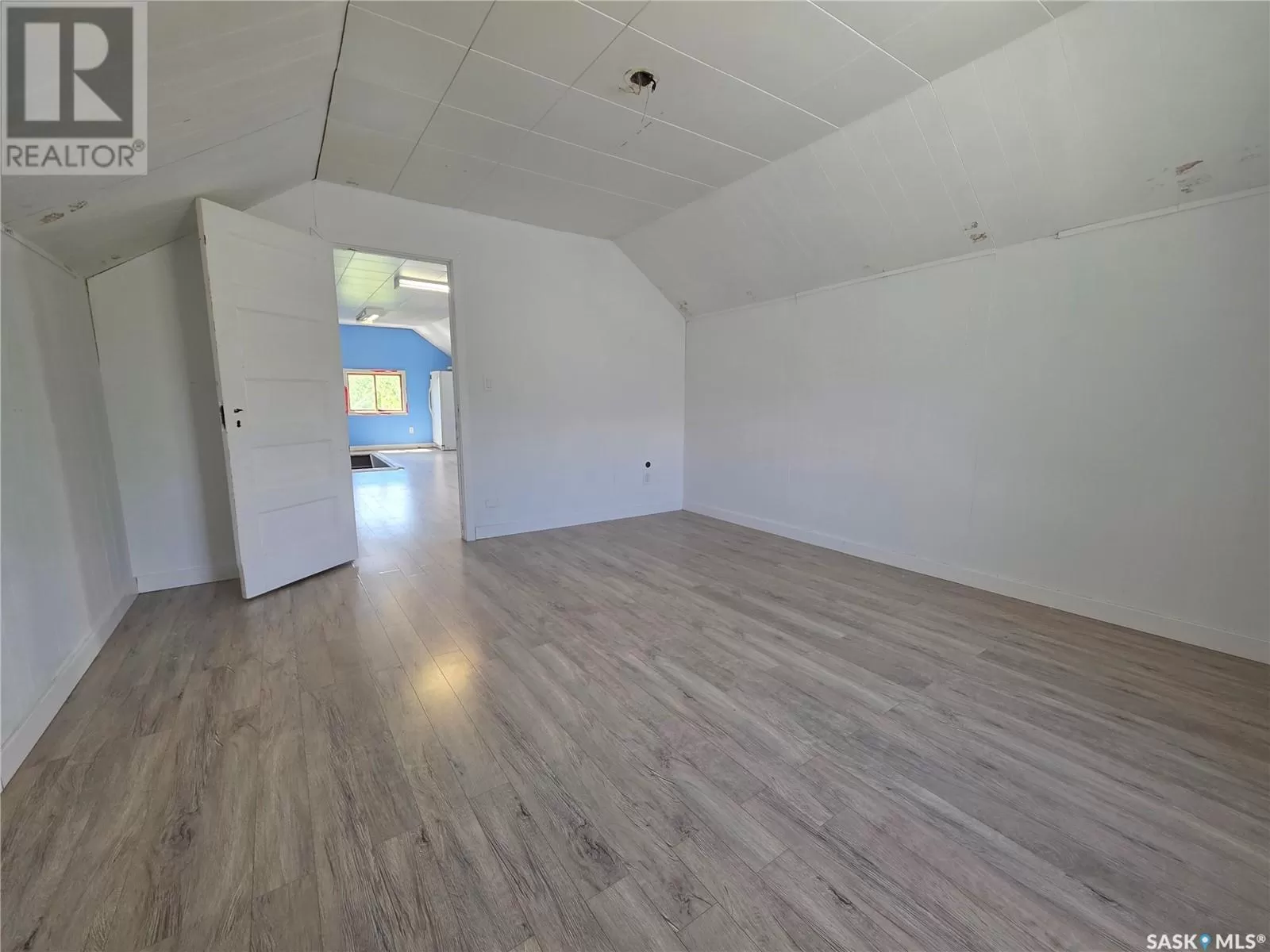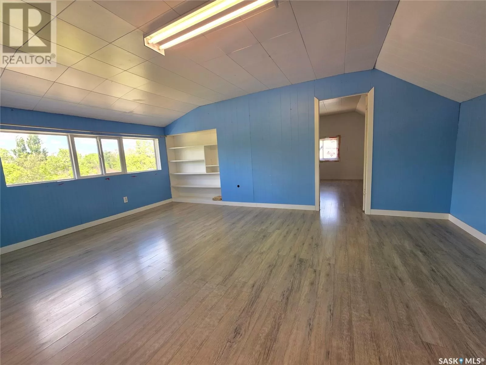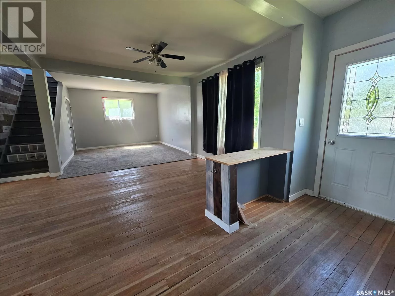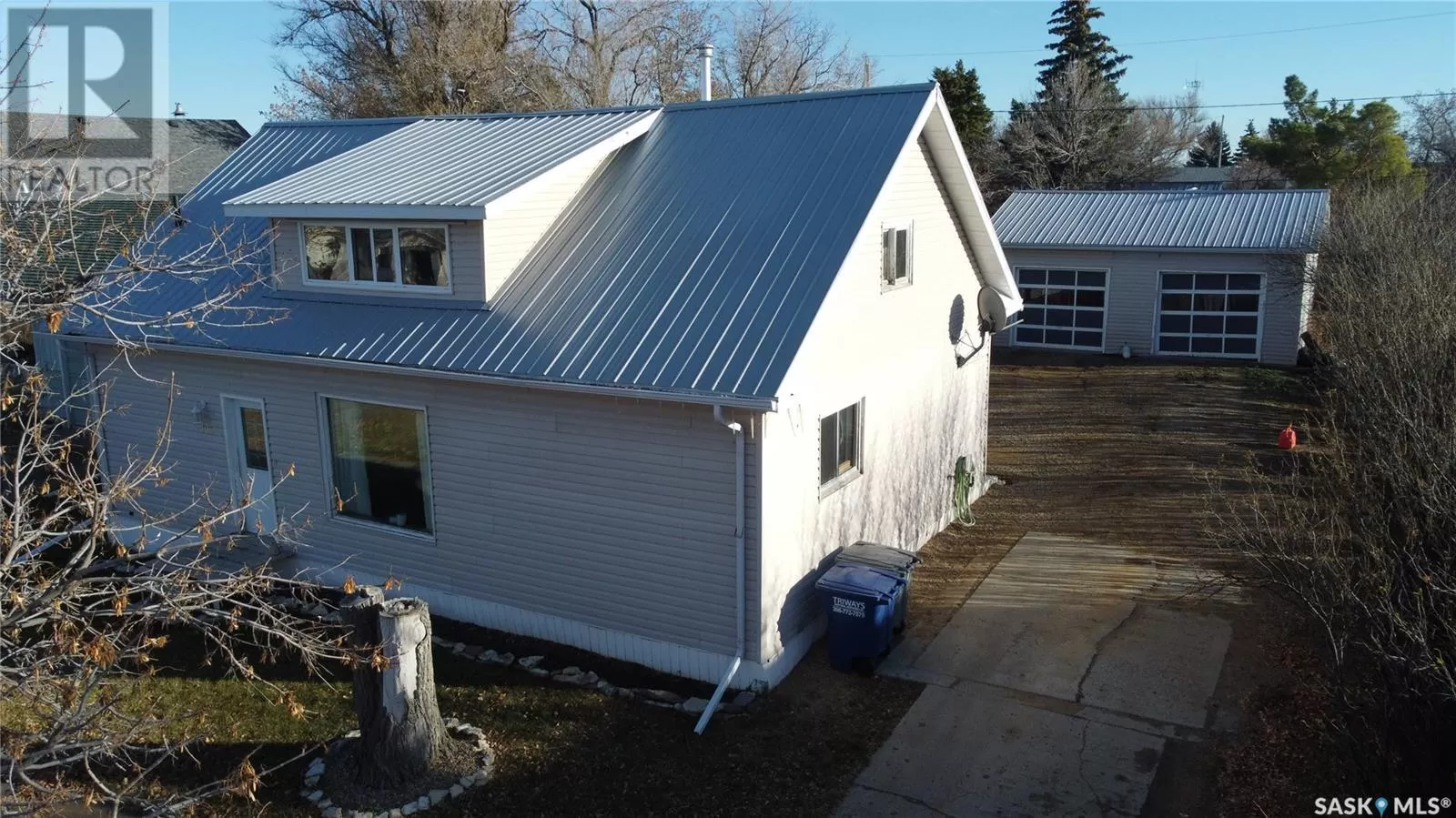Discover the charm of Cabri, a cozy community just 40 minutes from Swift Current, with this one-and-a-half-story home blending charming character with modern updates. Step inside to an open-concept main floor showcasing rustic wood floors, flowing from the entry to the living and dining areas. The dining space features a striking barnwood feature wall and has seamless sightlines to the U-shaped kitchen with ample counter space and oak cupboards. The main floor primary bedroom boasts dual closets framed by a shiplap feature wall, while the four-piece bathroom/laundry room combination wows with a unique vaulted ceiling. Upstairs, is a fantastic feature with a secondary living room area as well as a second bedroom that would be perfect for an older child to have their own space. Outside, youâll find stone walkways, a built-in fire pit, landscaped flower beds, a partially fenced yard, mature trees, and plenty of green space. The double detached garage is mainly insulated but does not have power running to it. The foundation on this house has experienced some failure, so full disclosure that there may need to be some support required. If you have any questions or would like to see this home for yourself, feel free to call your real estate professional. (id:27476)