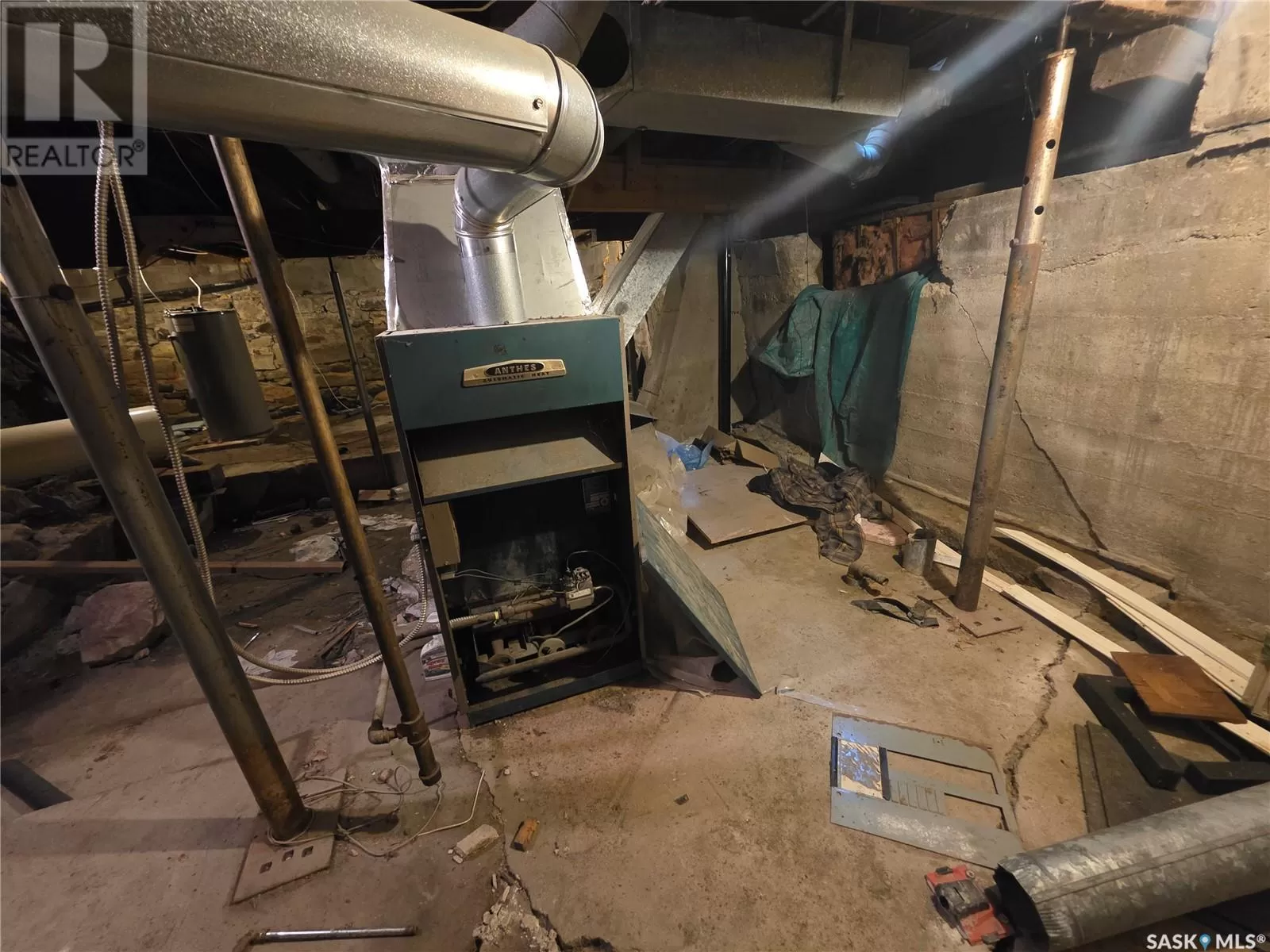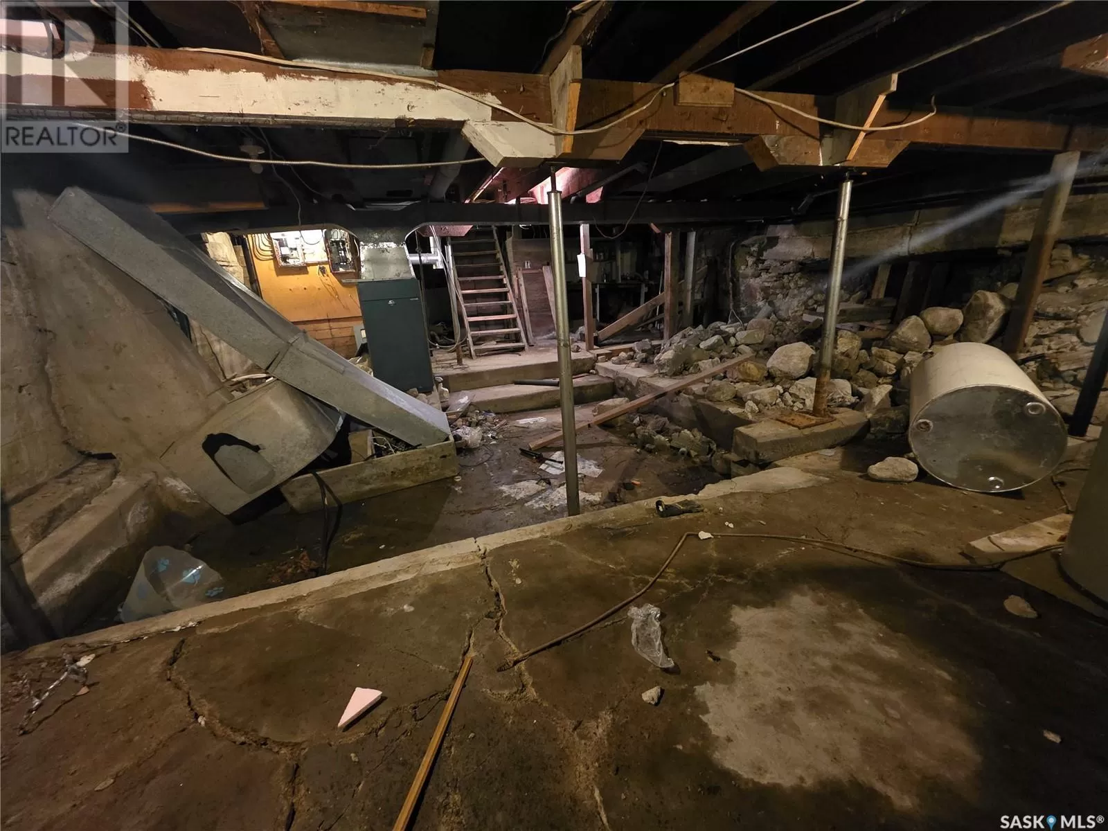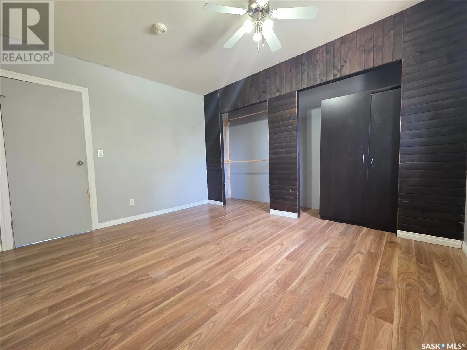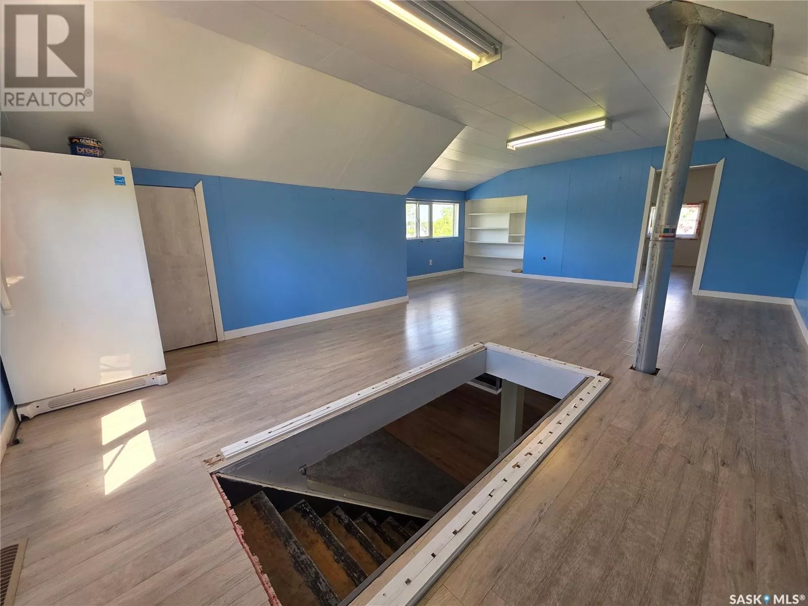 Discover the charm of Cabri, a cozy community just 40 minutes from Swift Current, with this one-and-a-half-story home blending charming character with modern updates. Step inside to an open-concept main floor showcasing rustic wood floors, flowing from the entry to the living and dining areas. The dining space features a striking barnwood feature wall and has seamless sightlines to the U-shaped kitchen with ample counter space and oak cupboards. The main floor primary bedroom boasts dual closets framed by a shiplap feature wall, while the four-piece bathroom/laundry room combination wows with a unique vaulted ceiling. Upstairs, is a fantastic feature with a secondary living room area as well as a second bedroom that would be perfect for an older child to have their own space. Outside, youâll find stone walkways, a built-in fire pit, landscaped flower beds, a partially fenced yard, mature trees, and plenty of green space. The double detached garage is mainly insulated but does not have power running to it. The foundation on this house has experienced some failure, so full disclosure that there may need to be some support required. If you have any questions or would like to see this home for yourself, feel free to call your real estate professional. (id:27476)