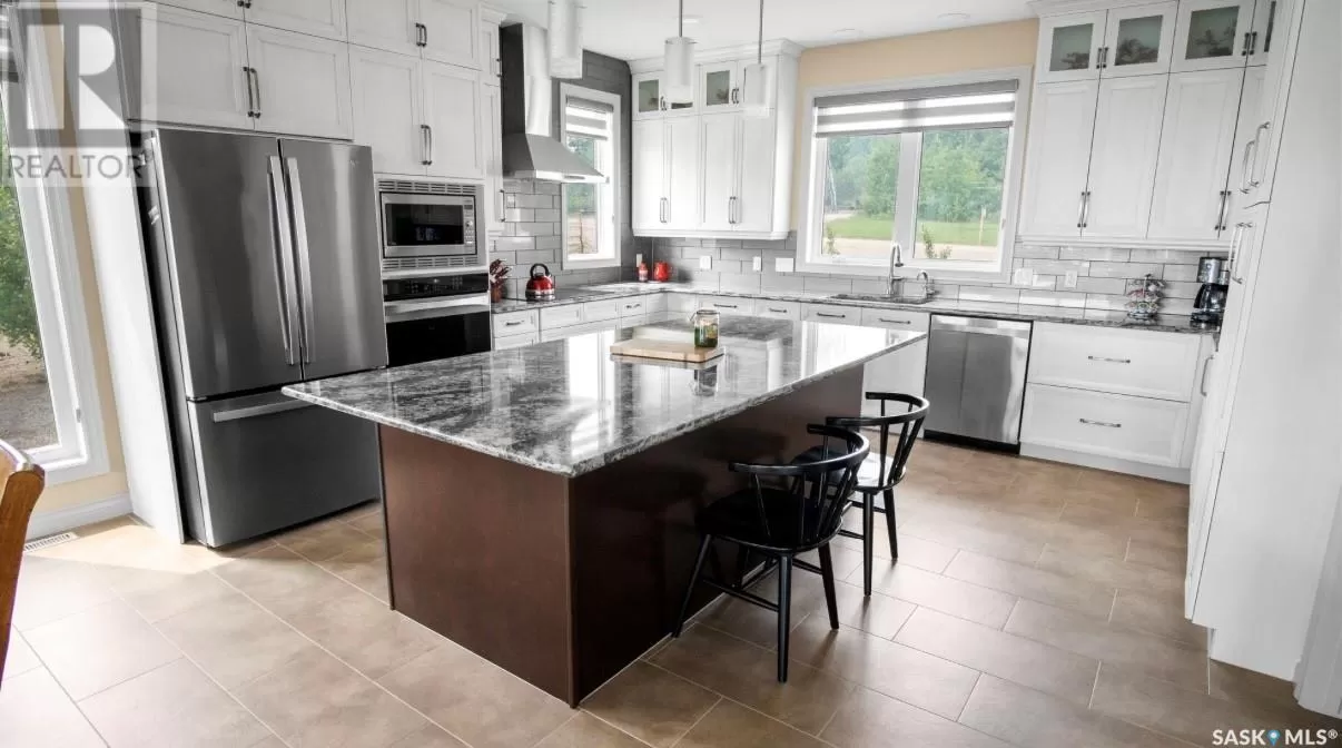 Welcome to your dream lakefront exceptional year-round property. Located at Pelican Landing. This home combines modern elegance with natural beauty, featuring 4 bedrooms, 3 bathrooms, open concept living space. Windows flood the home with natural light and offers a great view of the lake. The primary bedroom offers a 5 peice ensuite bathroom which has the perfect jacuzzi tub to relax in after a long day. The additional bedrooms provide flexibility for family and guests. Enjoy the big recreational room in the basement, great for entertaining guest and family fun nights, basement has a wet bar! You can enjoy the summer evenings from the patio which can be accessed from the walk out basement. Enjoy all the evenings of all the seasons from the sunroom. (SRR) (id:27476)