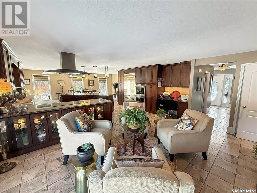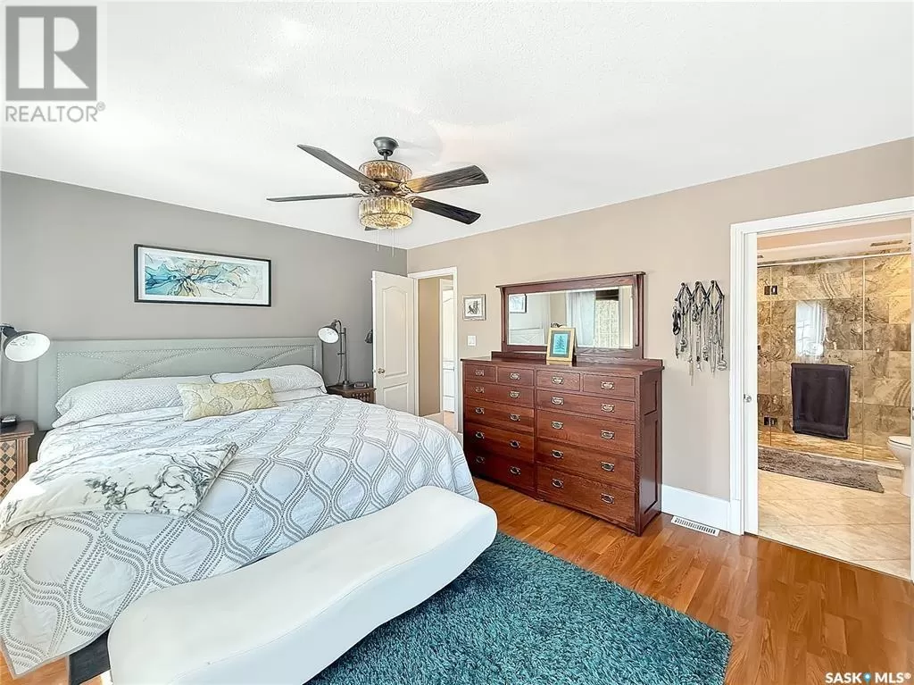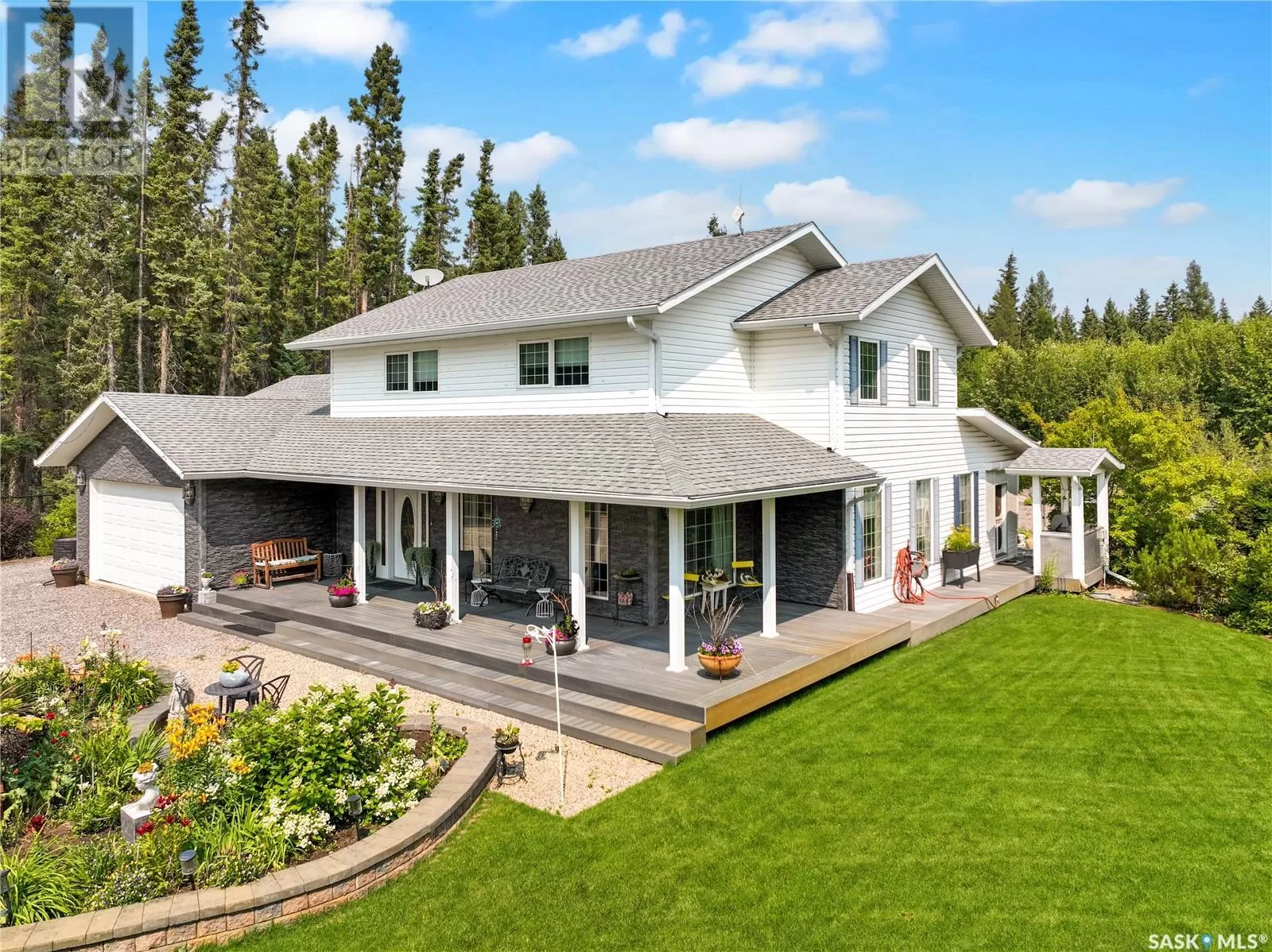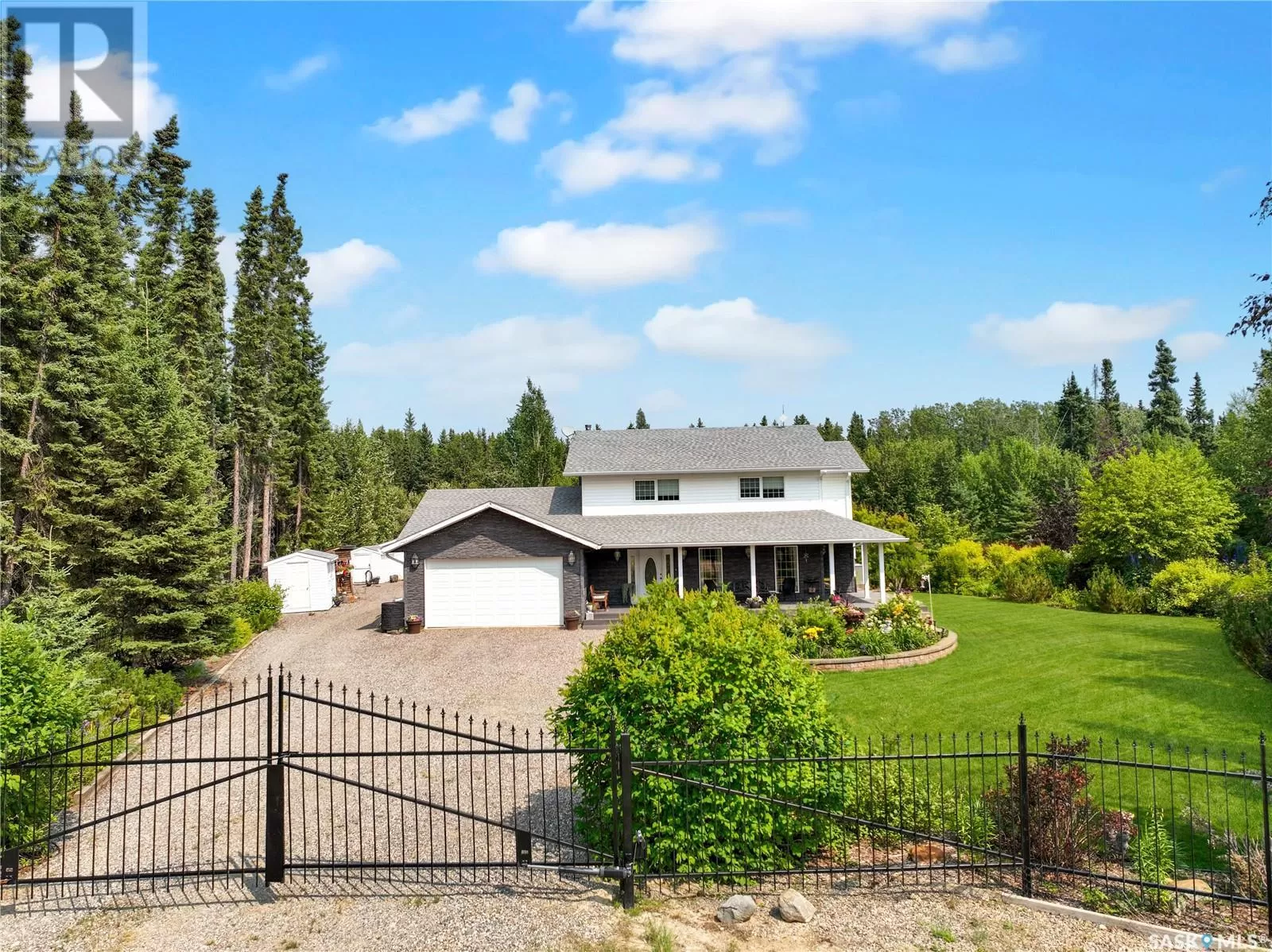 Spotless, Spacious & Spectacular with a Dream Shop + Garden Oasis! 2160sqft, 5 bedrooms, 3 bathrooms, a double attached garage, and a fully equipped 24' x 36' heated shop. Fully fenced, meticulously landscaped, this large ¾ acre pie-shaped lot at the end of a quiet cul-de-sacâoffers the ultimate in privacy and peaceful living. Step inside to an open-concept layout. Heart of the home is stunning maple kitchen with granite countertops, stainless steel appliances, double ovens, oversized fridge, and a massive heated island. Completing the main level are an expansive dining area, a living room, a cozy family sitting area with a wood-burning fireplace, a generous mudroom and a charming three-season space incorporating the wonderful outdoor yard. The second level features four generously sized bedrooms, a dedicated office space, and a well-appointed 4-piece bathroom. The expansive primary suite offers his-and-hers closets and a beautifully updated 3-piece ensuite, complete with a dual rain-head walk-in shower. The attached 2-car garage offers direct home access, while a separate 24x36â heated shop includes a heavy-duty hoist, large upstairs office, and an attached lean-to for additional covered storage. Additional notable features include new shingles, oversized eavestroughs, a Generac generator, fully fences yard, front gate, reverse osmosis system, in-ground sprinklers, newer furnace and air conditioner, a full slab crawl space, private water well, and septic system. Outside, unwind in the high-end hot tub with WiFi, Bluetooth, and a power-lift coverâor explore the showpiece garden filled with a rich variety of flowers, fruit trees, vegetables, and charming sitting areas designed for both privacy and social gatherings. This spectacular property is offered with immediate possession and can be sold fully furnished at a nominal cost. Whether you're seeking a peaceful retreat or an entertainerâs paradise, this could be #yourhappyplace. (id:27476)