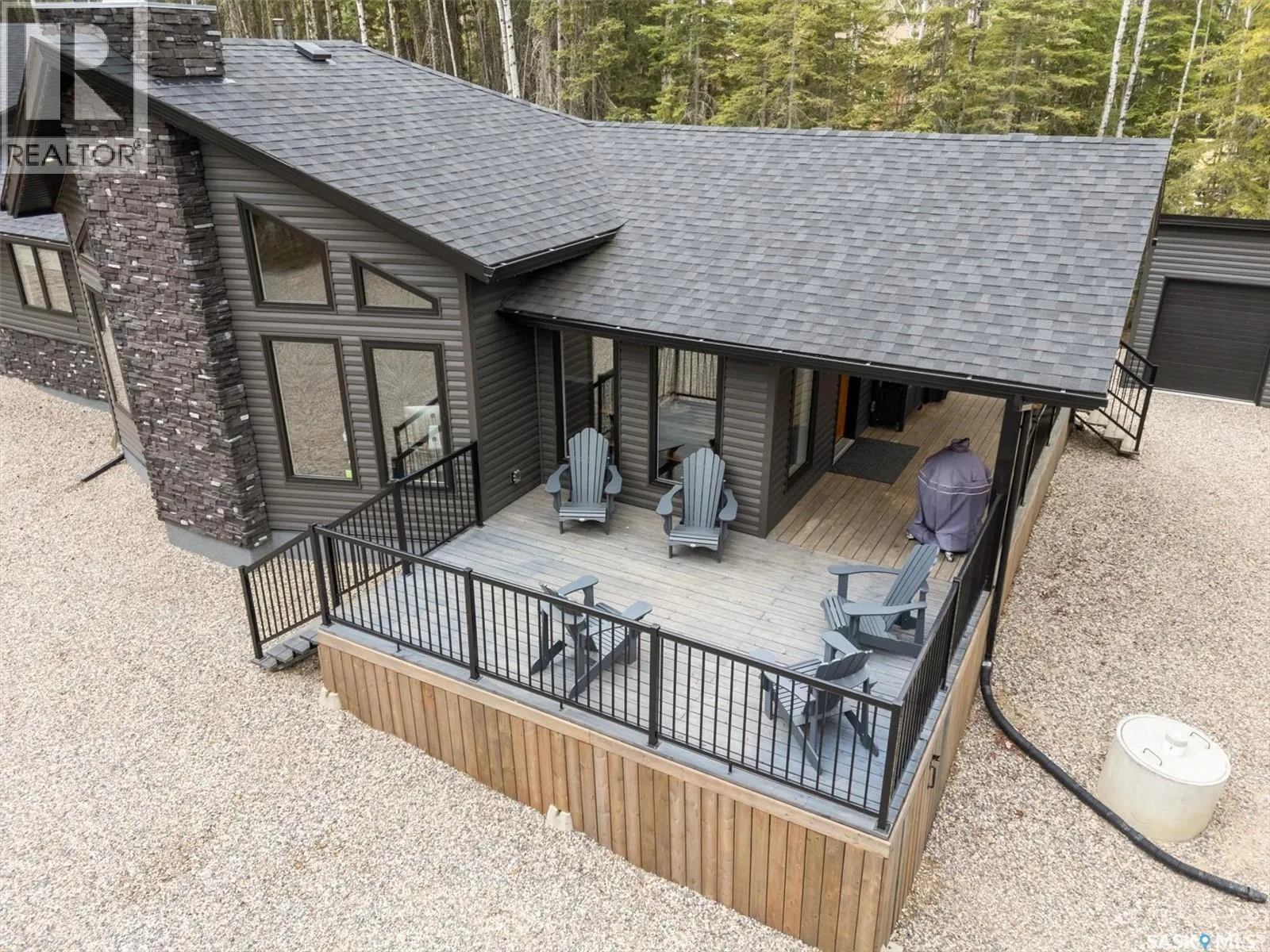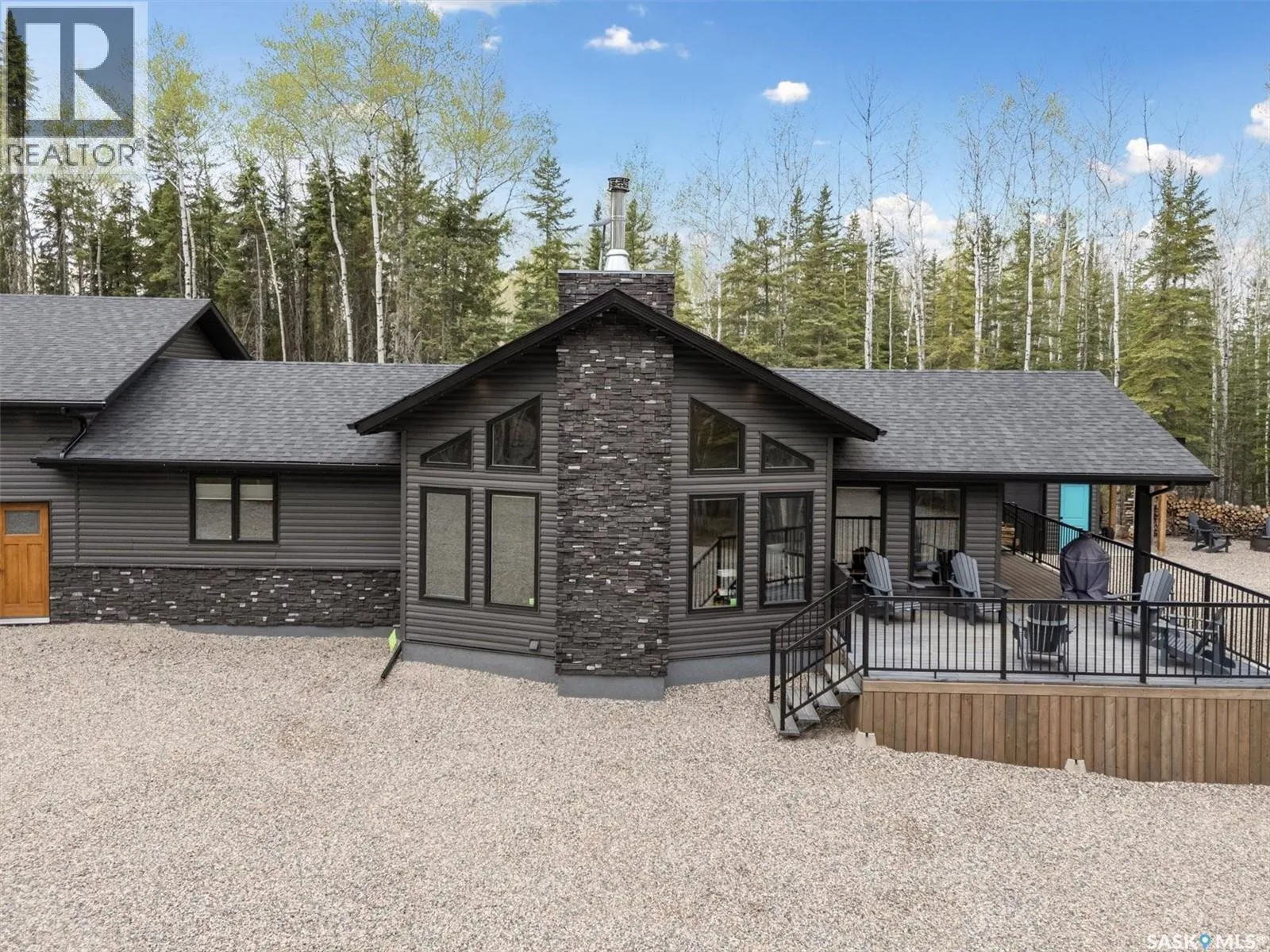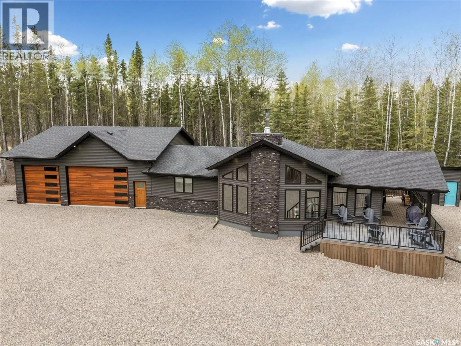 Lot6/Blk3/Plan101930587:Parcel#:163643430 Secluded, Private & Gated Retreat in Aspen Ridge- Candle Lake. Welcome to your year-round sanctuary in the sought-after community of Aspen Ridge. This stunning 3-bed, 3-bath bungalow offers the perfect blend of luxury, and outdoor adventureâon a beautifully treed, private lot backing a 300 acre environmental reserve, w/gated entrance. Step inside and be wowed by the modern shaker-style kitchen, featuring quartz countertops, soft-close cabinetry, gas range, spacious pantry, subway backsplash, and stainless appliances. The open-concept layout flows into an inviting dining area and great room, where vaulted pine ceilings and a striking wood-burning fireplace create the perfect lodge-atmosphere. Floor-to-ceiling windows frame the natural views, flooding the space with light. Vinyl plank flooring runs throughout, home also includes a dedicated laundry room with builtins, a boot room, and two full baths plus 1/2 bath. The Ultimate GarageâMore Than Just Storage: Completed in 2022, the extraordinary 36âx40â gas heated triple garage is truly one of a kind. Designed for both function and fun, this vaulted space incl commercial vinyl plank flooring, a sleek black metal-clad ceiling with pine accents, a cozy wood-burning fireplace, kitchenette, two-piece bath, 2 sumps, and a lounge/games areaâperfect for après-snowmobiling or relaxing summer evenings. Outdoor Entertaining at Its Best: Enjoy your days outdoors in the thoughtfully designed grounds: a huge covered deck, cozy fire pit, outdoor bar hut with metal rollup door/quartz bar top and itâs own deck, fenced garden area, and storage shedâall surrounded by meticulously manicured landscaping and crushed rock for easy maintenance. Additional features include central air, custom top down/bottom up blinds, black hardware, 2 wood burning fireplaces, custom closets, RV parking, 2-1100-gallon water tanks, 1400-gallon septic, gas bbq hookup, security system with video surveillance, composite siding, surrounded by forest. (id:27476)