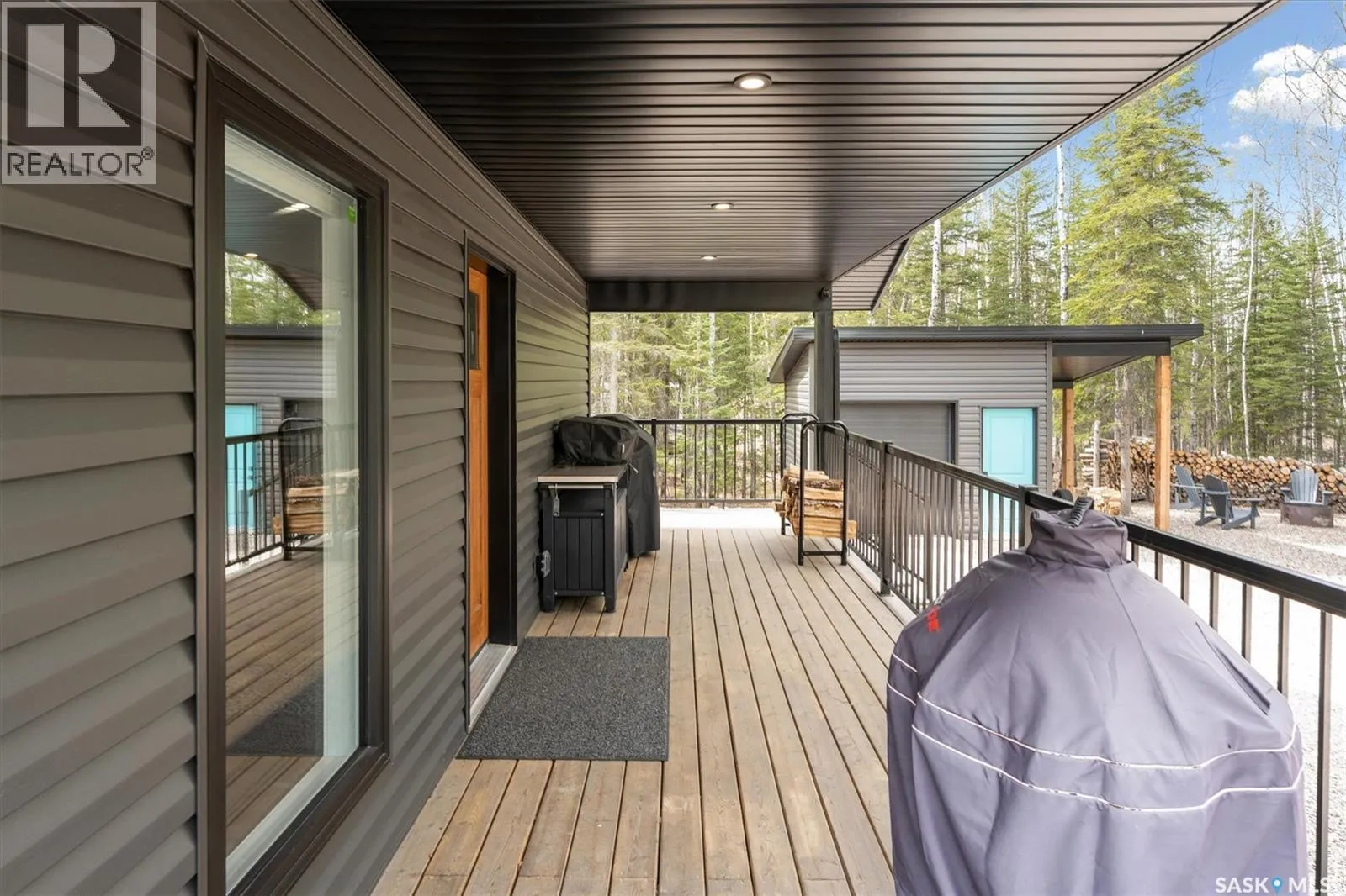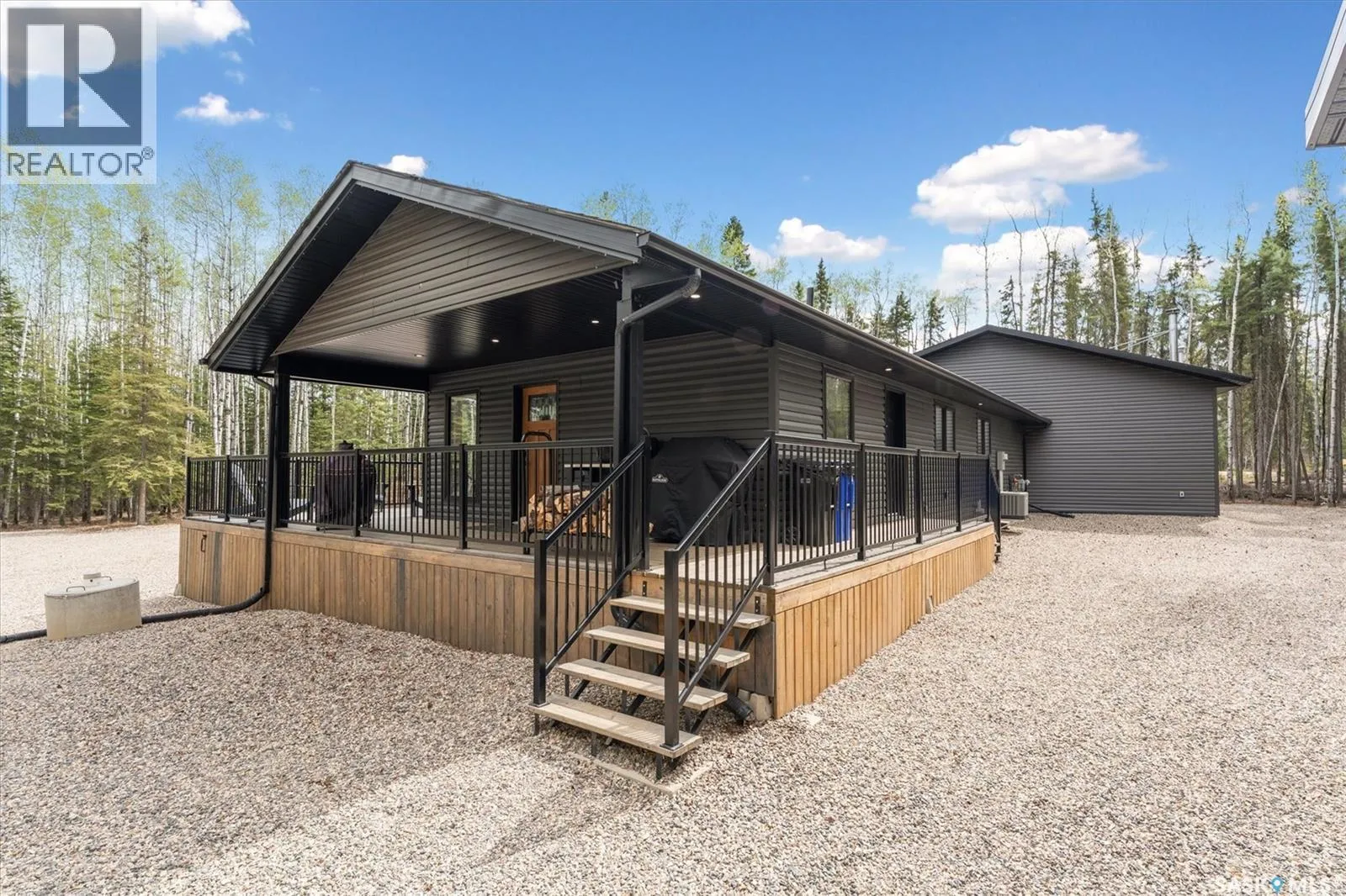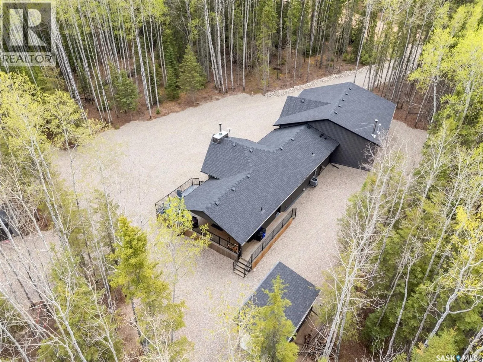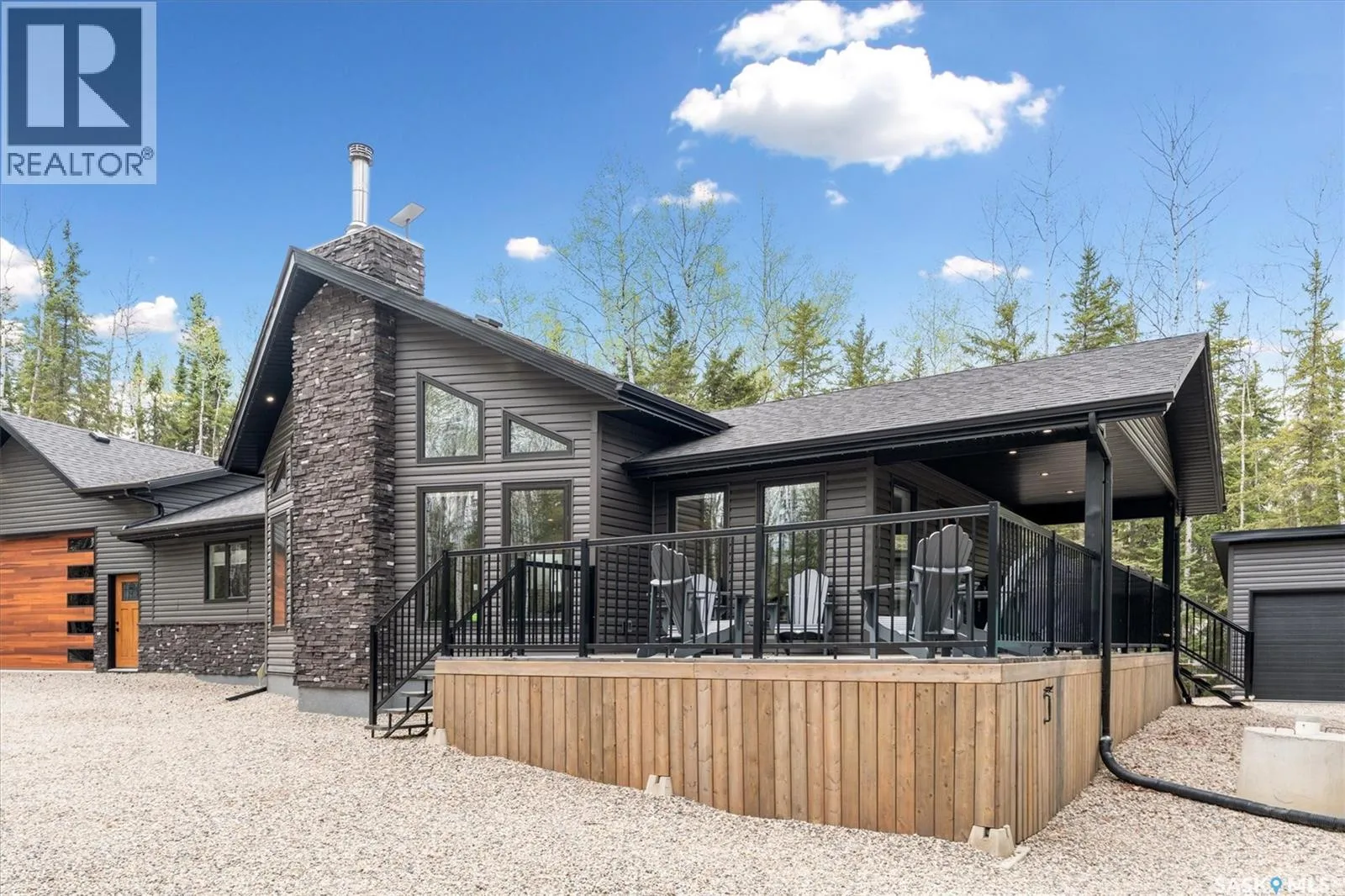 Lot6/Blk3/Plan101930587:Parcel#:163643430 Secluded, Private & Gated Retreat in Aspen Ridge- Candle Lake. Welcome to your year-round sanctuary in the sought-after community of Aspen Ridge. This stunning 3-bed, 3-bath bungalow offers the perfect blend of luxury, and outdoor adventureâon a beautifully treed, private lot backing a 300 acre environmental reserve, w/gated entrance. Step inside and be wowed by the modern shaker-style kitchen, featuring quartz countertops, soft-close cabinetry, gas range, spacious pantry, subway backsplash, and stainless appliances. The open-concept layout flows into an inviting dining area and great room, where vaulted pine ceilings and a striking wood-burning fireplace create the perfect lodge-atmosphere. Floor-to-ceiling windows frame the natural views, flooding the space with light. Vinyl plank flooring runs throughout, home also includes a dedicated laundry room with builtins, a boot room, and two full baths plus 1/2 bath. The Ultimate GarageâMore Than Just Storage: Completed in 2022, the extraordinary 36âx40â gas heated triple garage is truly one of a kind. Designed for both function and fun, this vaulted space incl commercial vinyl plank flooring, a sleek black metal-clad ceiling with pine accents, a cozy wood-burning fireplace, kitchenette, two-piece bath, 2 sumps, and a lounge/games areaâperfect for après-snowmobiling or relaxing summer evenings. Outdoor Entertaining at Its Best: Enjoy your days outdoors in the thoughtfully designed grounds: a huge covered deck, cozy fire pit, outdoor bar hut with metal rollup door/quartz bar top and itâs own deck, fenced garden area, and storage shedâall surrounded by meticulously manicured landscaping and crushed rock for easy maintenance. Additional features include central air, custom top down/bottom up blinds, black hardware, 2 wood burning fireplaces, custom closets, RV parking, 2-1100-gallon water tanks, 1400-gallon septic, gas bbq hookup, security system with video surveillance, composite siding, surrounded by forest. (id:27476)