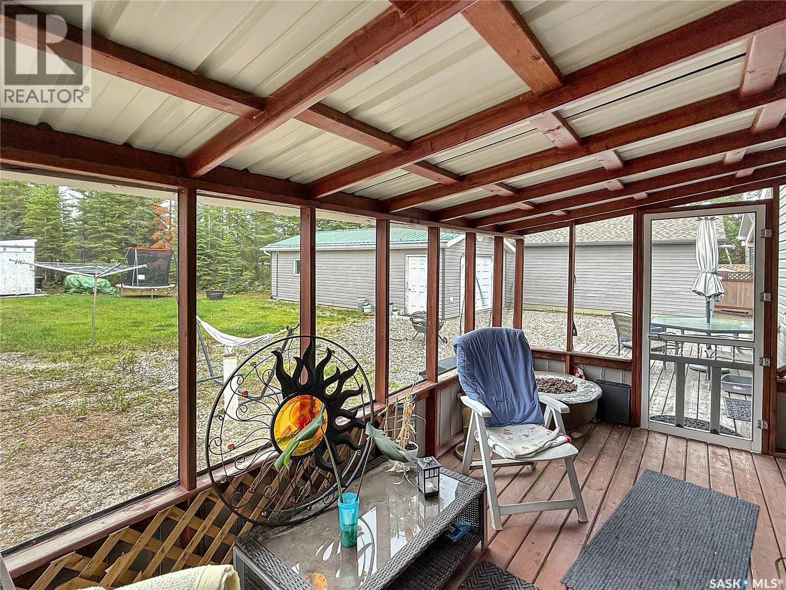Great Location, Great Layout, Great Value. 1008sqft, 3-bedroom, 2-bath cabin is perfectly situated in the heart of Candle Lake, on Andrew Ave, in Aspen Grove. Just steps from the mini golf and store, a short stroll to Waskateena Beach, and on the route to the golf courseâitâs truly a prime spot for enjoying lake life. Solidly built with a bright, airy, and completely open layoutâfilled with natural light and a refreshing, breezy lake feel. Other notable features included oversized 60'x135' lot, covered deck area, wonderful screened in room in the back, fire-pit area, front & back lawn, long gravel driveway, metal roof, NG fireplace, Stackable washer & dryer, Water Softener, Private well and septic, Plus stretch heated detached garage 16'X32'. Recent updates include new siding and eaves (2021) and upgraded crawl space insulation (2024). Quick possession available, Most Furniture can be included. This could be #yourhappyplace. (id:27476)