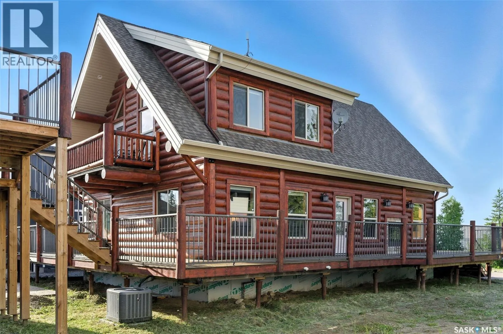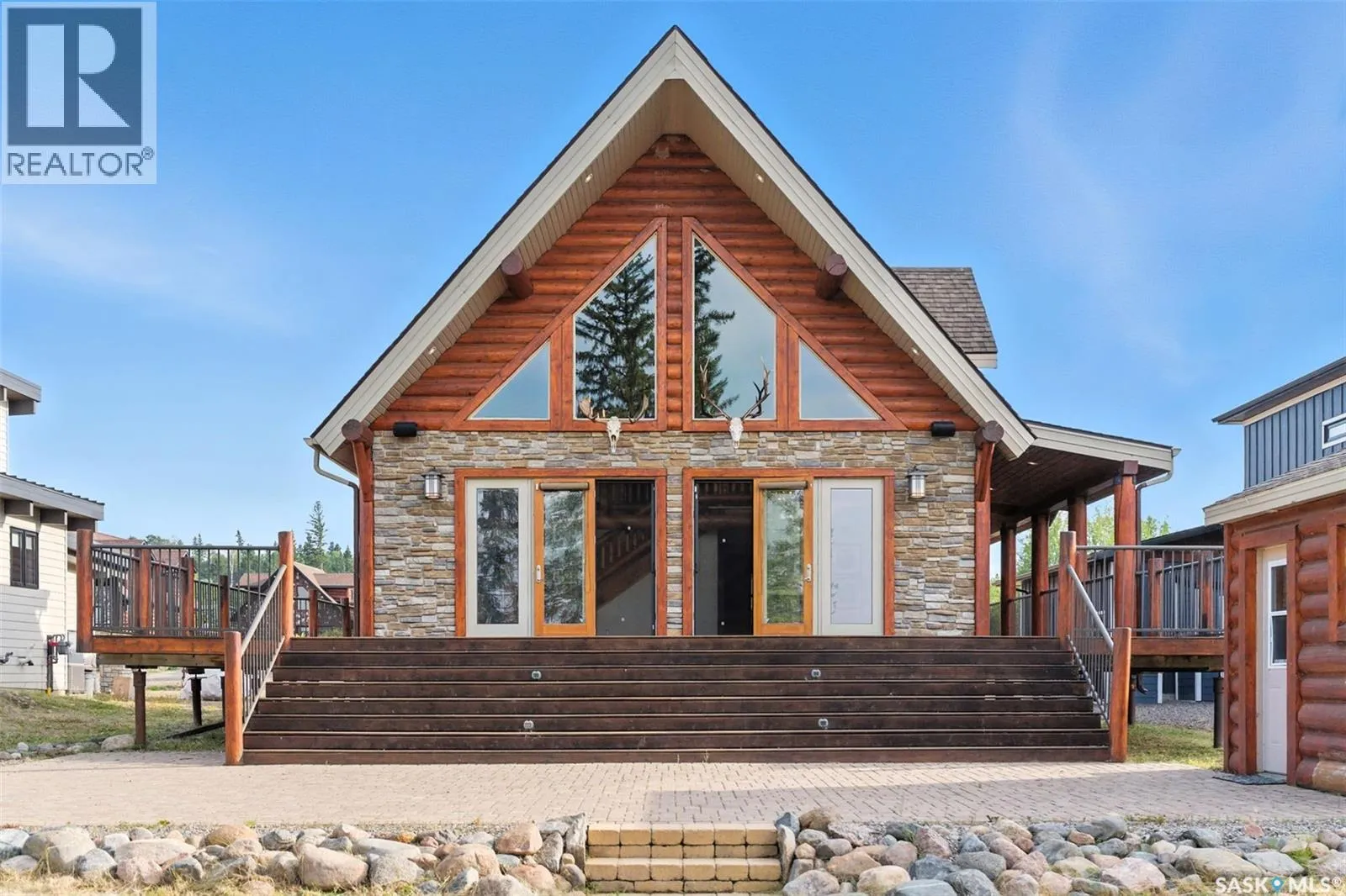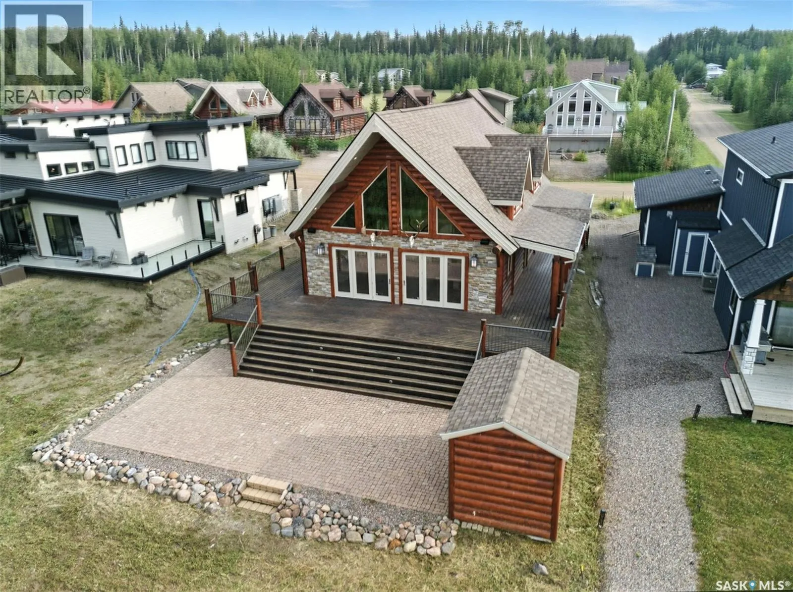 Welcome to 13 Islander Drive, located in the beautiful resort village of Candle Lake. One of Saskatchewan's premier four-season recreation destinations. The community features 350 km of groomed snowmobile trails, with multiple warm-up shacks, as well as numerous hiking and skiing trails, which are amazing for winter activities. In the summer, the lake is perfect for water sports, with white sand beaches and awesome fishing. This cabin is located on a beautiful lakefront lot, all set up for a dock and ready for all your boats and water toys. The Main cabin is designed by Whisper Creek log homes, constructed of genuine peeled log perlins and king posts. The entire property has hand-scraped hardwood floors, and ceilings, as well it has natural stone countertops, bathrooms, walls and floors. The great room has a two-sided gas fireplace, and 25' ceilings with an A-frame that features floor-to-ceiling windows with amazing views of the lake. The second floor is an open concept loft sitting area, with a private bedroom and washroom. The double garage is gas-heated and has a private suite above with 2 bedrooms, a washroom, and a living room with a kitchenette. There is also a detached bunkhouse with air conditioning, for extra sleeping, or for storage. For more information regarding this beautiful property, please contact me. (id:27476)
