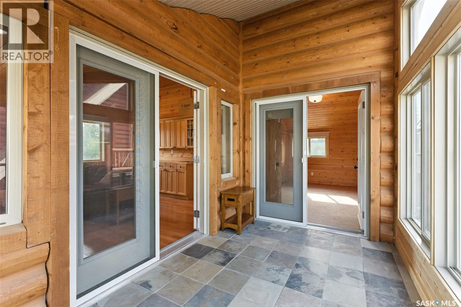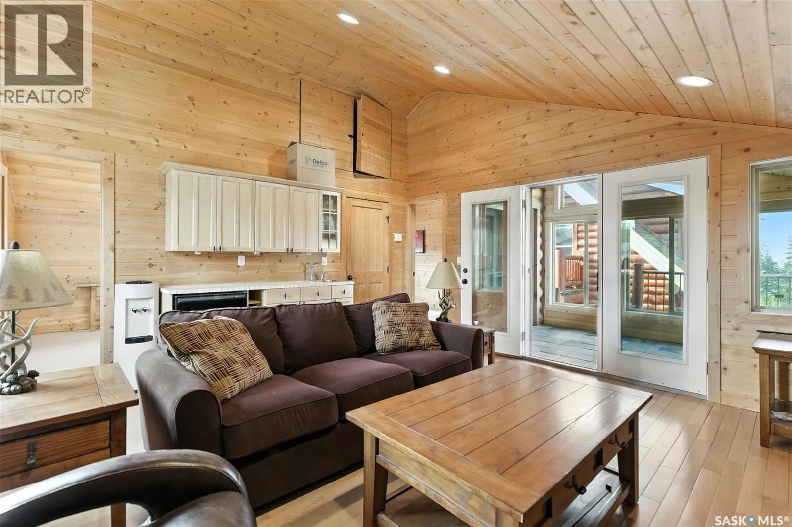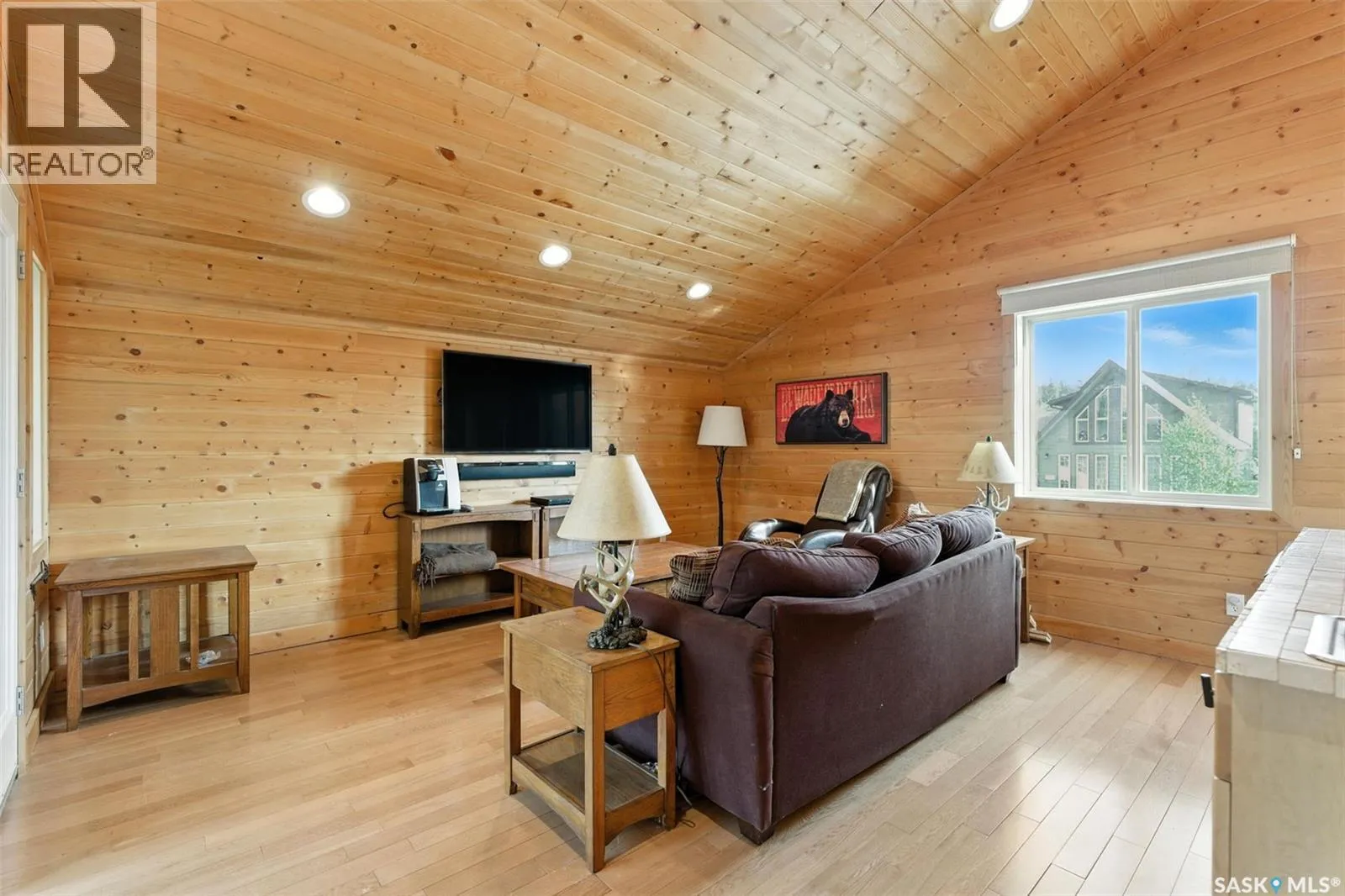 Welcome to 13 Islander Drive, located in the beautiful resort village of Candle Lake. One of Saskatchewan's premier four-season recreation destinations. The community features 350 km of groomed snowmobile trails, with multiple warm-up shacks, as well as numerous hiking and skiing trails, which are amazing for winter activities. In the summer, the lake is perfect for water sports, with white sand beaches and awesome fishing. This cabin is located on a beautiful lakefront lot, all set up for a dock and ready for all your boats and water toys. The Main cabin is designed by Whisper Creek log homes, constructed of genuine peeled log perlins and king posts. The entire property has hand-scraped hardwood floors, and ceilings, as well it has natural stone countertops, bathrooms, walls and floors. The great room has a two-sided gas fireplace, and 25' ceilings with an A-frame that features floor-to-ceiling windows with amazing views of the lake. The second floor is an open concept loft sitting area, with a private bedroom and washroom. The double garage is gas-heated and has a private suite above with 2 bedrooms, a washroom, and a living room with a kitchenette. There is also a detached bunkhouse with air conditioning, for extra sleeping, or for storage. For more information regarding this beautiful property, please contact me. (id:27476)