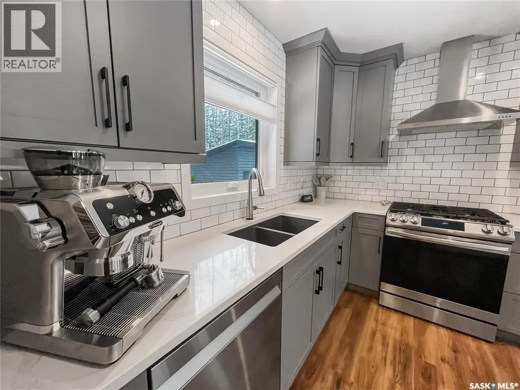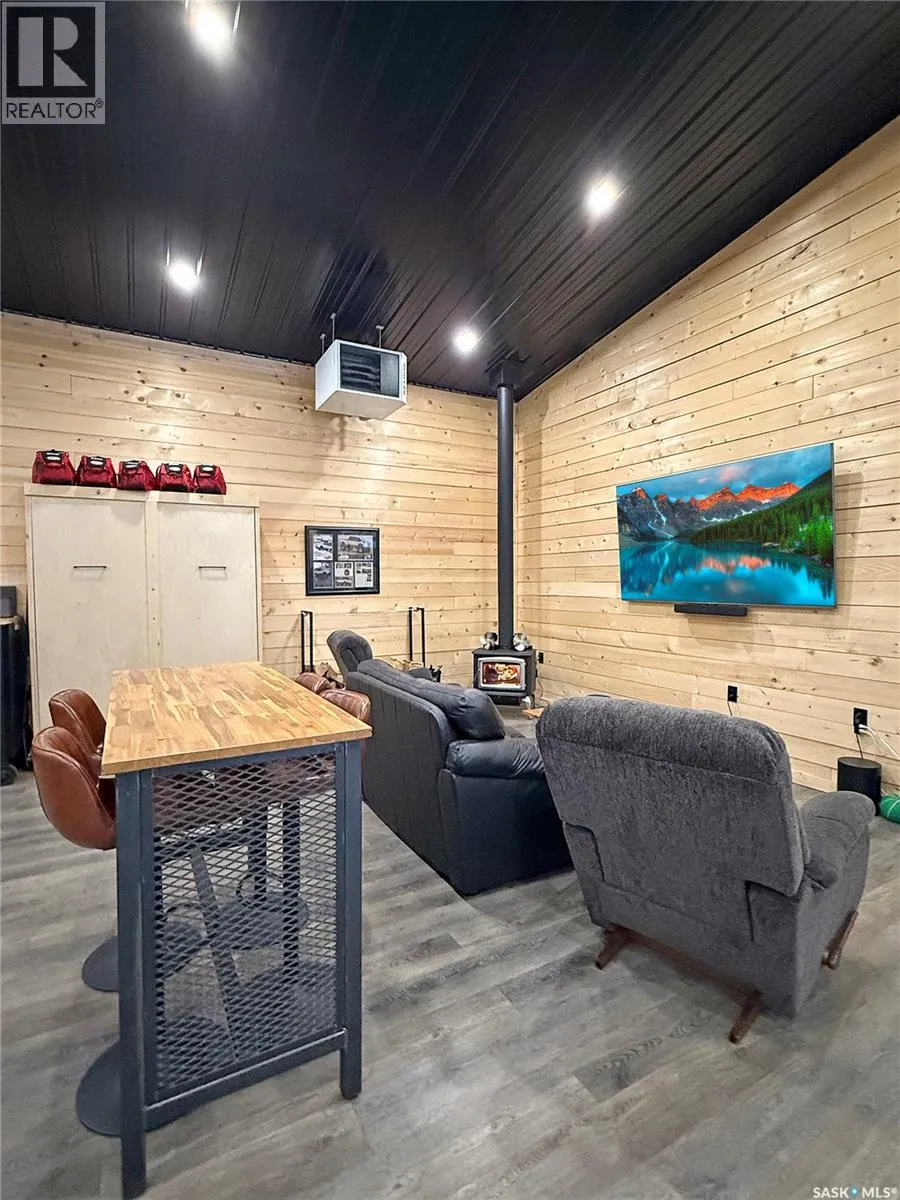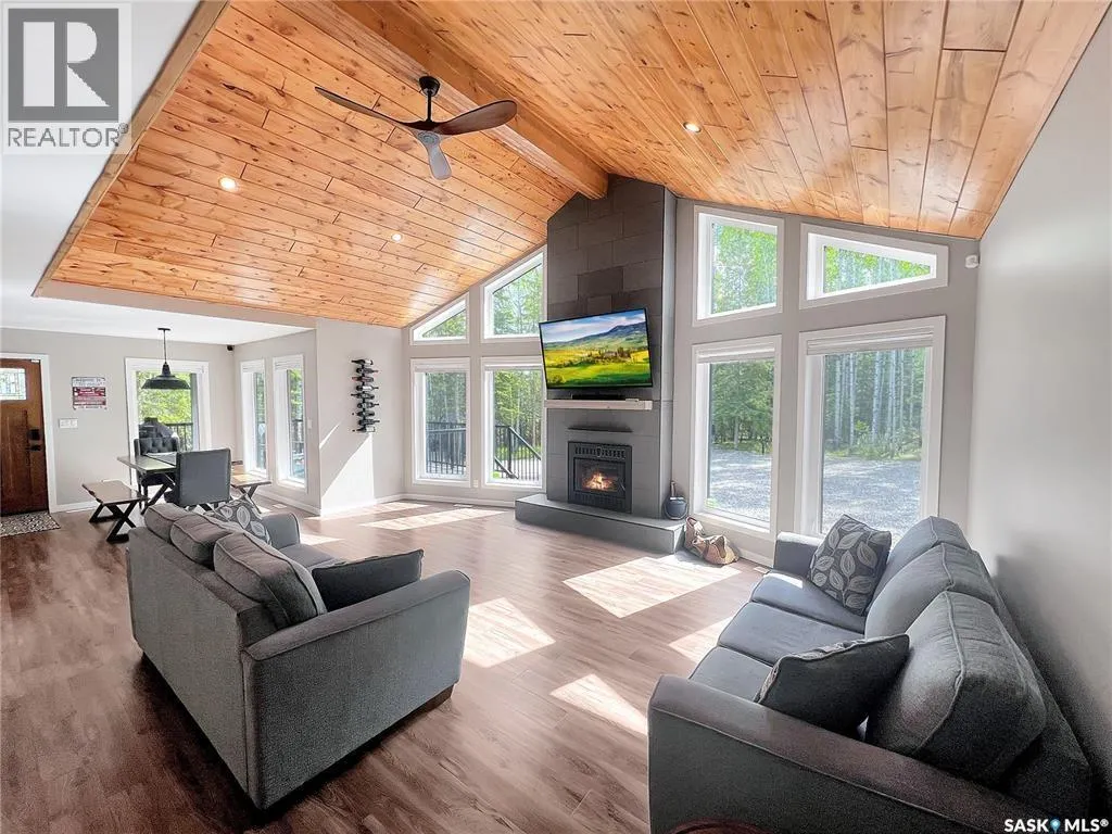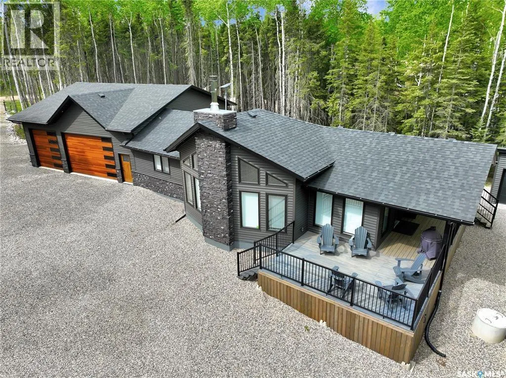 Private & secluded with the Ultimate Garage!!! This well-crafted bungalow provides a calm, secluded escape from everyday noise. Located on 1.32acre landscaped yard, this home offers 3 bedrooms, a full bathroom, and an impressive 36' x 40' triple attached garage. The home has an open floor plan with a well thought out kitchen featuring, quartz counter tops, soft close cabinets, gas range, and large pantry. Large windows flood the spacious living and dining room with an abundance of natural light. The stunning living room boasts a wood fireplace with a stone backdrop, complemented by a vaulted pine ceiling. Two additional nice sized bedrooms & fresh 4pc bathroom. The generously sized master bedroom features a convenient walk-through closet leading to a private 3-piece ensuite. Main floor laundry and mudroom. The stunning garage, completed in 2022, spans an impressive 36'X40' and boasts a hutch bed perfect for hosting extra company, 2-piece bathroom, wood fireplace, bar table & chairs, fridge, and counter area-all heated by a Natural Gas furnace. Finished with vinyl plank flooring throughout, a sleek black metal ceiling, and pine finishing touches, it epitomizes the ultimate man cave experience. Other notable features include: turn-Key, video surveillance, a delightful outdoor space complete with sheds, fenced garden area, an awesome outside bar, with roll up door, cover deck area & quartz bar table all with access to fire pit area with ample firewood, 2 electrified RV sites for company, a covered deck, central air-conditioning, 2X1100 gallon water tanks, 1400gallon septic and a gated driveway ensuring security and privacy. Explore hiking trails, go wildlife watching, or simply unwind in the tranquility of the forest. Don't miss out on this incredible opportunity to own a piece of Candle Lake paradise. (id:27476)