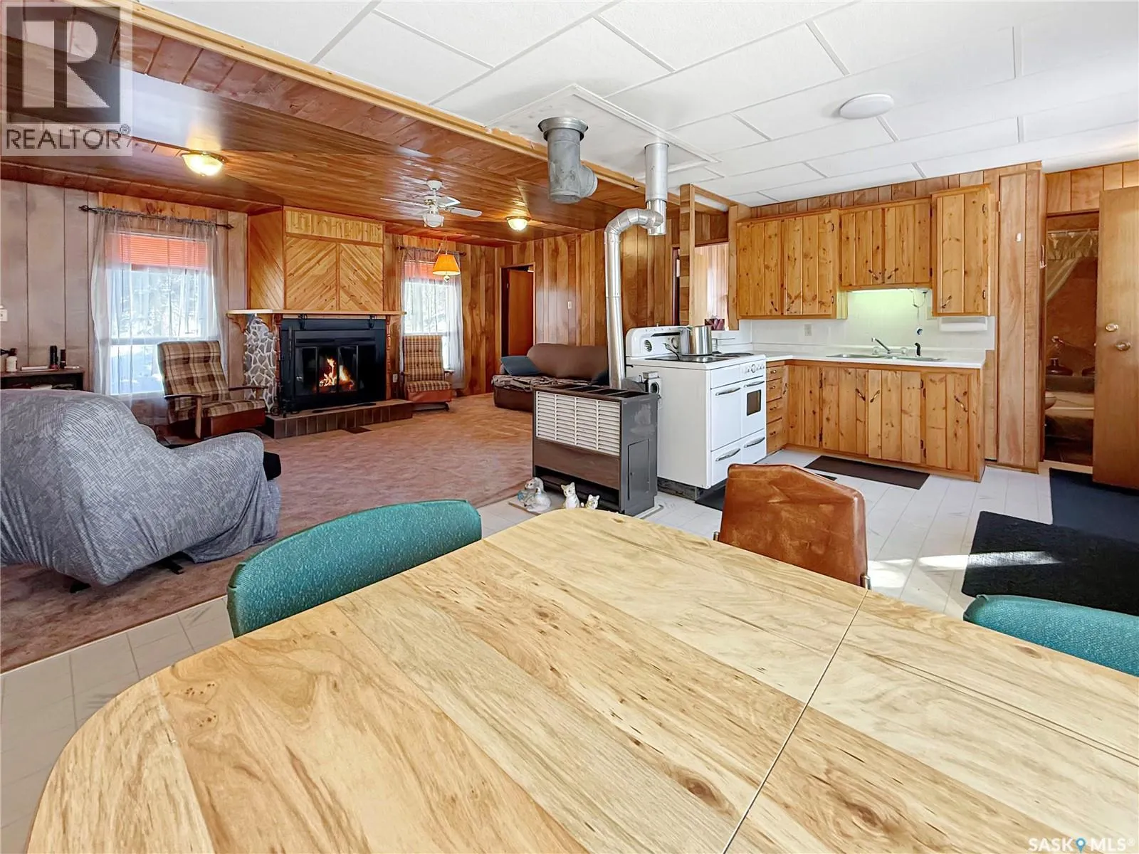 Space, comfort, and that perfect cabin vibe. This 1,274sqft 5-bedroom, 2-level getaway offers a functional open layout with 2 bedrooms and a full bath on the main floor, plus a bright open combined kitchen, dining, and living area providing tons of room for the whole family. A cozy wood fireplace and natural gas heat make it comfortable year-round. Upstairs, 3 oversized bedrooms provide plenty of room for extra beds and guests. Outside, enjoy a 75â x 120â lot, low-maintenance yard, drive-through attached garage, bunkhouse, firepit area, and additional storage. Heats on all winter, Private well and septic system already in place. (Have to add heat tape and insulation to water well to make completely 4 season) Move-in ready, fully furnished, fire-pit is stocked with wood. Tons of Value at this price point. This could be #yourhappyplace (id:27476)