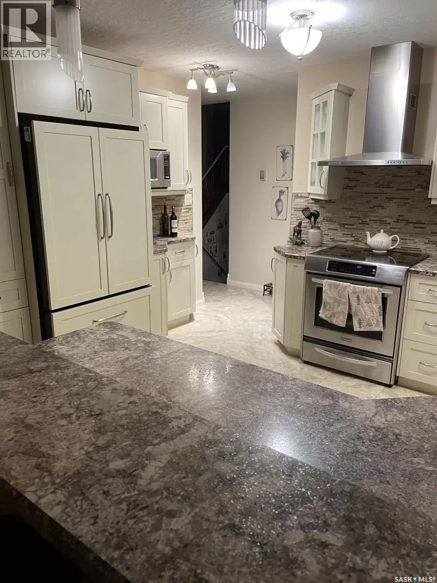 This beautiful split-level home is located on a mature, tree lined crescent in Canora, SK. This home is move in ready with many upgrades. The most recent upgrades include new asphalt shingles in 2022 and a stunning privacy fence that was built in 2022. Upon entry of the house one will immediately notice a spacious living room with bamboo floors. Open to the living room is a well sized dining room which is adjacent to the upgraded kitchen. The 2nd floor has 3 bedrooms and a 4-piece bathroom with a jacuzzi tub and double vanity. The lower level (3rd) consists of a large recreation room with built in shelving, additional bedroom and updated 3-piece bathroom. The basement is unfinished with ample storage space. The house has central air and a 20Ã24 attached garage. The yard is landscaped with yard space, large garden, patio area and deck with a gazebo that was installed in 2022. Give us a call for more details! (id:27476)