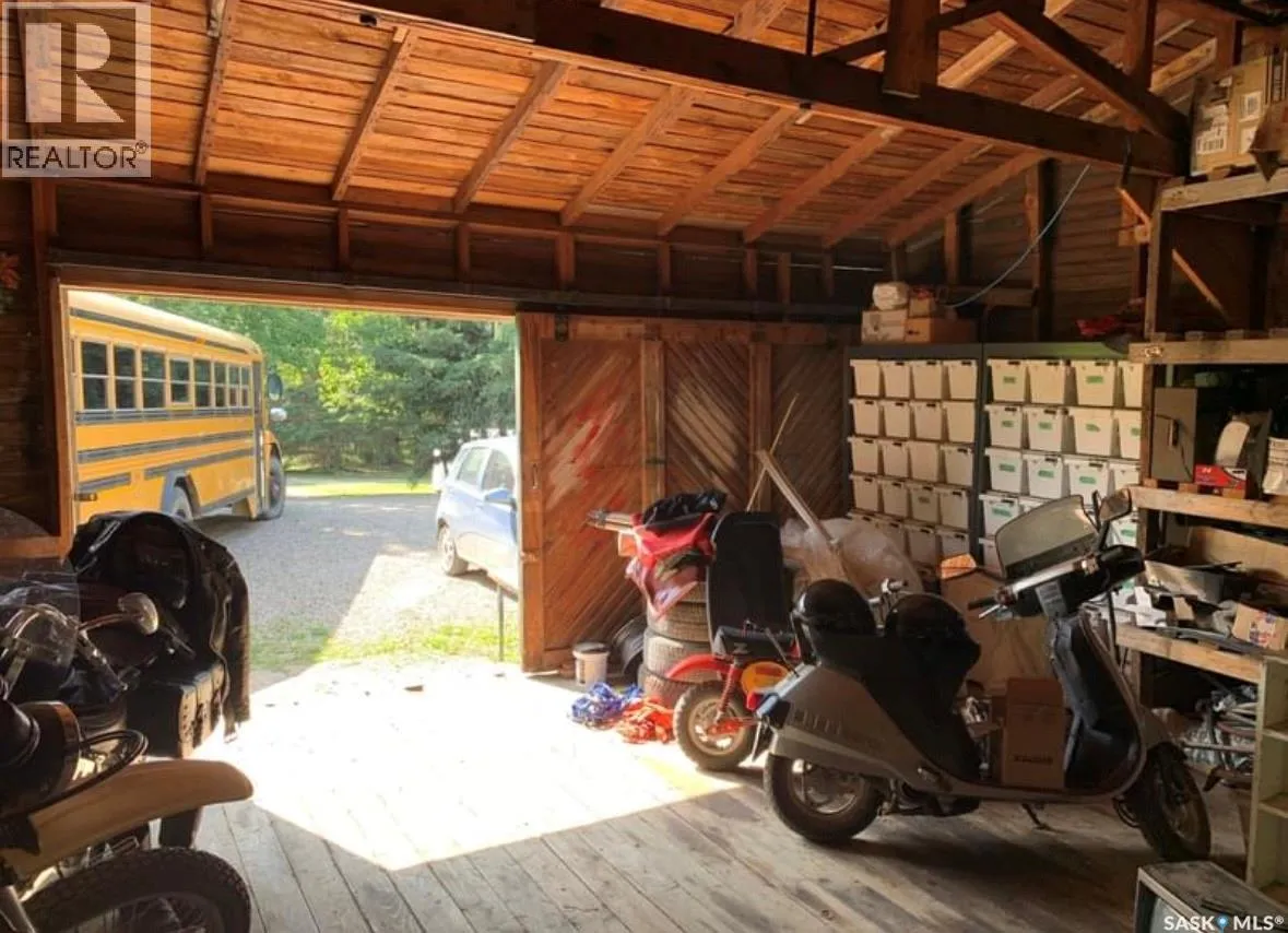 14 kms south of Big River first right after the clearwater greenhouses Beautiful 3 bedroom 2 bathroom 1332 sqft home on 2 levels is tucked in the beautiful Boreal Forest, located just south of Big River. The home is a bungalow lay out with a walk out lower level entrance as well as an upper floor entrance from a sizeable deck. There is an attached, screened in 11.6 x 14.6 sunroom, which adds lots of extra space for entertaining or just enjoying the back yard view. Upstairs you will find a living room, kitchen, dining area and half bath. Kitchen boasts a large pantry, stainless steel appliances and plenty of light. New flooring and paint throughout, and upstairs bath completely re done. A unique spiral staircase takes you to the three bedrooms, laundry area, main bath and storage room. The property is just under one acre in size and is absolutely beautifully landscaped with a private park like setting. The yard has four sheds to store all your items and toys, a garden, large green house, raspberry patch, apple trees, fire pit are and lots of really nice landscaping and rock work. The yard has lots of perennials, trees and shrubs making is breathtakingly beautiful to be able to sit outside and enjoy. The property is located just a few minutes south of Carrier lumber, the ski hill and 12 mins from the town of Big River. Enjoy quadding, dirt biking, skidooing right from your yard with numerous trails near by (id:27476)