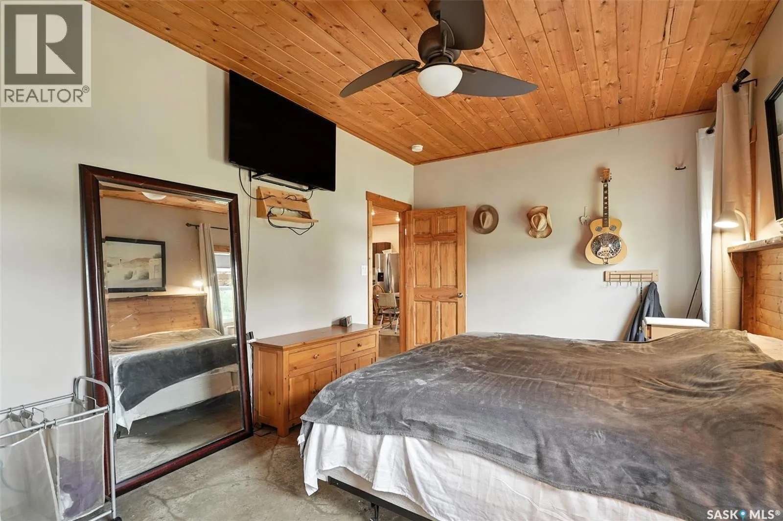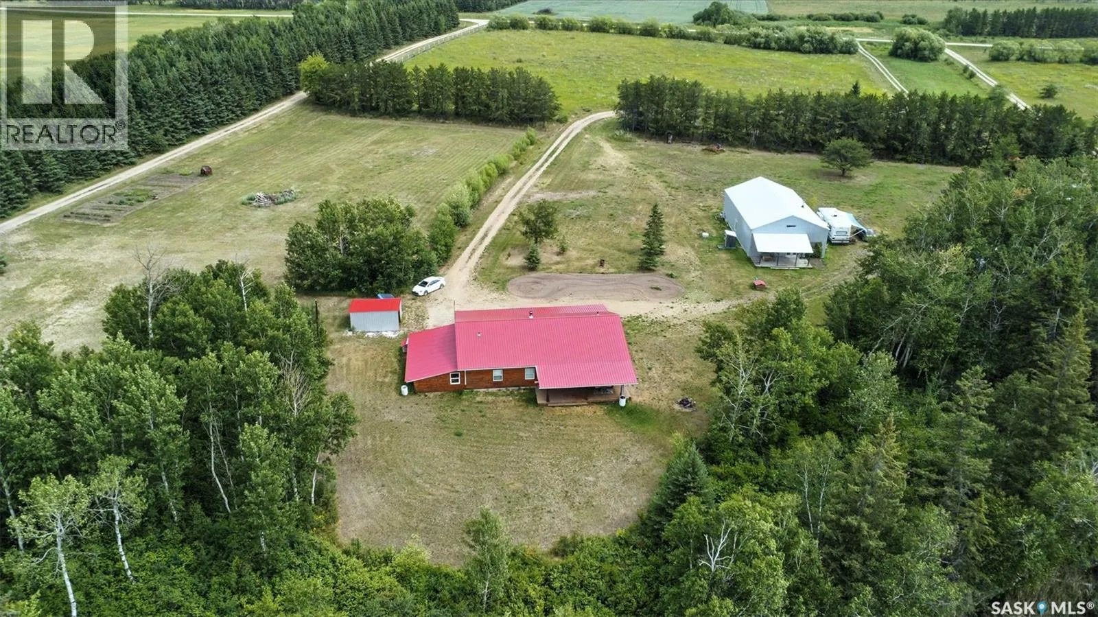 Welcome to this one and kind waterfront private acreage located at Fish Lake, SK offers a serene and picturesque setting. The property spans across 4.99 acres The house was built in 2016 and boast over 1800 sq ft with three spacious bedrooms. The open concept kitchen has plenty of cupboard and counter space with island. Master bedroom has 5pc bathroom! House is equipped with in floor radiant heat and wood burning stove for supplement heat. Head on out the living room door to back deck overlooking the lake. The property numerous outbuilding for storage and wood cutting station. The house is equipped with a well and a septic tank. The property has large heated shop measuring 33 X 38 and heated attached garage. There is no public reserve on the lake front and the well is under ground spring fed. (id:27476)