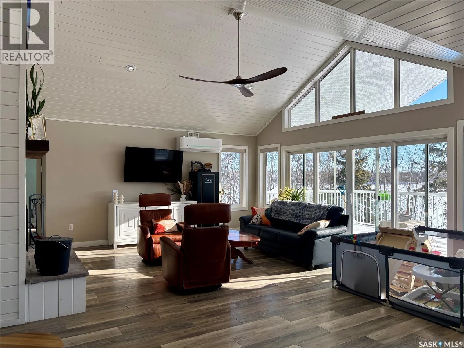 85 KM from Prince Albert. 165 KM from Saskatoon. Approximately 7KM north of Mont Nebo on Cameron Lake in Crescent Bay Subdivision. Discover the ultimate lakeside retreat situated on just over an acre of prime shoreline. This thoughtfully designed home features 2300 square feet of living space (including the bright walkout basement) and seamlessly blends rustic charm with modern efficiency, offering an all-encompassing property perfect for a permanent residence or an upscale recreational getaway. Step inside to an expansive open-concept floor plan illuminated by a wall of south-facing windows. The interior is bathed in natural light, framing endless, peaceful views of the water from nearly every room. 4 bedrooms and two 4-piece bathrooms provide ample space for family and guests. Warm up by the wood-burning fireplace or enjoy the luxury of radiant in-floor heating in the basement (fueled by a propane boiler). Main-floor comfort is ensured by two radiant heaters and two electric heat pumps, offering precise temperature control year-round. Spend your mornings with coffee on the balcony and your afternoons on the water with a kayak or paddleboard. The fire pit area sets the stage for watching the sunset with your favourite people. Additional features include a 2-car garage, on-demand hot water, a well and cistern system, and a septic tank. Located on the quiet shores of Cameron Lake, this property offers the rare opportunity to own a piece of paradise where the transition from "daily life" to "vacation mode" is as simple as stepping out your back door. Donât miss out on this incredible ownership opportunity. Contact an Agent today to book your private showing! (id:27476)
