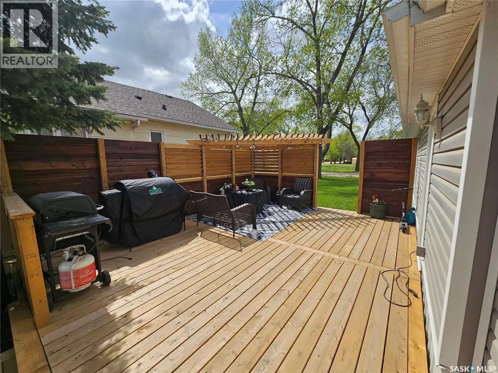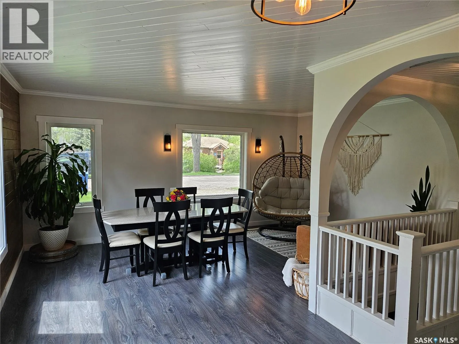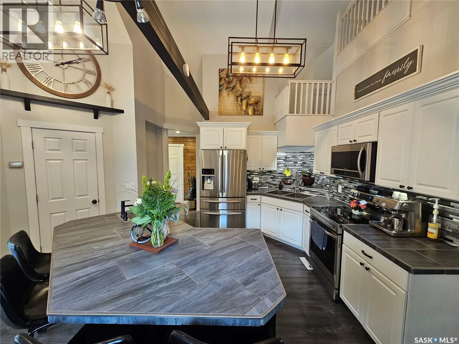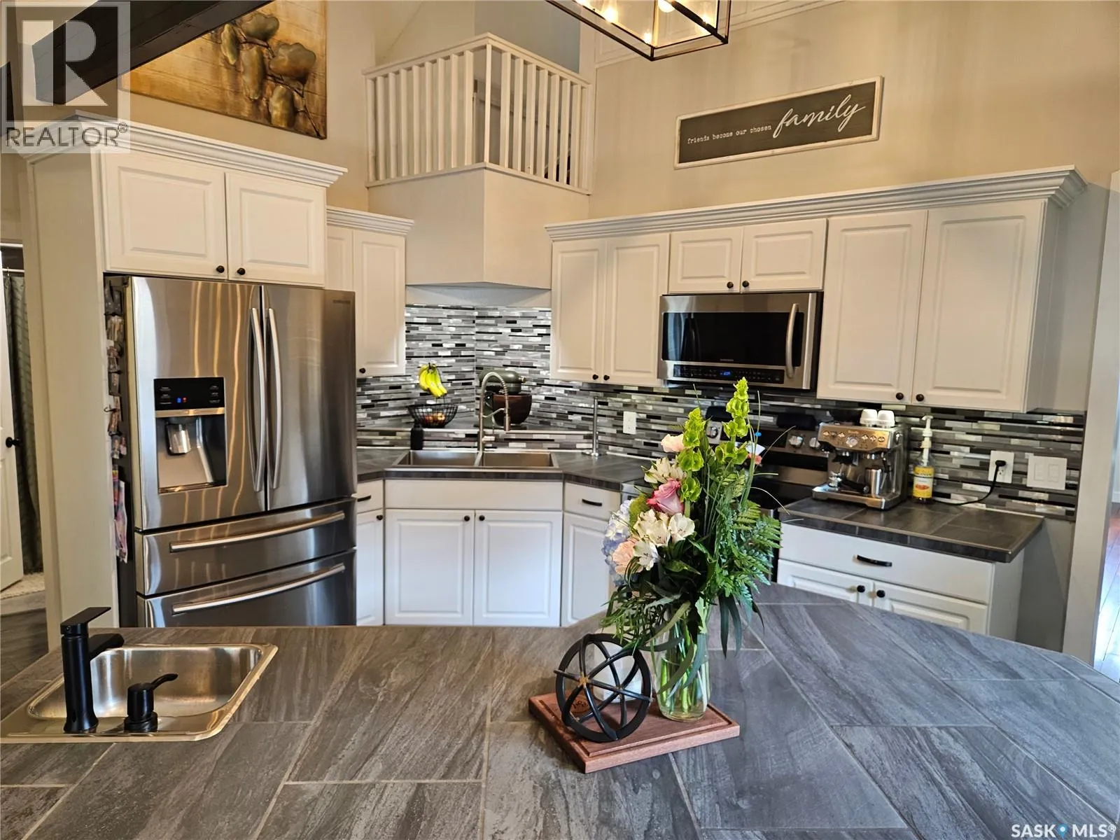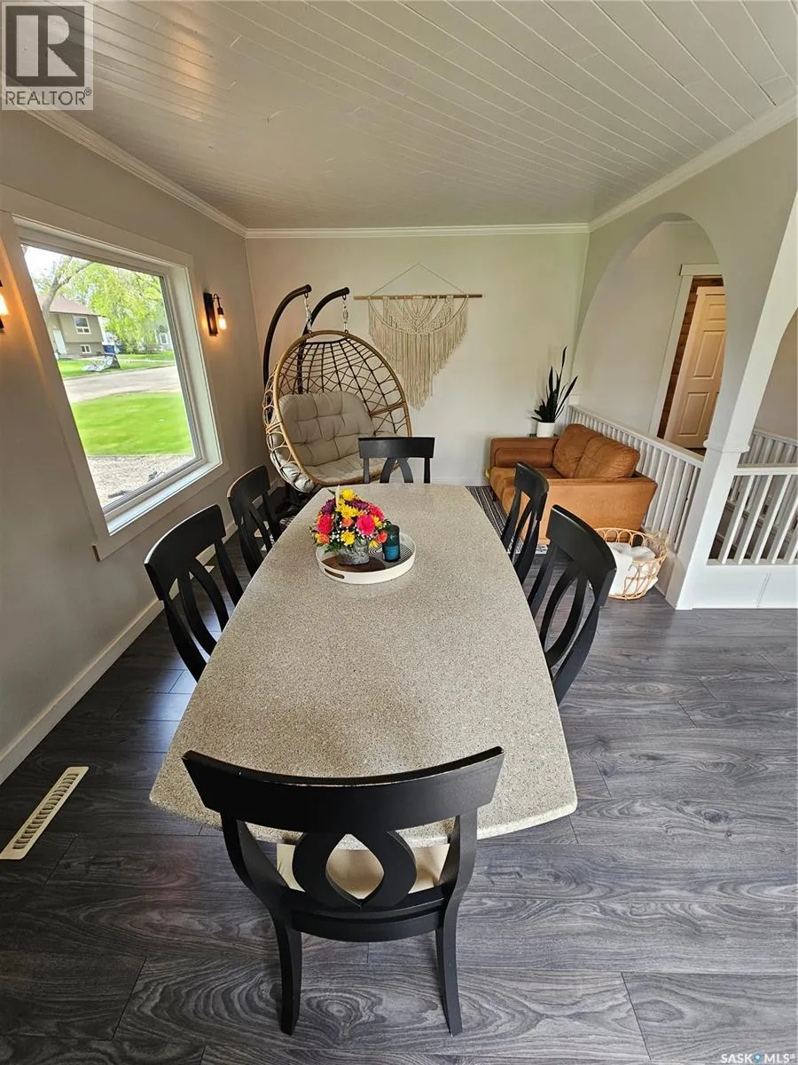 Beautiful Two-Story Home in Carlyle â Stylish, Spacious, and Move-In Ready - Welcome to this stunning 2,112 sq ft two-story home located in the heart of Carlyle. Thoughtfully updated and impeccably maintained, this property offers both charm and functionality, perfect for families or those who love to entertain. As you step inside, you're greeted by a spacious foyer with ample closet space and room to comfortably store boots and outerwear. From here, beautifully crafted archway-style entry wallsâadding architectural flair and characterâlead you seamlessly into the dining and kitchen areas. The dining room is generous in size and features a cozy side nookâideal for reading, relaxing, or extra seating when guests are over. The kitchen is nothing short of spectacular, boasting a vaulted ceiling accented with a striking wood beam, a walk-in pantry, stainless steel appliances, tile countertops, stylish backsplash, and a large island with seatingâperfect for casual meals or entertaining. The living room is absolutely massive and serves as the heart of the home, anchored by a gorgeous fireplace designed to house your TV and serve as a stunning focal point. There's plenty of room for all your favorite furniture and easy access to the backyard. A convenient 3-piece bathroom completes the main level. Upstairs, you'll find three comfortable bedrooms, including the spacious primary bedroom that connects to a walk-through bathroomâalso accessible from the hallway. Itâs perfect for both privacy and practicality. The basement is unfinished, providing tons of storage space and potential to develop into additional living space. Recent Updates Include: Vinyl siding & new construction Kohler windows (2019), Fully renovated kitchen with new appliances (2019), New flooring throughout (excluding living room) (2019), Water heater (2021), Main level bathroom renovation (2023), Deck and pergola addition (2024), Upstairs bathroom (2025). Call your realtor today to schedule a viewing! (id:27476)