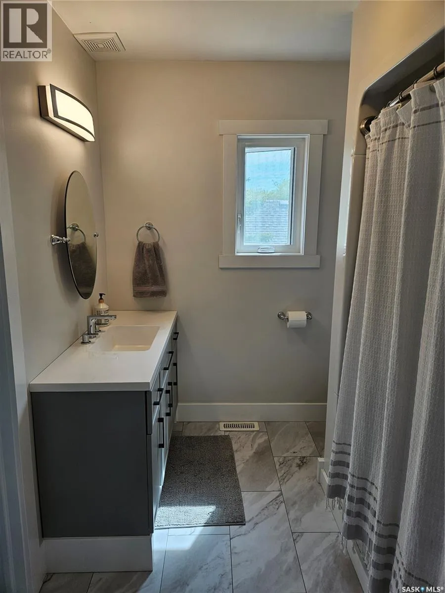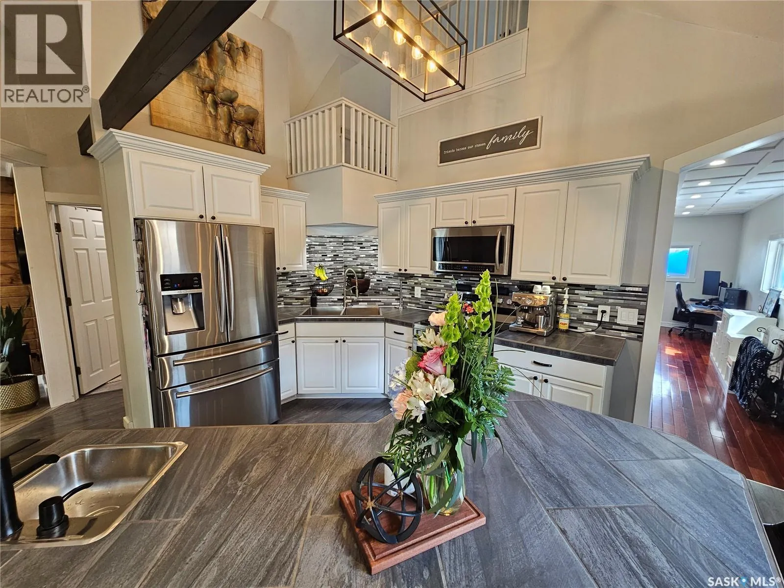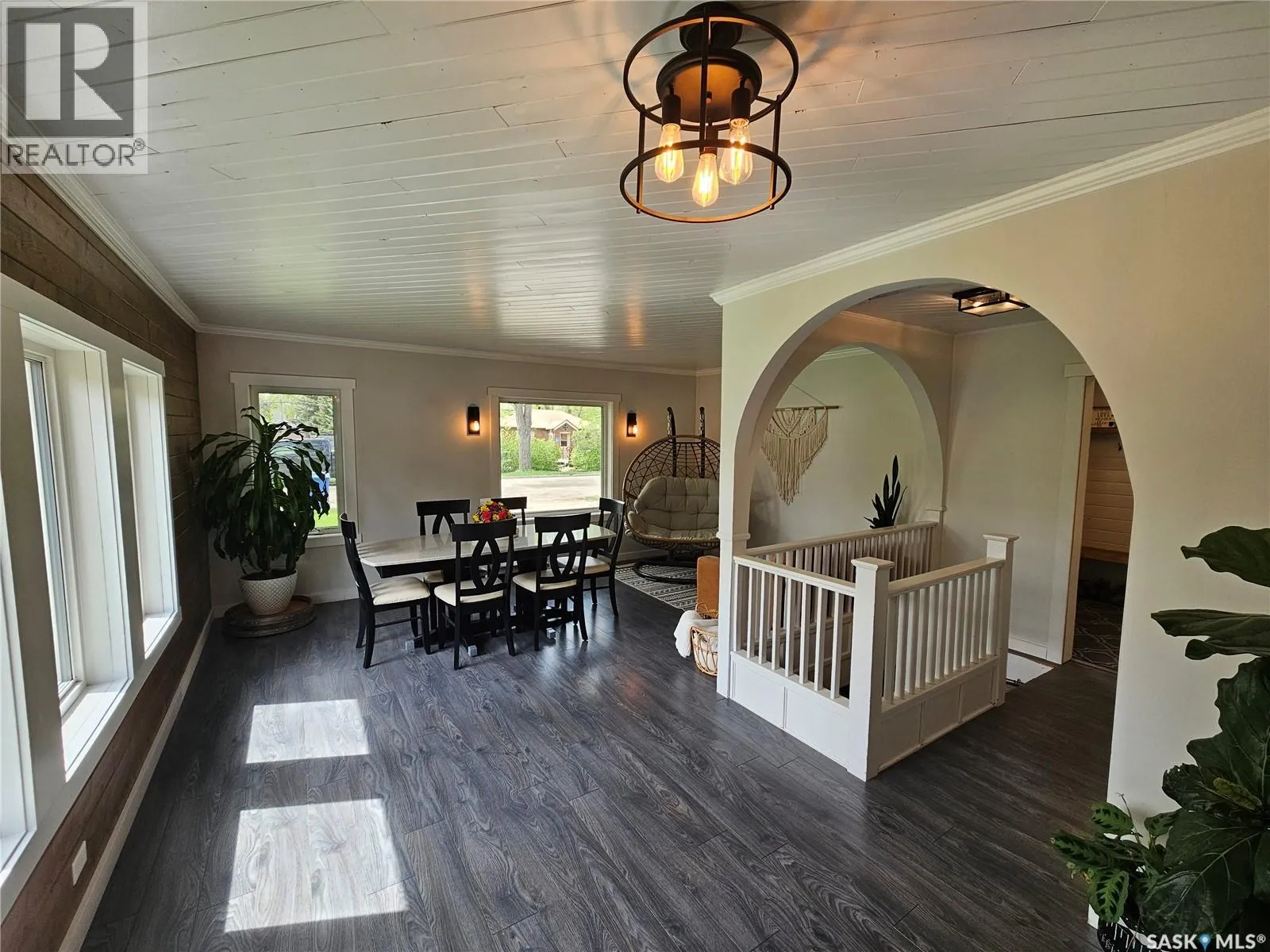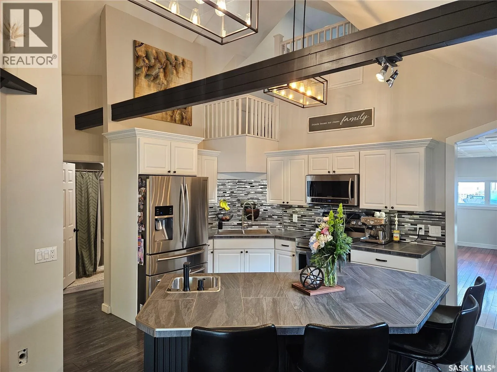 Beautiful Two-Story Home in Carlyle â Stylish, Spacious, and Move-In Ready - Welcome to this stunning 2,112 sq ft two-story home located in the heart of Carlyle. Thoughtfully updated and impeccably maintained, this property offers both charm and functionality, perfect for families or those who love to entertain. As you step inside, you're greeted by a spacious foyer with ample closet space and room to comfortably store boots and outerwear. From here, beautifully crafted archway-style entry wallsâadding architectural flair and characterâlead you seamlessly into the dining and kitchen areas. The dining room is generous in size and features a cozy side nookâideal for reading, relaxing, or extra seating when guests are over. The kitchen is nothing short of spectacular, boasting a vaulted ceiling accented with a striking wood beam, a walk-in pantry, stainless steel appliances, tile countertops, stylish backsplash, and a large island with seatingâperfect for casual meals or entertaining. The living room is absolutely massive and serves as the heart of the home, anchored by a gorgeous fireplace designed to house your TV and serve as a stunning focal point. There's plenty of room for all your favorite furniture and easy access to the backyard. A convenient 3-piece bathroom completes the main level. Upstairs, you'll find three comfortable bedrooms, including the spacious primary bedroom that connects to a walk-through bathroomâalso accessible from the hallway. Itâs perfect for both privacy and practicality. The basement is unfinished, providing tons of storage space and potential to develop into additional living space. Recent Updates Include: Vinyl siding & new construction Kohler windows (2019), Fully renovated kitchen with new appliances (2019), New flooring throughout (excluding living room) (2019), Water heater (2021), Main level bathroom renovation (2023), Deck and pergola addition (2024), Upstairs bathroom (2025). Call your realtor today to schedule a viewing! (id:27476)
