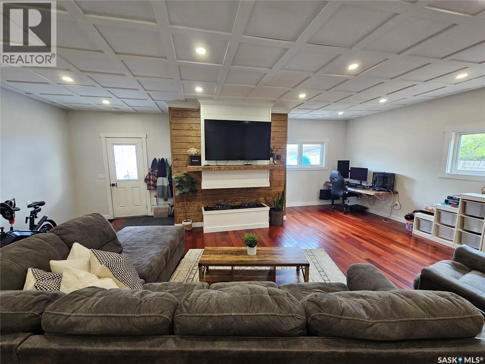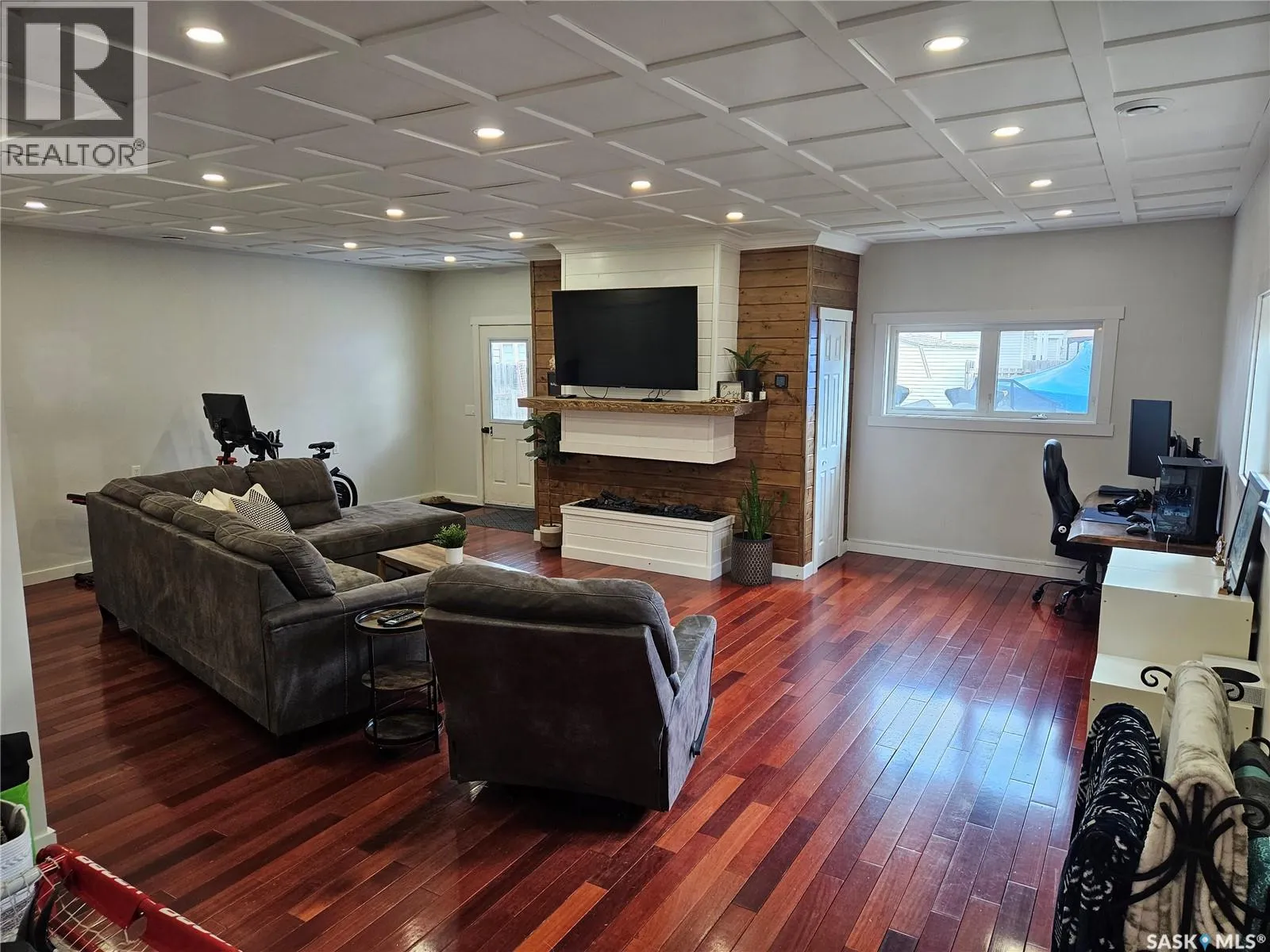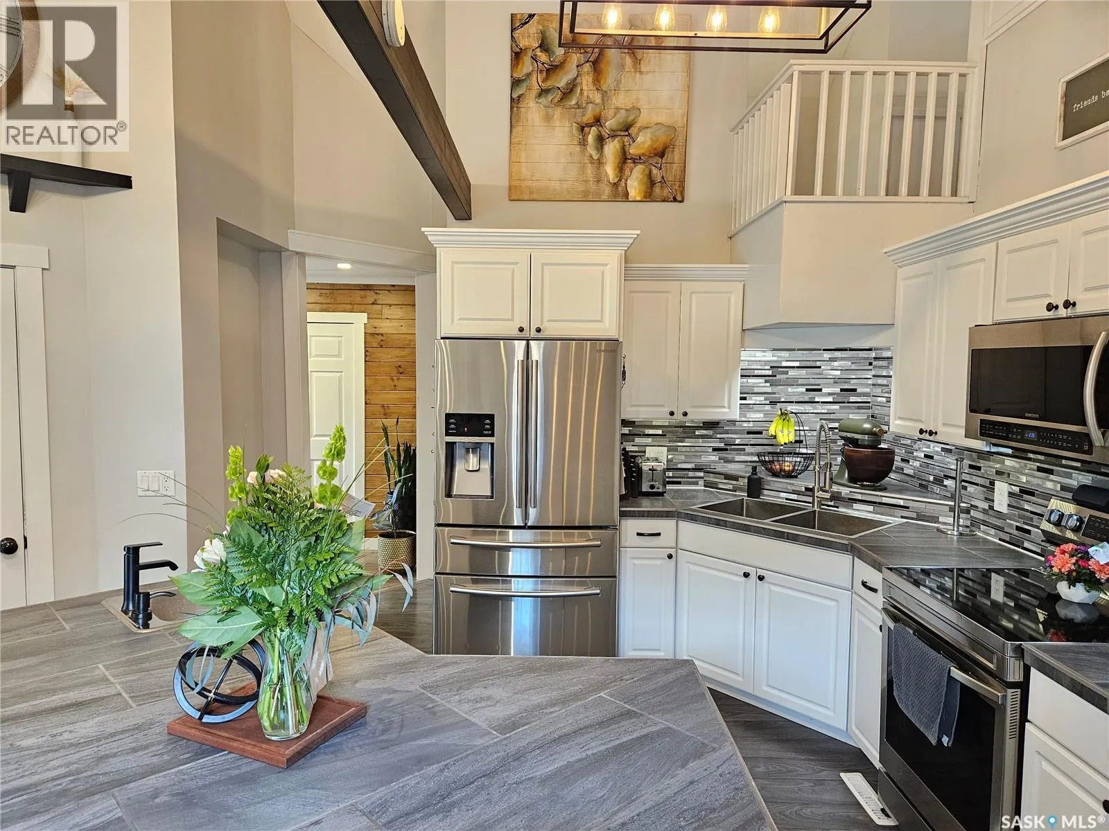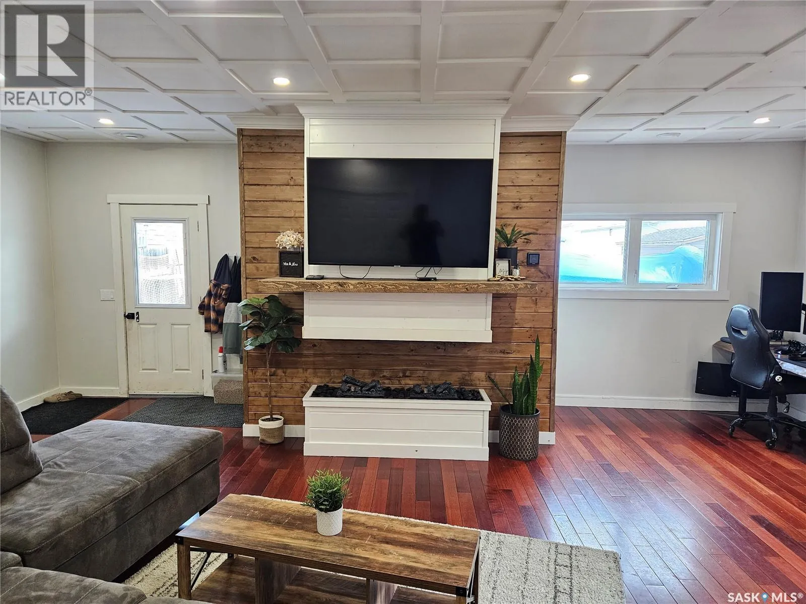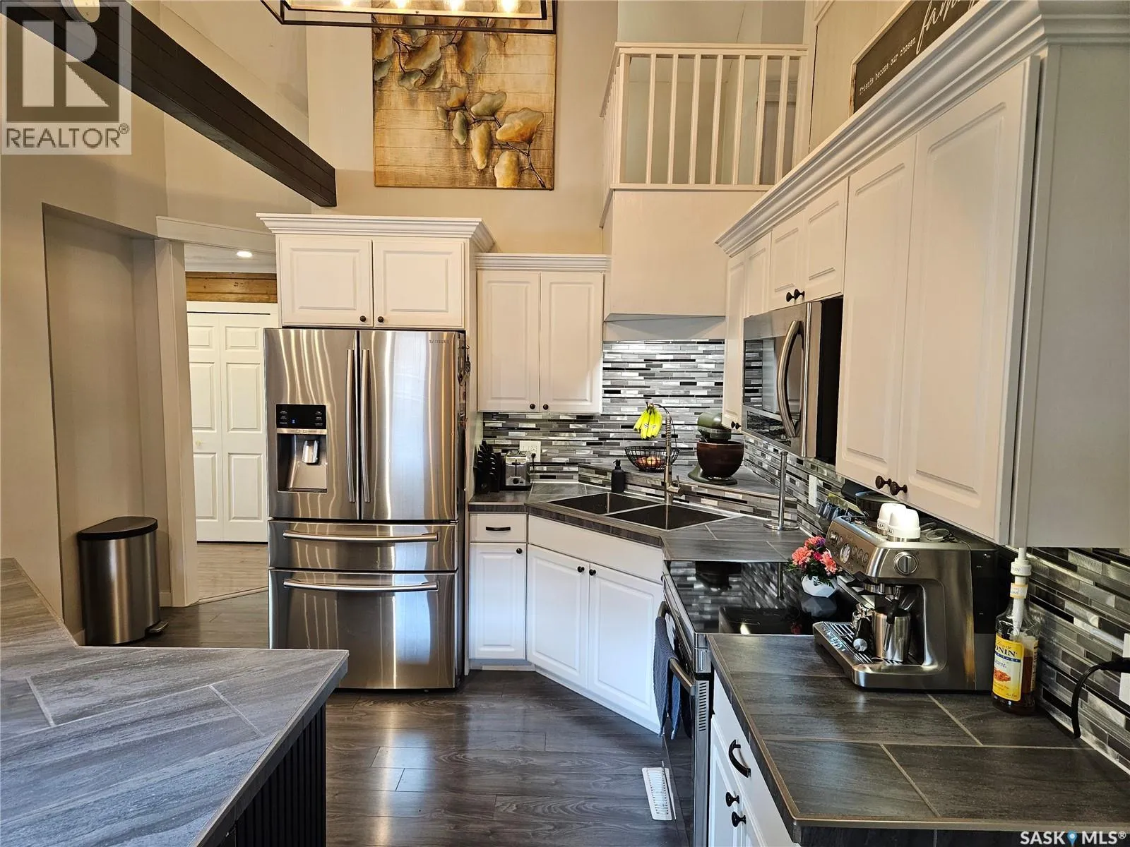 Beautiful Two-Story Home in Carlyle â Stylish, Spacious, and Move-In Ready - Welcome to this stunning 2,112 sq ft two-story home located in the heart of Carlyle. Thoughtfully updated and impeccably maintained, this property offers both charm and functionality, perfect for families or those who love to entertain. As you step inside, you're greeted by a spacious foyer with ample closet space and room to comfortably store boots and outerwear. From here, beautifully crafted archway-style entry wallsâadding architectural flair and characterâlead you seamlessly into the dining and kitchen areas. The dining room is generous in size and features a cozy side nookâideal for reading, relaxing, or extra seating when guests are over. The kitchen is nothing short of spectacular, boasting a vaulted ceiling accented with a striking wood beam, a walk-in pantry, stainless steel appliances, tile countertops, stylish backsplash, and a large island with seatingâperfect for casual meals or entertaining. The living room is absolutely massive and serves as the heart of the home, anchored by a gorgeous fireplace designed to house your TV and serve as a stunning focal point. There's plenty of room for all your favorite furniture and easy access to the backyard. A convenient 3-piece bathroom completes the main level. Upstairs, you'll find three comfortable bedrooms, including the spacious primary bedroom that connects to a walk-through bathroomâalso accessible from the hallway. Itâs perfect for both privacy and practicality. The basement is unfinished, providing tons of storage space and potential to develop into additional living space. Recent Updates Include: Vinyl siding & new construction Kohler windows (2019), Fully renovated kitchen with new appliances (2019), New flooring throughout (excluding living room) (2019), Water heater (2021), Main level bathroom renovation (2023), Deck and pergola addition (2024), Upstairs bathroom (2025). Call your realtor today to schedule a viewing! (id:27476)