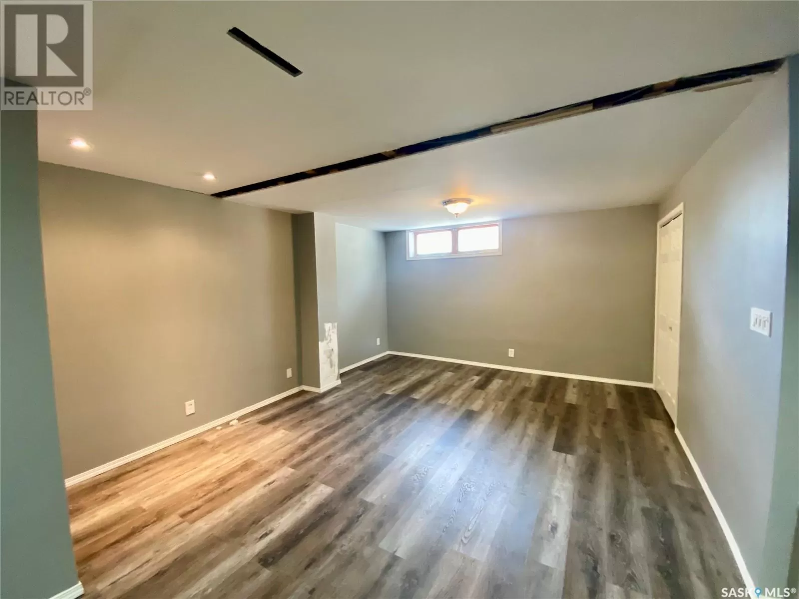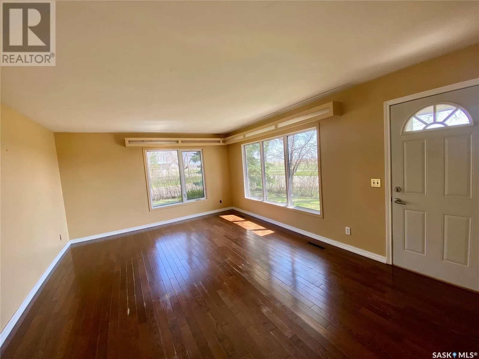 This inviting 2-bedroom bungalow offers over 1,000 sqft of cozy living space on a prime corner lot directly across from the schoolâperfect for families or anyone who appreciates a walkable location. Step into the bright living room with gleaming hardwood floors and a clear view of the school playground, creating a cheerful and connected atmosphere. The eat-in kitchen and dining area provide plenty of space for meals and gatherings, while original wood trim and doors throughout the home add warmth and character. Downstairs, the renovated basement features stylish vinyl plank flooring, roughed-in plumbing for a second bathroom, and plenty of space to easily add a third bedroom. Outside, enjoy your private patio area surrounded by mature shrubs, a dedicated garden space, and a double detached garage thatâs mostly insulatedâready for your projects or storage needs. A well-cared-for home in an unbeatable locationâdonât miss this opportunity to live in the heart of Carnduff! (id:27476)