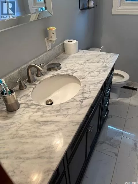 Take a look at this two bedroom home that is situated on a mature well maintained lot. The yard has great curb appeal with a cement walkway that leads to a private backyard featuring a brick patio and wooden deck. The home features infloor heat in the porch, kitchen and dining room and main bathroom. The open kitchen has a bay window over the sink and an abundance of wood cupboards throughout. The large living room features another bay window to the street and beautiful hardwood floors. The oversized master bedroom and second bedroom also have hardwood flooring. The basement is completely finished with another bedroom, large laundry room, family room, and three piece bathroom. This is a must see! (id:27476)