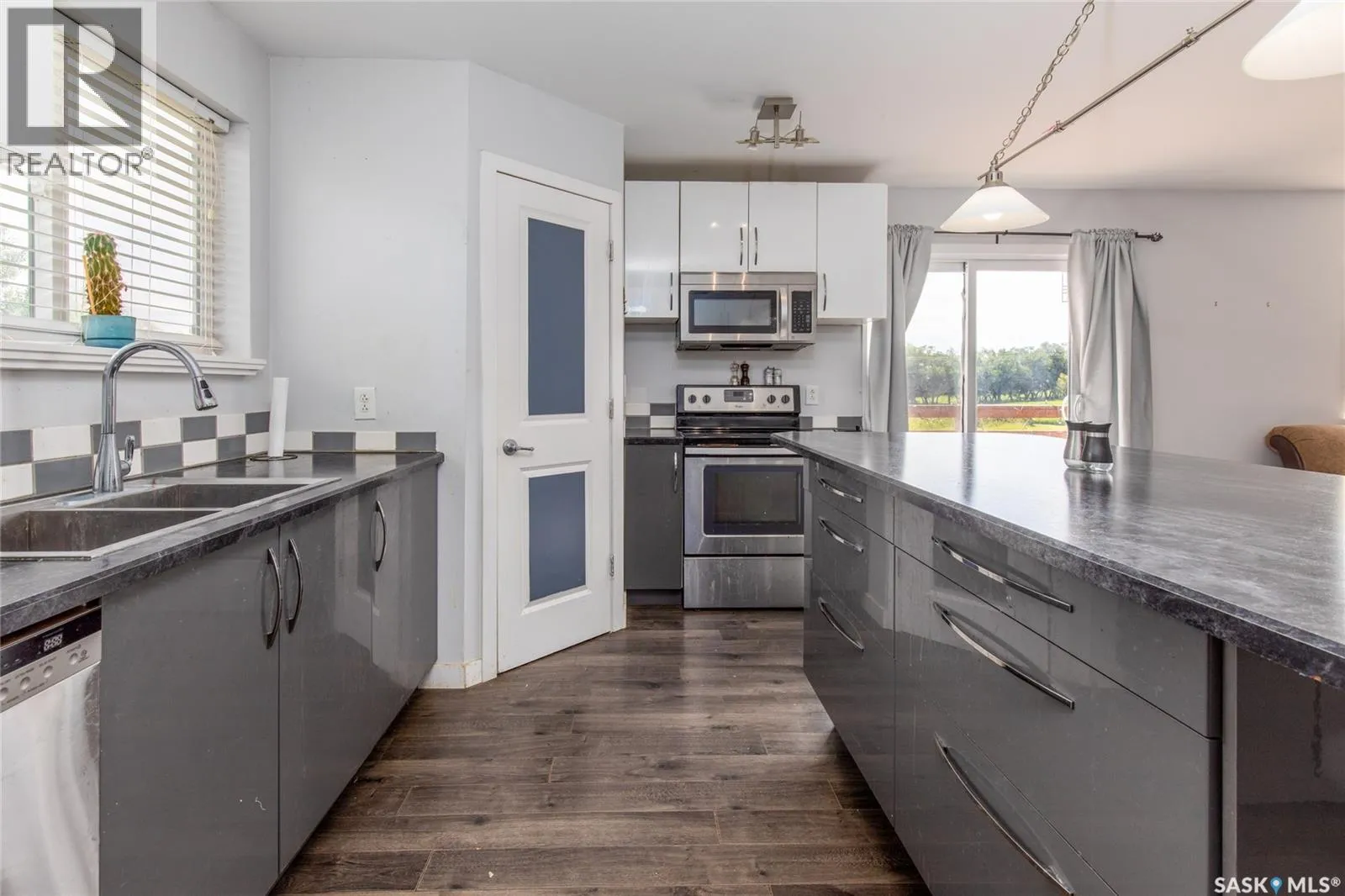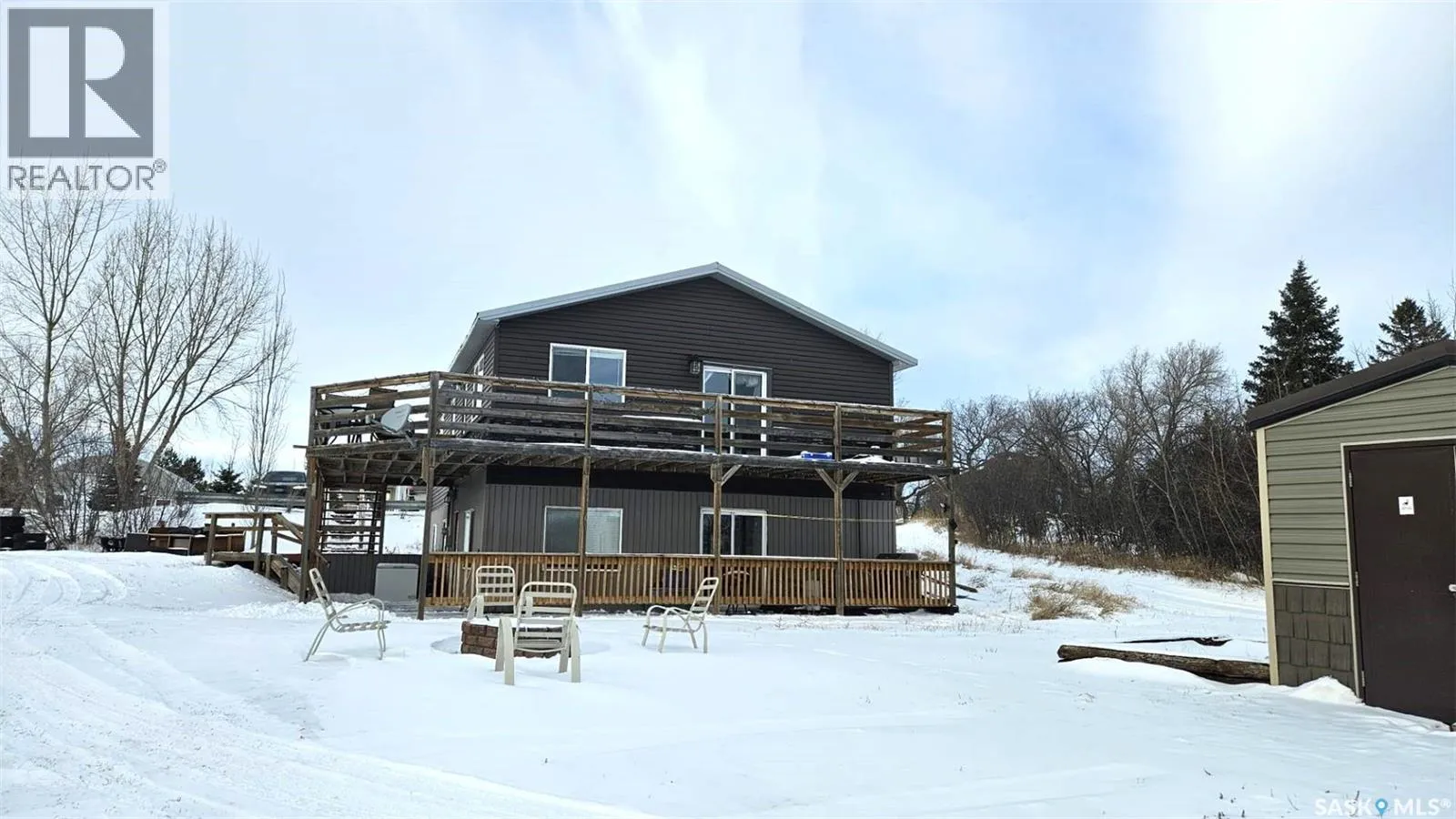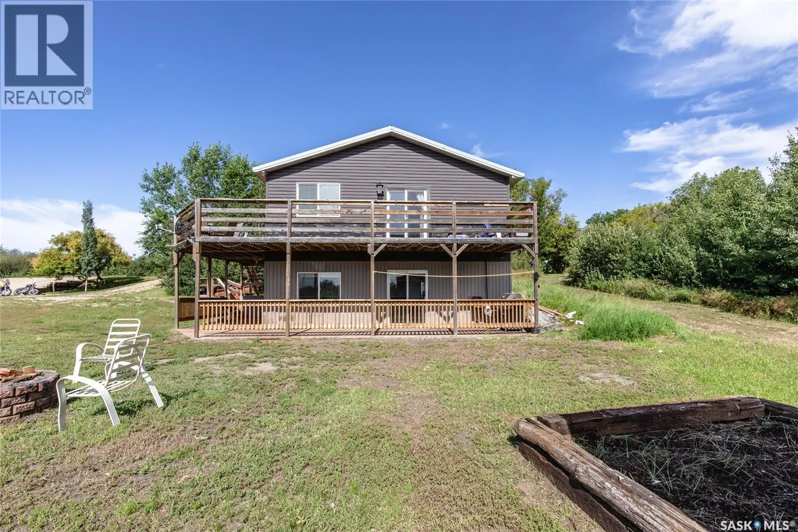 Built in 2014, this bungalow offers two fully developed levels, each 1,130 sq ft, with separate and self-contained living spaces. Both the main and lower levels include three bedrooms, two bathrooms (including an en suite), an open concept full kitchen, a living room, and dining area, a dedicated laundry, and private entrances. The main level features a large wraparound deck on the south and west sides, while the lower level includes stamped concrete flooring with in-floor heating and a walkout basement. Situated on two lots and backing onto open green space, this property offers a rural feel with the convenience of nearby amenities (5 km to Caronport, 29 km to Moose Jaw). The versatile layout makes it well-suited for multi-generational living or rental potential. Book your viewing today! (id:27476)