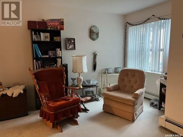 OPPORTUNITIES like this don't come up very often. If you have been hoping there would be another condo unit available in the Caronport Condo Building, then you need wait no longer. This unit has the largest square footage plan in the building PLUS the beauty of lots of pleasant natural light with the SOUTH FACING exposure. The condo provides a welcoming foyer and a U-shaped kitchen with appliances included. The Living and Dining area is open and spacious with plenty of room for formal dining space and a generous living room area. There is a balcony to be enjoyed off the living room. This unit provides an extra generous Primary Bedroom with a 3-piece ensuite and a walk-in closet. The second bedroom can double as a den, office, or TV area. The in-suite laundry includes storage cabinets above the washer and dryer, plus there is a full pantry unit within this room. This is a great unit, and it doesn't get much better than good square footage, well-kept, and south-facing to enjoy seeing the prairie fields and skies! And to add to your comfort and security, there is an intercom system, an ELEVATOR, and a HEATED PARKADE. No disappointments here! Call for more information or to book your private viewing. (id:27476)
