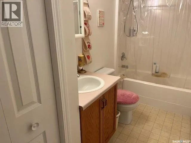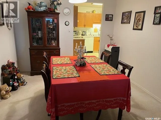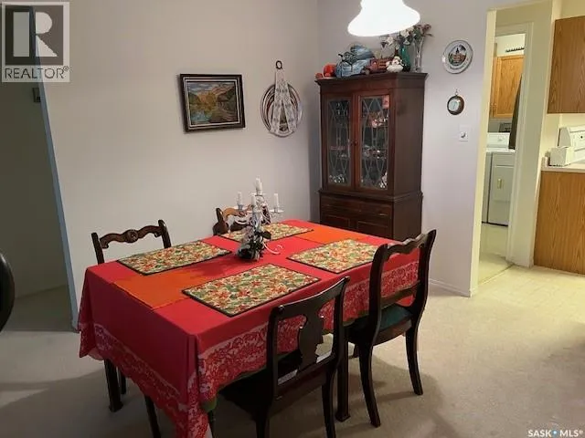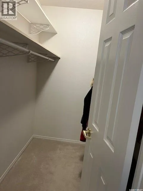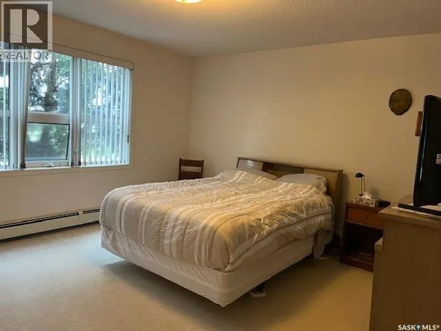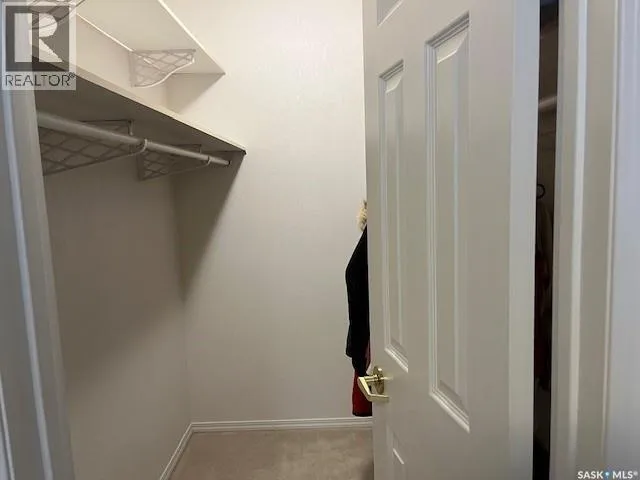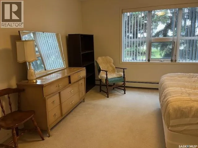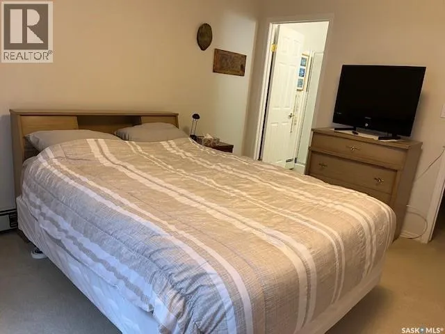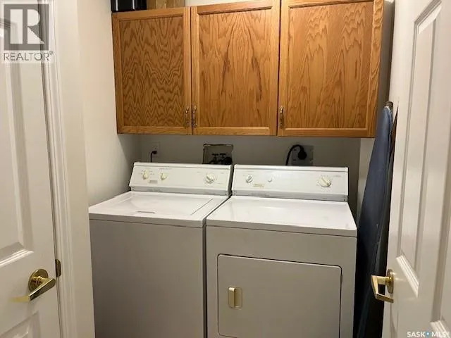 OPPORTUNITIES like this don't come up very often. If you have been hoping there would be another condo unit available in the Caronport Condo Building, then you need wait no longer. This unit has the largest square footage plan in the building PLUS the beauty of lots of pleasant natural light with the SOUTH FACING exposure. The condo provides a welcoming foyer and a U-shaped kitchen with appliances included. The Living and Dining area is open and spacious with plenty of room for formal dining space and a generous living room area. There is a balcony to be enjoyed off the living room. This unit provides an extra generous Primary Bedroom with a 3-piece ensuite and a walk-in closet. The second bedroom can double as a den, office, or TV area. The in-suite laundry includes storage cabinets above the washer and dryer, plus there is a full pantry unit within this room. This is a great unit, and it doesn't get much better than good square footage, well-kept, and south-facing to enjoy seeing the prairie fields and skies! And to add to your comfort and security, there is an intercom system, an ELEVATOR, and a HEATED PARKADE. No disappointments here! Call for more information or to book your private viewing. (id:27476)