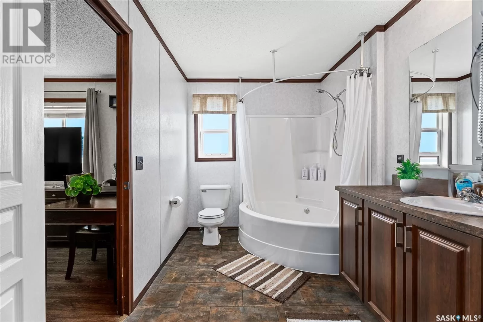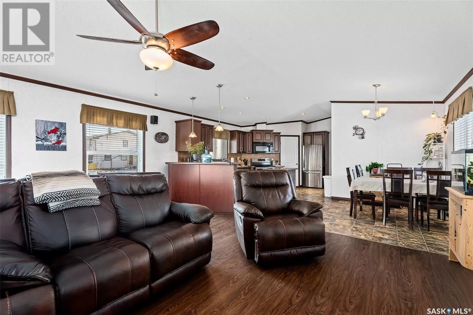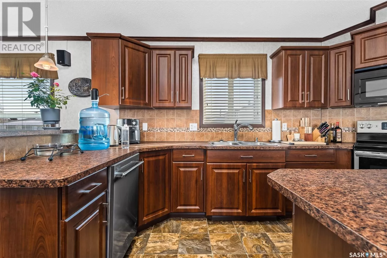 Looking for modern and easy living in the bustling town of Chamberlain? This 2012 modular home boasts 3 beds / 2 baths and more than 1,500 sq.ft.. This home is situated on a huge corner lot which is 3 separate lots (78' x 130') giving you lots of space for both parking and a large backyard! Coming inside you are greeted by a nice size foyer with a coat closet. You then enter the spacious living space - complete with vaulted ceilings! The open concept living, dining and kitchen are sure to be the heart of the home! The kitchen boasts lots of cabinets / counter space, a walk-in pantry, an island and a stainless steel appliance package. Off the kitchen we find a mudroom complete with laundry setup and access to your backyard. At one end of the home we find a massive primary suite with a walk-in closet and a huge 4 piece ensuite boasting a huge corner soaker tub! This primary suite is hard to compare! At the other end of the home we have 2 more good sized bedrooms along with a 4 piece bathroom. The backyard is fully fenced, features a deck and patio - the perfect place for pets and kids to hang out! The bustling town of Chamberlain is located right along Highway #11 between Saskatoon and Regina - located about 30 minutes from Moose Jaw and 50 minutes from Regina. Reach out today to book a showing! (id:27476)