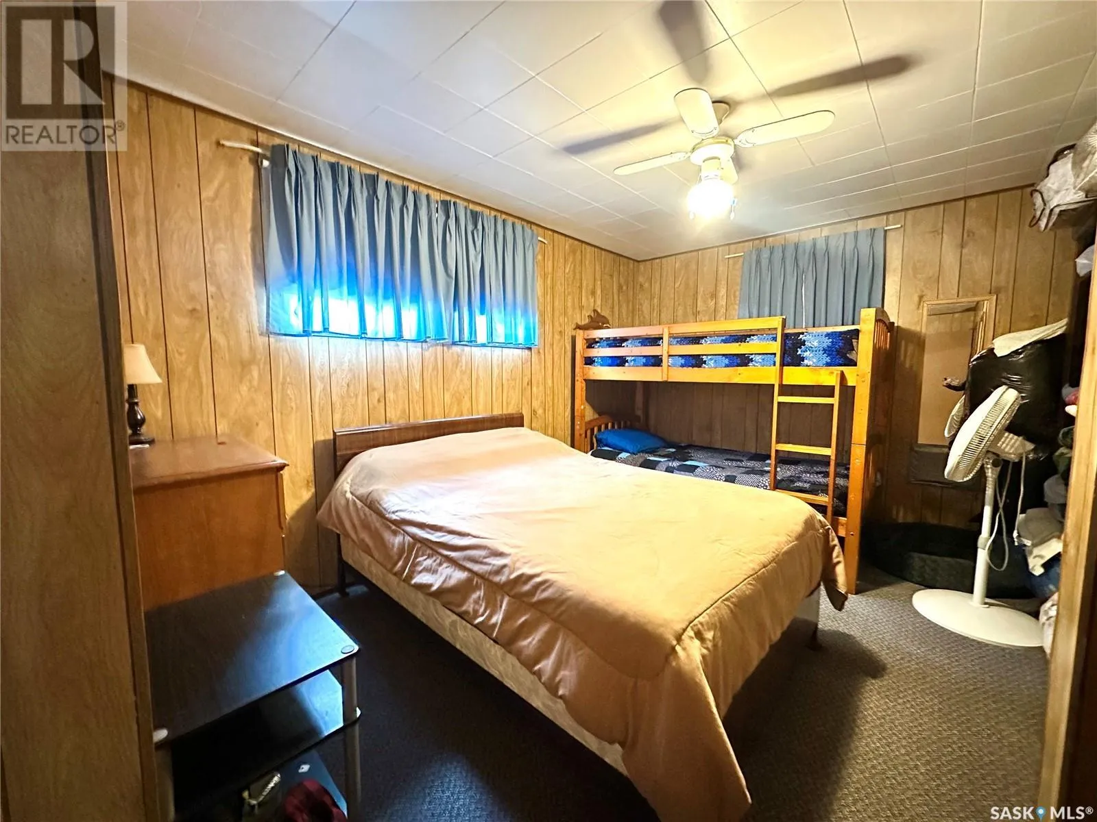 Well-maintained cabin inside and out, located along Pine Street at the Resort Village of Chitek Lake. 4BD, 1BA, attached south facing screened in sunroom with access from master bedroom as well as the living room, giving you additional living space and a great way to spend time outdoors with no bugs, as well as rain or shine. Heated with wood stove, and electric furnace, private 30â well, metal roof in 2017, new toilet and hot water heater in 2020. Detached single garage with cement floor and is wired for 220-power. Manicured back yard, two storage sheds, fire pit area, a short walk to the public beach, 52 septic pump outs included in your property taxes. Cabin comes fully furnished and is ready for you to enjoy the summer. Quick possession is available. Call today for more information. (id:27476)