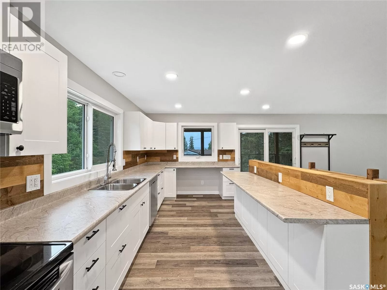 Move-in ready and built for year-round enjoyment at Chitek Lake! This beautifully crafted 1,768 sq ft two-storey home, built in 2022 and certified as a new build in 2023, offers 3 spacious bedrooms (including two suites), 2 full bathrooms, and stylish finishes throughout. The main floor features two large bedrooms, a 5-piece bath with laundry, and a cozy family room with direct access to the yard. Upstairs, enjoy an open-concept kitchen with white cabinetry, stainless steel appliances, an island, and a workstationâwith partial lake views! The living and dining areas offer access to two 26' x 12â decksâone east-facing and one west-facing for sun all day. The upper-level primary suite includes its own ensuite and deck access. Set on a generous 50' x 212' corner lot (over 13,000 sq ft), this property includes RV parking with hookups, 2 natural gas BBQ hook-ups, a 30' well, and a 1,000-gallon fiberglass septic tank (includes 52 annual pump-outs). A transferrable dock space is included just a short walk away. Property taxes: $1,311/year. Quick possession availableâjust bring your bags and enjoy summer at the lake! (id:27476)
