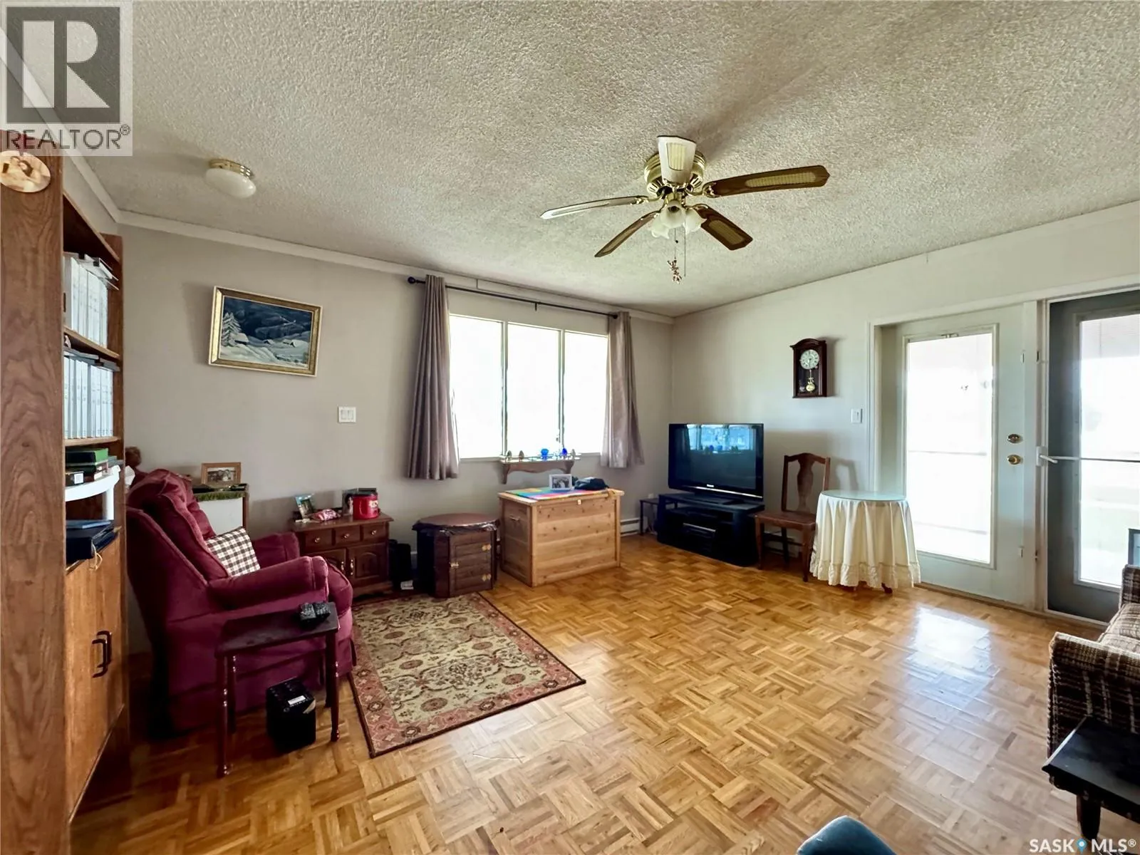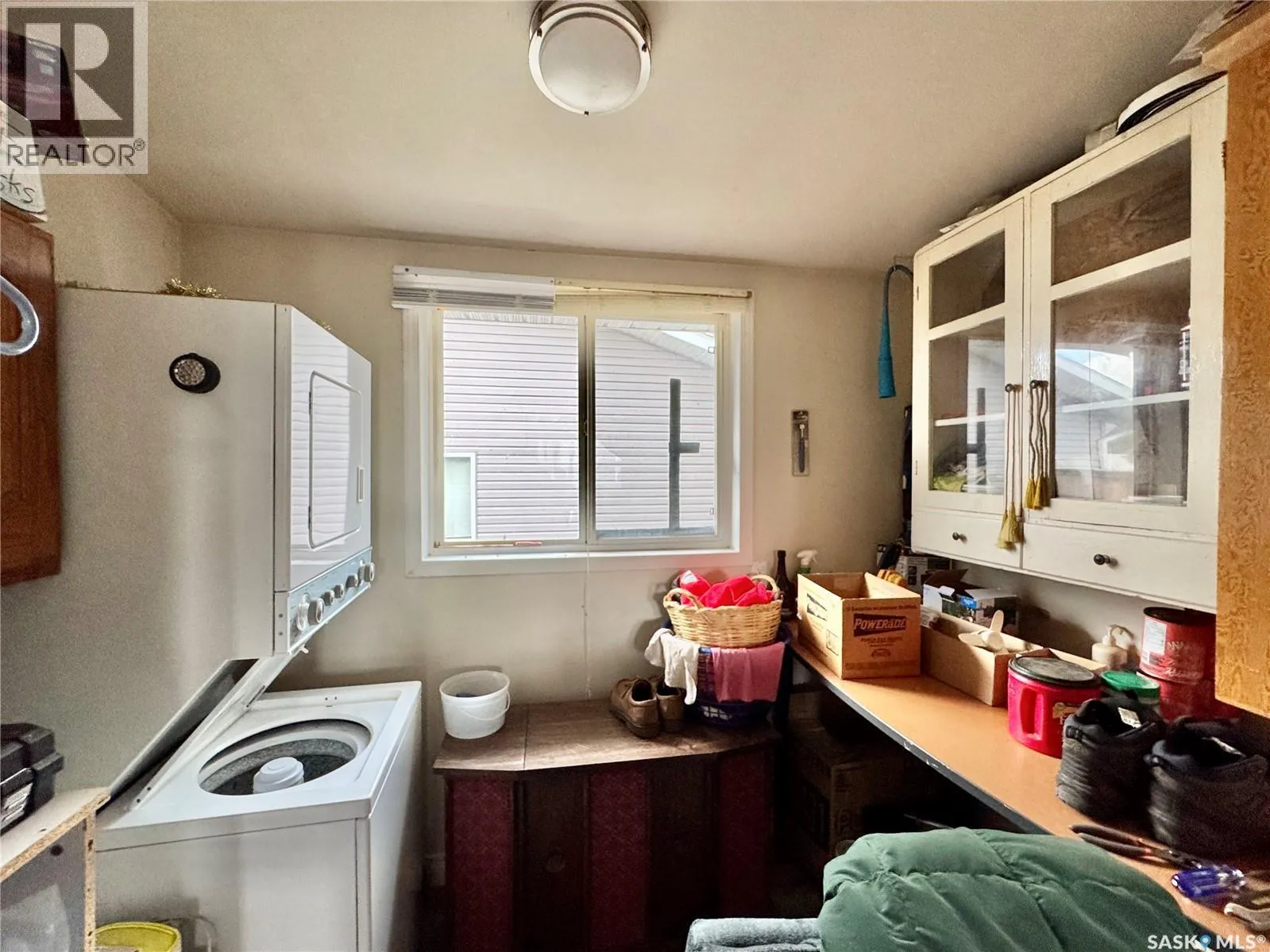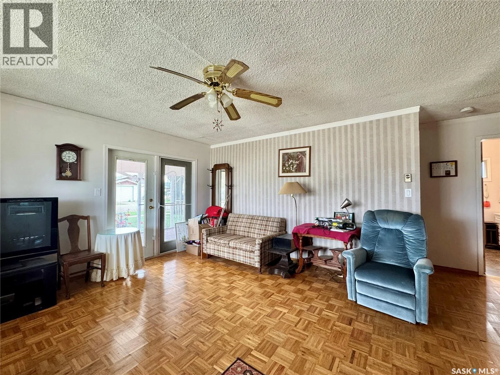 Situated directly across the street from the daycare, K-12 school, and arena, and just steps away from the community pool, this property is perfectly positioned for family living and convenience. This 2 bedroom, 1 bathroom home is wheelchair-friendly and offers an attached insulated one-car garage with direct entry. Inside, the bright kitchen boasts an abundance of counter and cupboard space, while the layout features main floor laundry for easy living. The cozy wood stove adds warmth and charm, and the updated 200-amp electrical panel provides peace of mind. Though the basement is for storage only, itâs a practical bonus for seasonal items and extras. Step outside to discover a fully fenced backyardâa private retreat complete with a hot tub to unwind in at the end of the day. You will love the spacious partial wrap-around deck, providing the perfect spot to enjoy both morning sunrises and evening shade. This property combines everyday function with unbeatable location, making it a fantastic opportunity for its next owners. (id:27476)