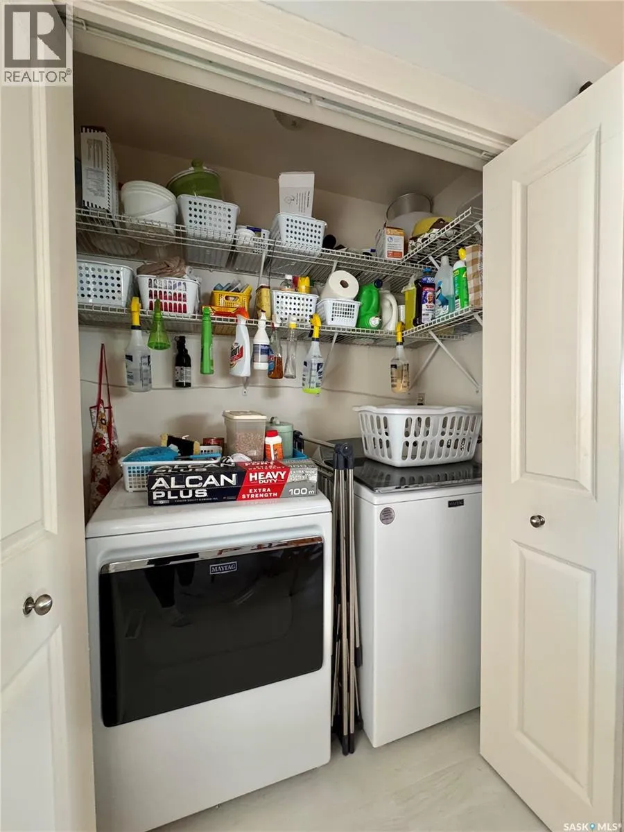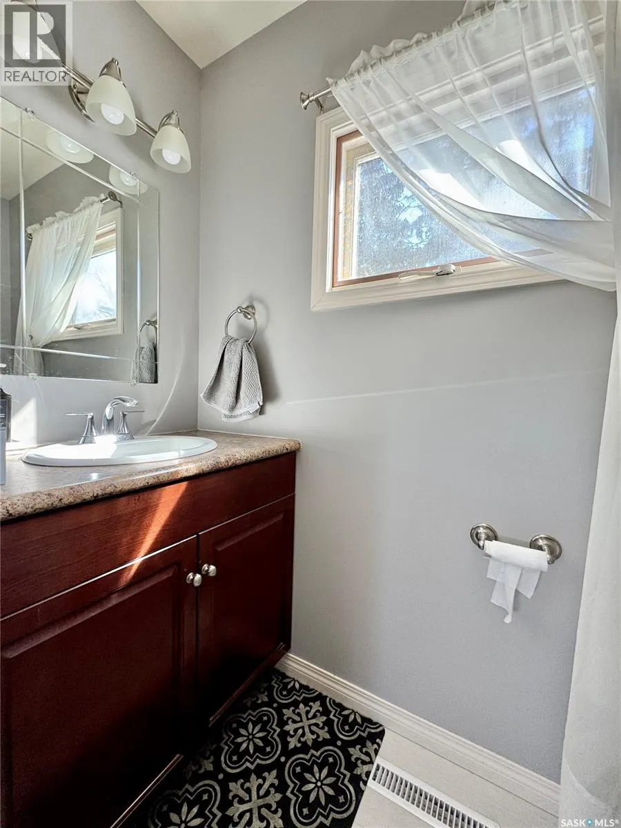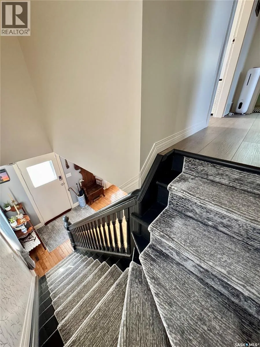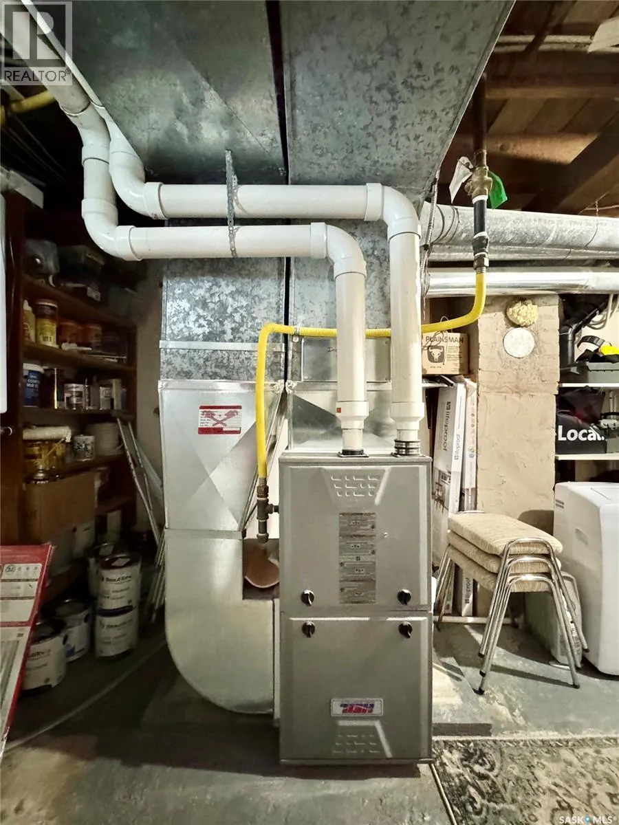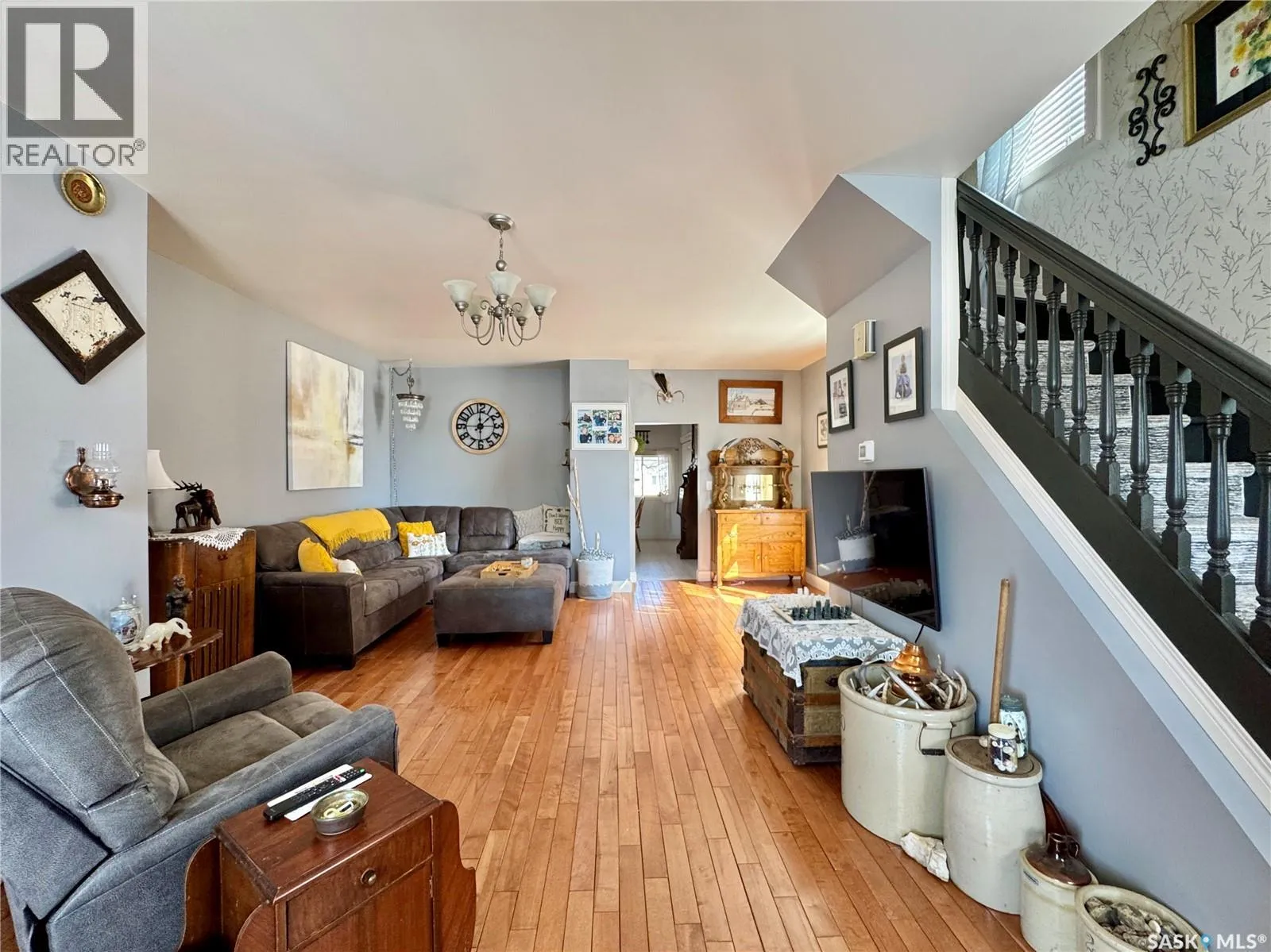 If youâve been searching for a true character property in Churchbridge, this two-story heritage house offers the best of both worlds. The main level welcomes you with nine-foot ceilings, gleaming hardwood floors, and updated trim that complements the homeâs heritage style. The eat-in kitchen is updated and includes a dishwasher, while the main floor laundry and two-piece bath add everyday convenience. A sizable rear entry opens onto a partially covered wooden deck, perfect for relaxing outside. Upstairs, youâll find three bedrooms totalâincluding the masterâall with new laminate flooring and a four-piece bathroom. The master bedroom offers a respectable closet. Most windows have been updated, so natural light fills the home. Downstairs, the finished basement serves as a storage zone and houses a high-efficient furnace (updated in 2012) and an on-demand water heater installed in 2024. Outside, thereâs a detached single-car garage with extra tool storage, plus a âcatioâ off the basement for your feline friends. This home is within walking distance to the elementary school and downtown amenities, making it convenient for everyday life. With its heritage charm, modern updates, and thoughtful details, this Churchbridge gem is ready to welcome its next owners. (id:27476)