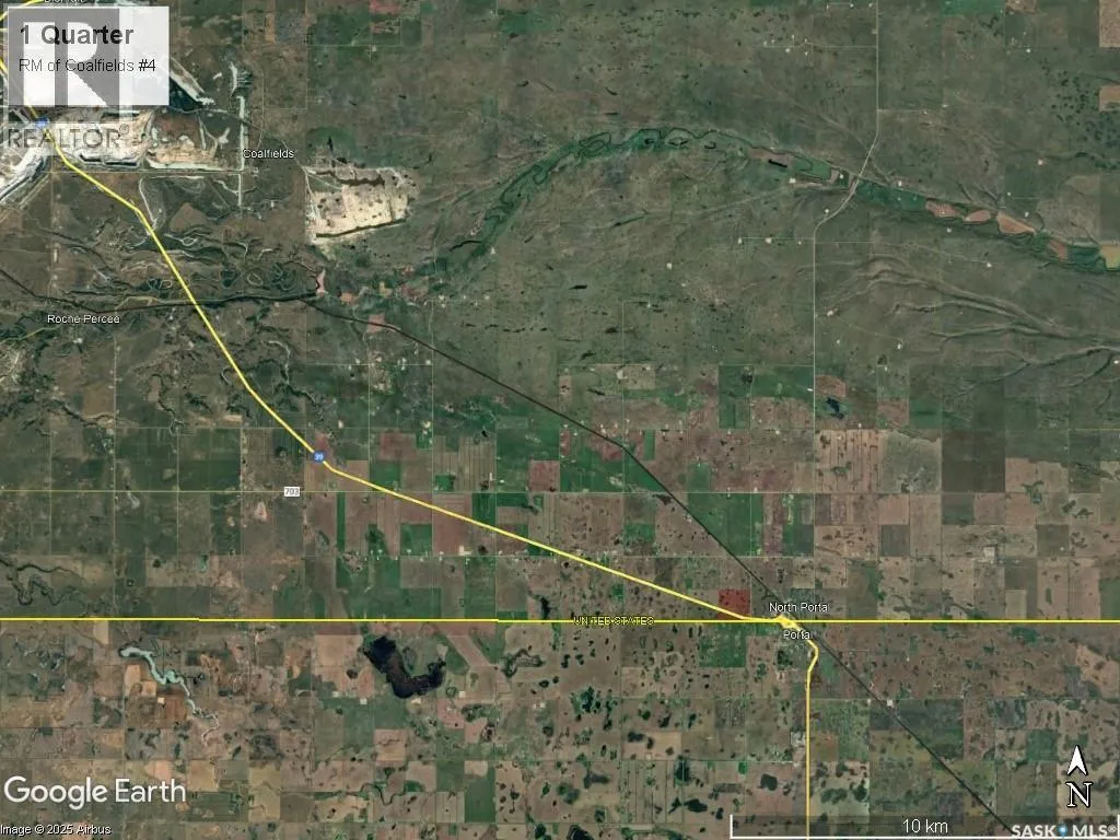 146.28 acres for sale located just west of North Portal, SK in the RM of Coalfields #4 right along the Canada/US border with Highway 39 frontage. The land is split into two parcels by Highway 39, offering both north and south highway exposure providing opportunity for potential future development. The land is currently in crop production. SAMA Field Sheets identify 129 cultivated acres with a 45.1 final rating. Sask Crop Insurance rating is âJâ. There is a yard site with a power, a 100â x 50â Quonset with concrete floor and some trees. All of the bins located in the yard site are NOT included in the listing. There is a surface lease in place with Enbridge providing approximately $800/year of annual surface lease revenue according to the Seller. Available for the 2026 crop season. Looking for more land? There is 104 contiguous acres for sale, SK023608. *All property boundary outlines in images are an approximation only* (id:27476)