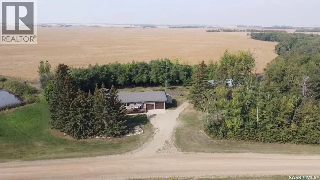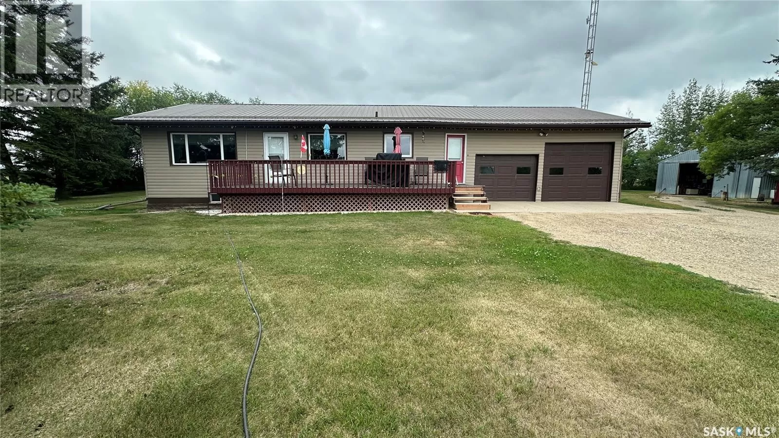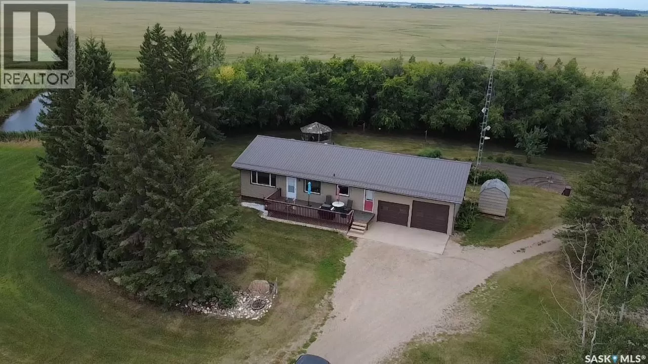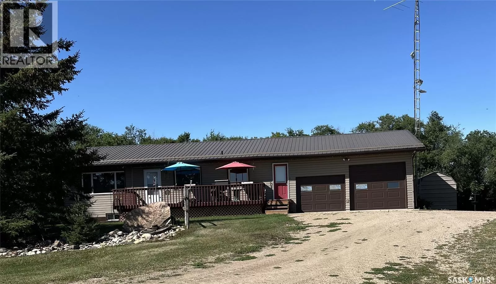 This 1989 home has 1200sq feet, a full basement and is sitting on almost 6 acres. Only a couple miles off the highway, with mature trees and a perimeter shelter belt, this acreage is private, remote, yet only 8-9 minutes to town. As you drive up youâll note the oversized 26x30 double car heated garage. Walking inside to the 3+1 bedrooms, 2 bathrooms and a generous kitchen/dining room. Connected to Rural water pipeline and force air natural gas heat with A/C is a huge bonus for acreage living! The home also has a backup generator to power the acreage in-case of an outage. Metal roof, rubber paved deck and raised garden boxes make the property very low maintenance! Outside you'll find multiple outbuildings including a 32x40 shed, 10x14 insulated workshop and plenty of space for gardening or raising horses. Call today to view this affordable acreage. (id:27476)