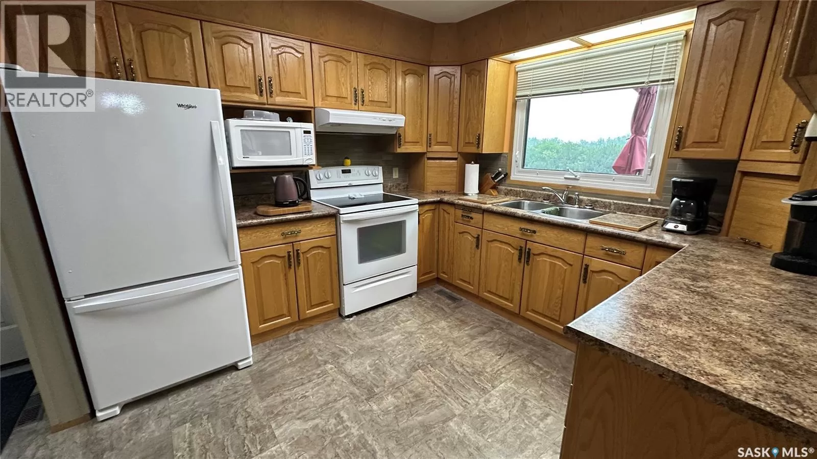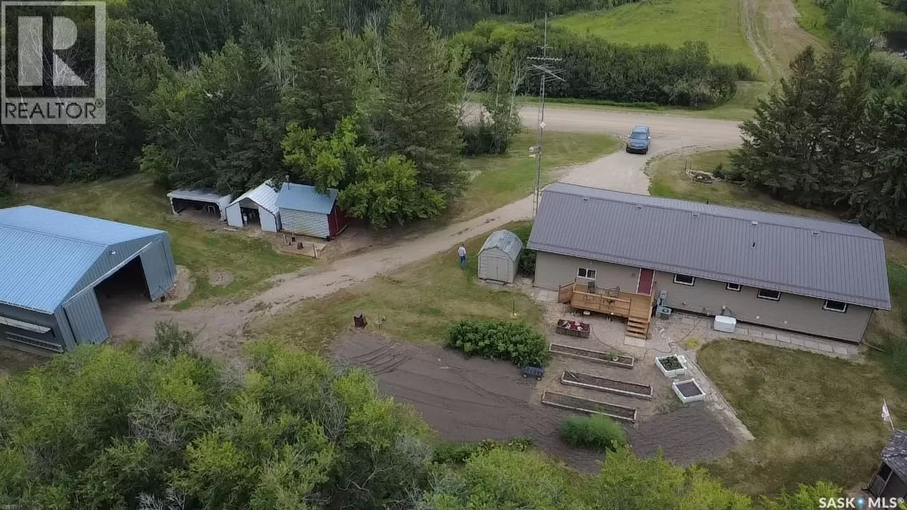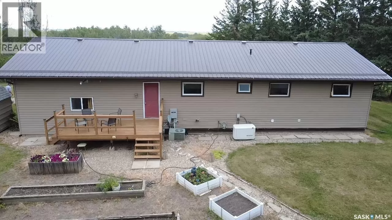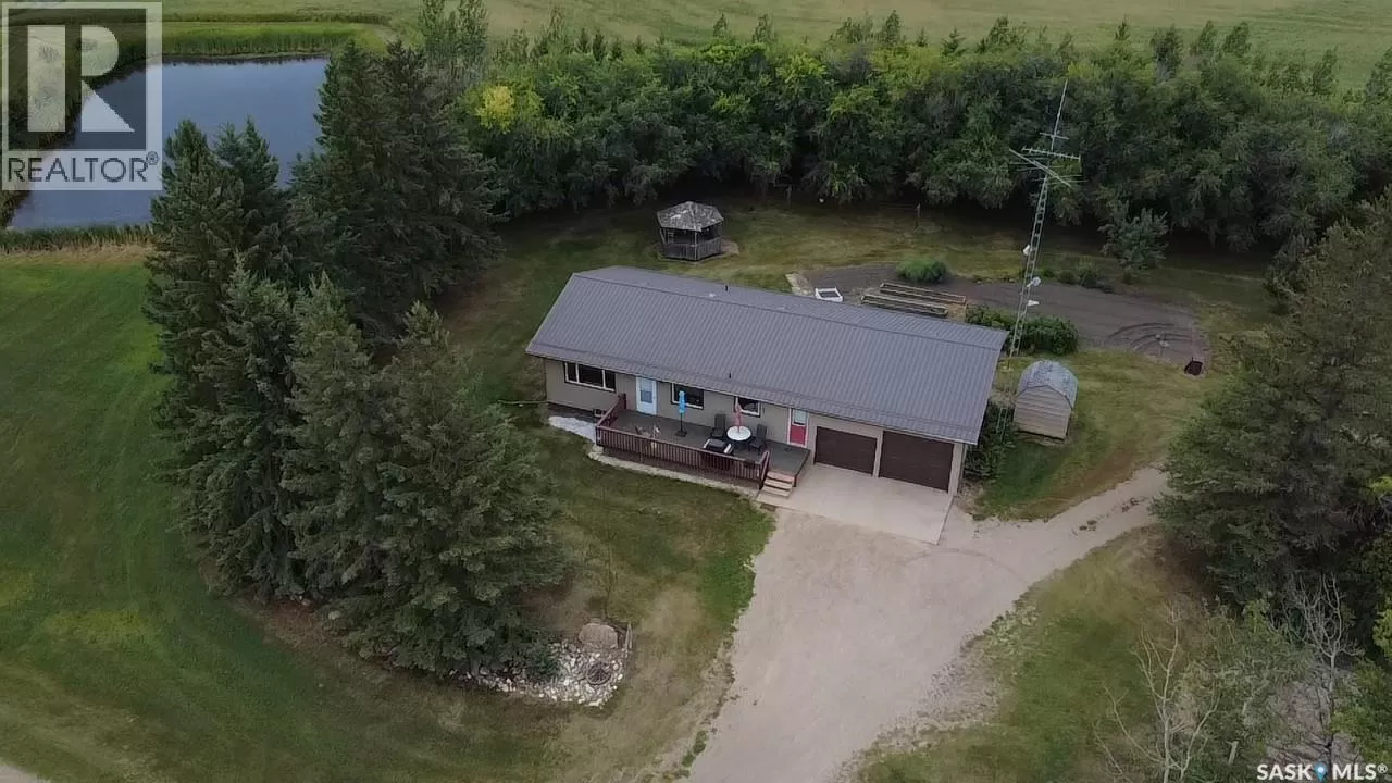 This 1989 home has 1200sq feet, a full basement and is sitting on almost 6 acres. Only a couple miles off the highway, with mature trees and a perimeter shelter belt, this acreage is private, remote, yet only 8-9 minutes to town. As you drive up youâll note the oversized 26x30 double car heated garage. Walking inside to the 3+1 bedrooms, 2 bathrooms and a generous kitchen/dining room. Connected to Rural water pipeline and force air natural gas heat with A/C is a huge bonus for acreage living! The home also has a backup generator to power the acreage in-case of an outage. Metal roof, rubber paved deck and raised garden boxes make the property very low maintenance! Outside you'll find multiple outbuildings including a 32x40 shed, 10x14 insulated workshop and plenty of space for gardening or raising horses. Call today to view this affordable acreage. (id:27476)
