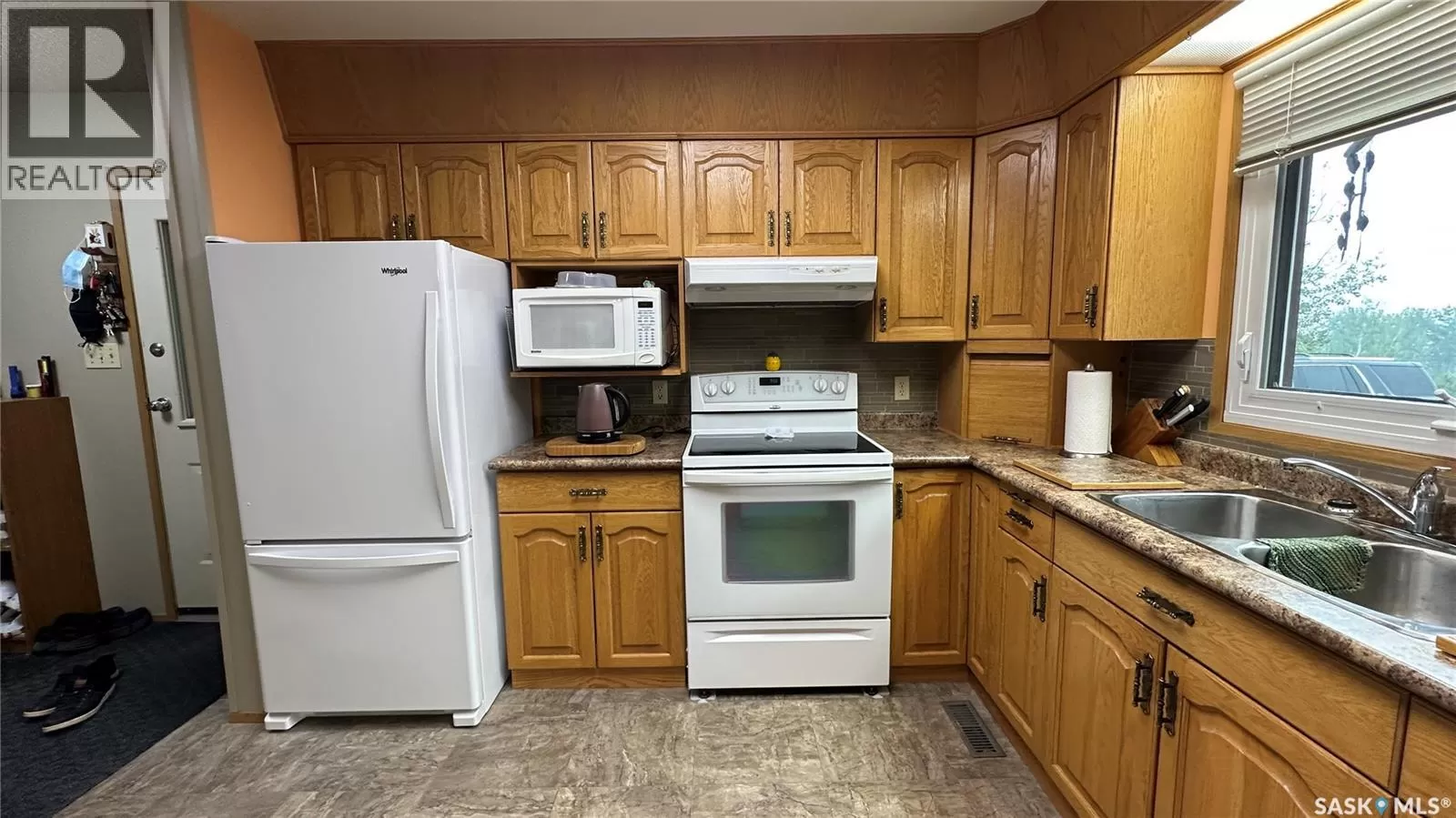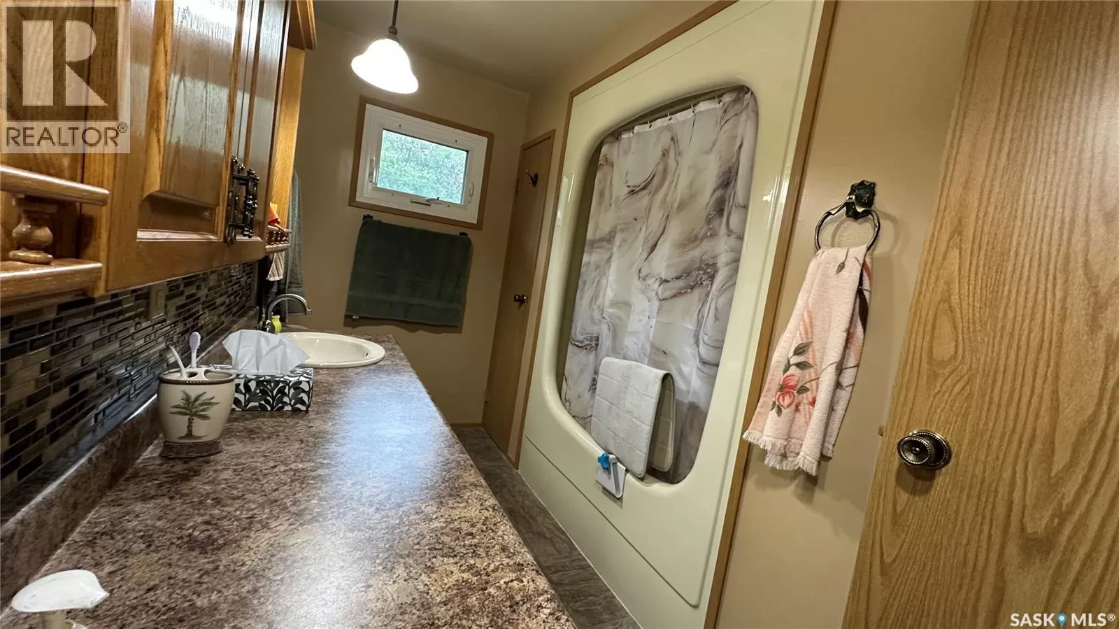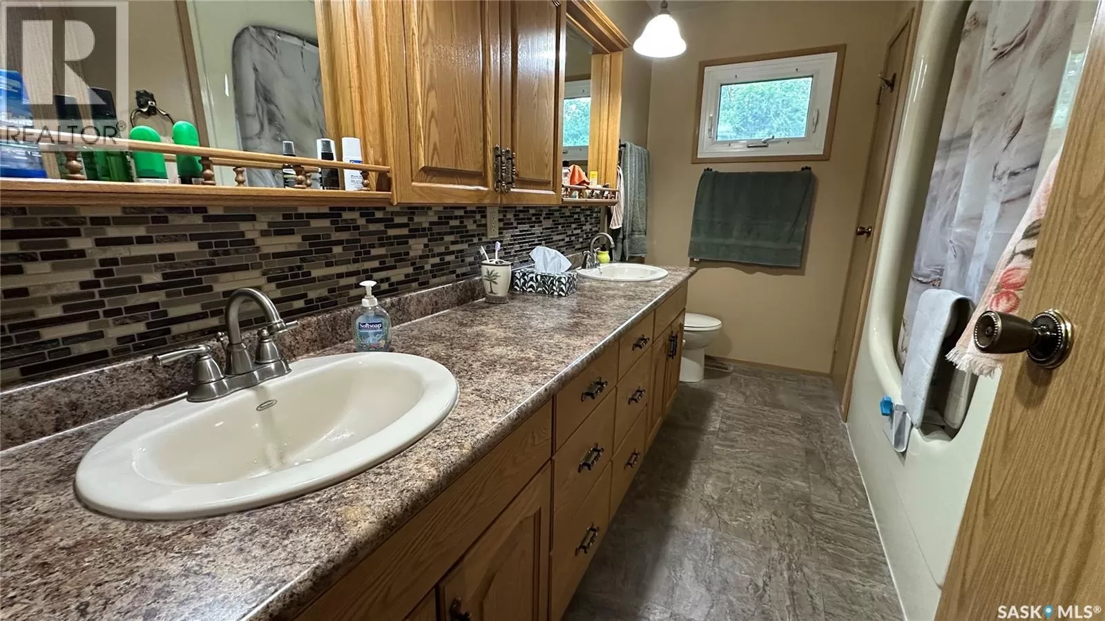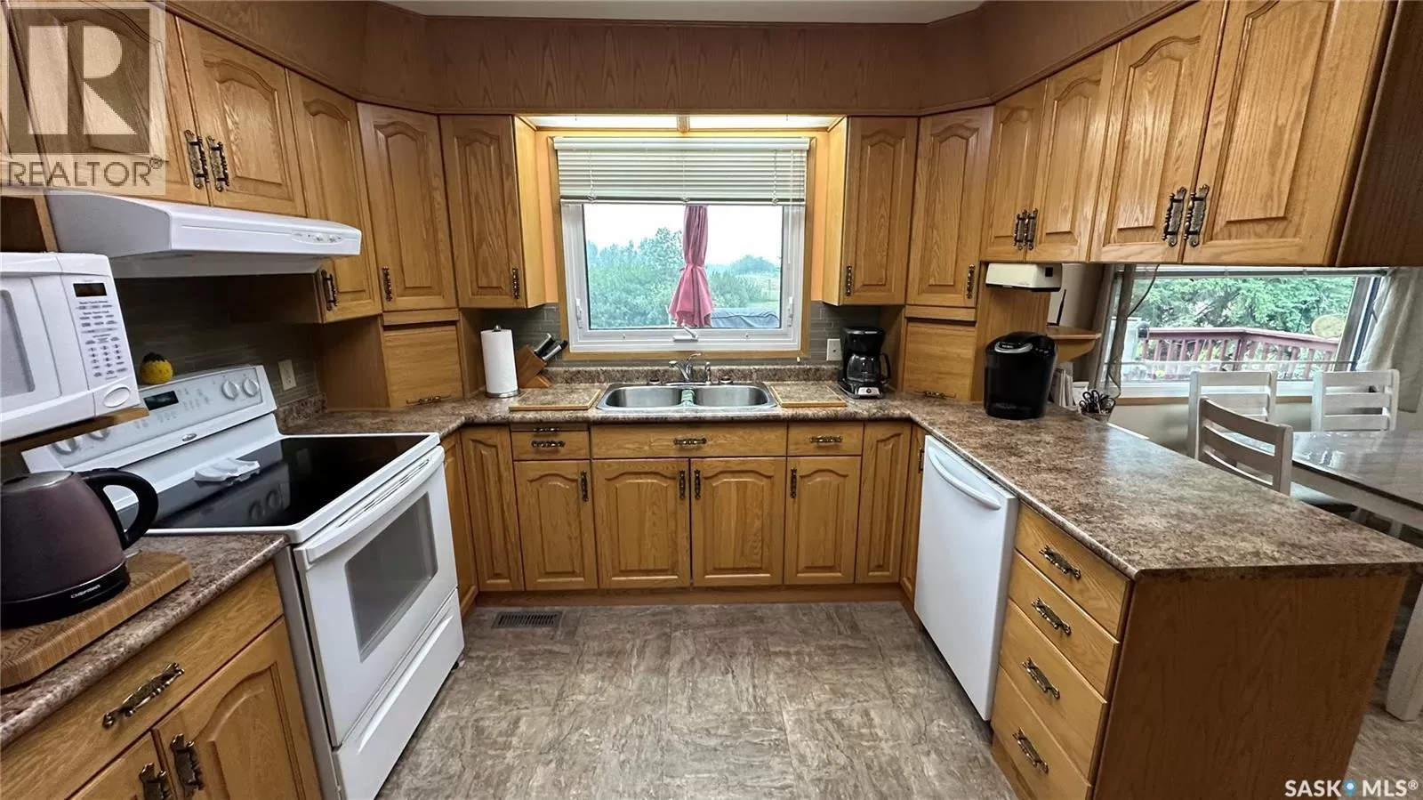 This 1989 home has 1200sq feet, a full basement and is sitting on almost 6 acres. Only a couple miles off the highway, with mature trees and a perimeter shelter belt, this acreage is private, remote, yet only 8-9 minutes to town. As you drive up youâll note the oversized 26x30 double car heated garage. Walking inside to the 3+1 bedrooms, 2 bathrooms and a generous kitchen/dining room. Connected to Rural water pipeline and force air natural gas heat with A/C is a huge bonus for acreage living! The home also has a backup generator to power the acreage in-case of an outage. Metal roof, rubber paved deck and raised garden boxes make the property very low maintenance! Outside you'll find multiple outbuildings including a 32x40 shed, 10x14 insulated workshop and plenty of space for gardening or raising horses. Call today to view this affordable acreage. (id:27476)